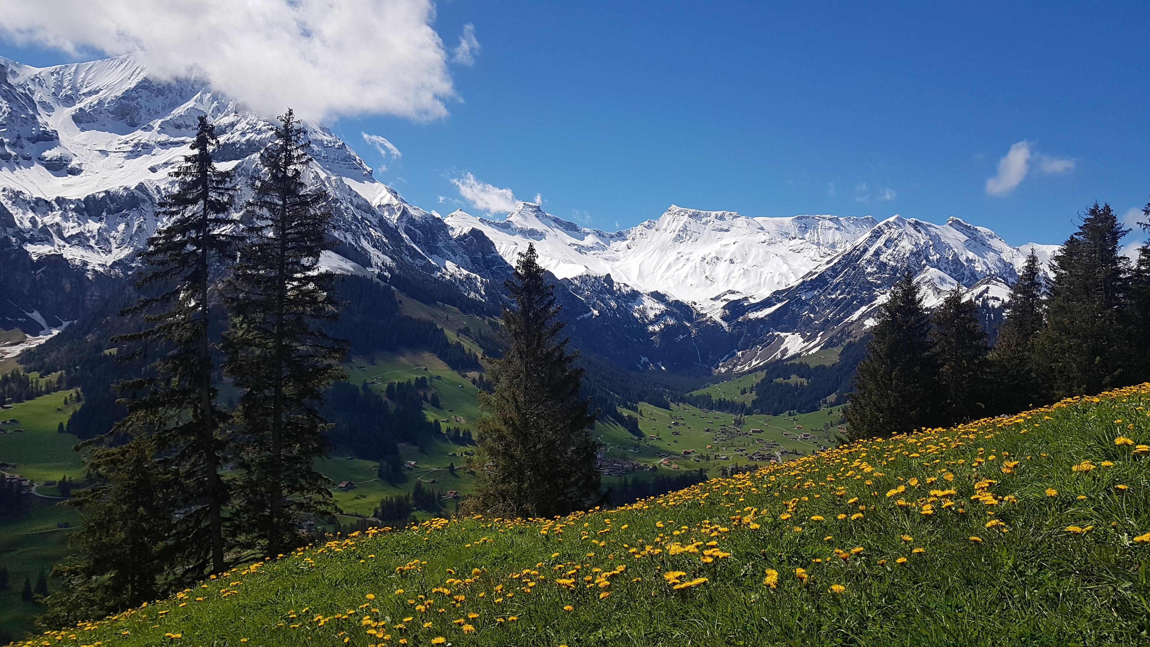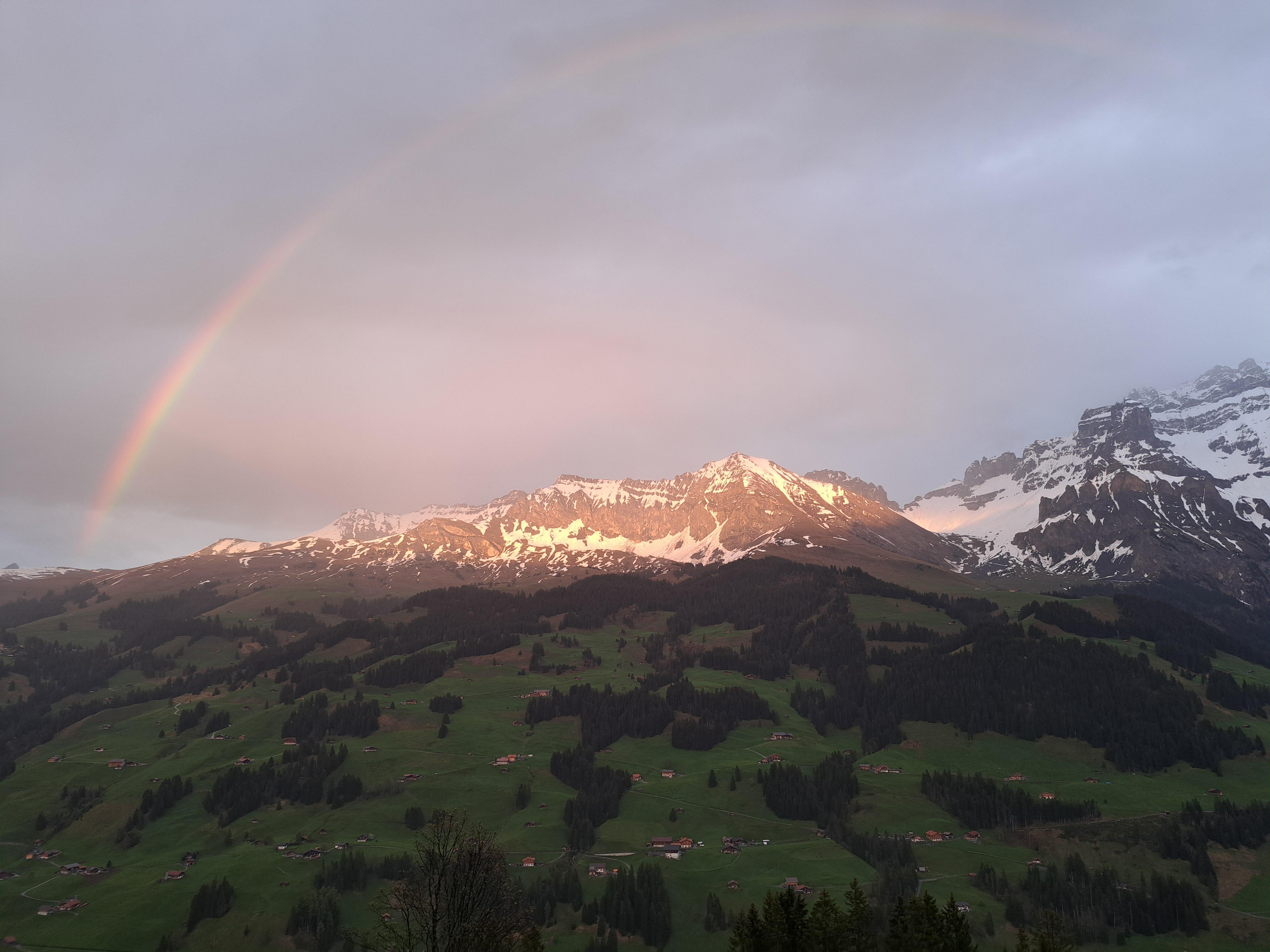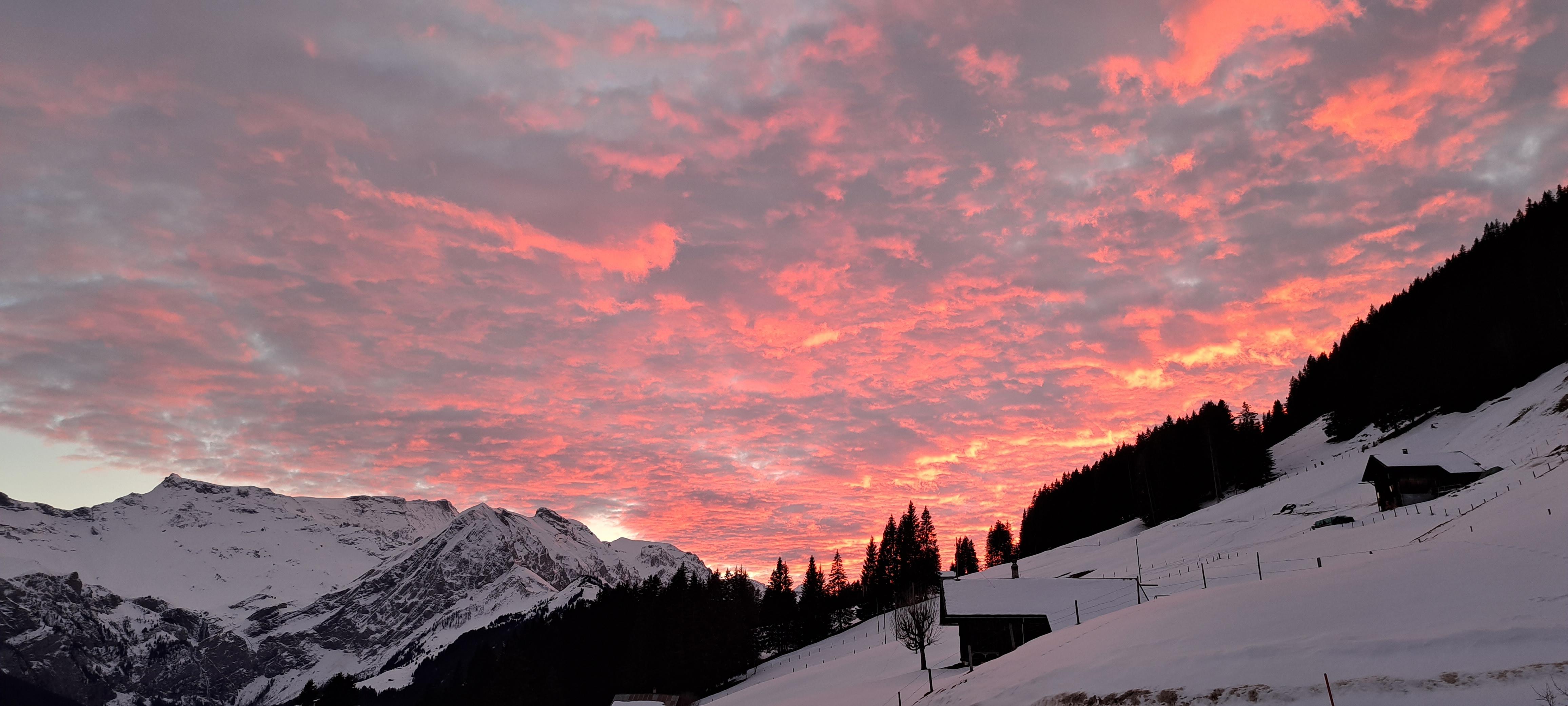 Unsere grosszügige 1-Zimmer Ferienwohnung (37m2) befindet sich direkt am wohl bekanntesten Panoramawanderweg von Adelboden, am Hörnliweg, auf 1500 müM. Umgeben von saftigen Wiesen geniessen Sie einen grandiosen Panoramablick über das Engstligental, bestaunen den schneebedeckten Wildstrubel, der die Grenze zwischen den Kantonen Bern und Wallis bildet, blicken zum mächtigen Lohner, bewundern das Abendrot und lassen den Blick weiter gleiten über den Bunderspitz den Almengrat bis hin zum Elsighorn.
