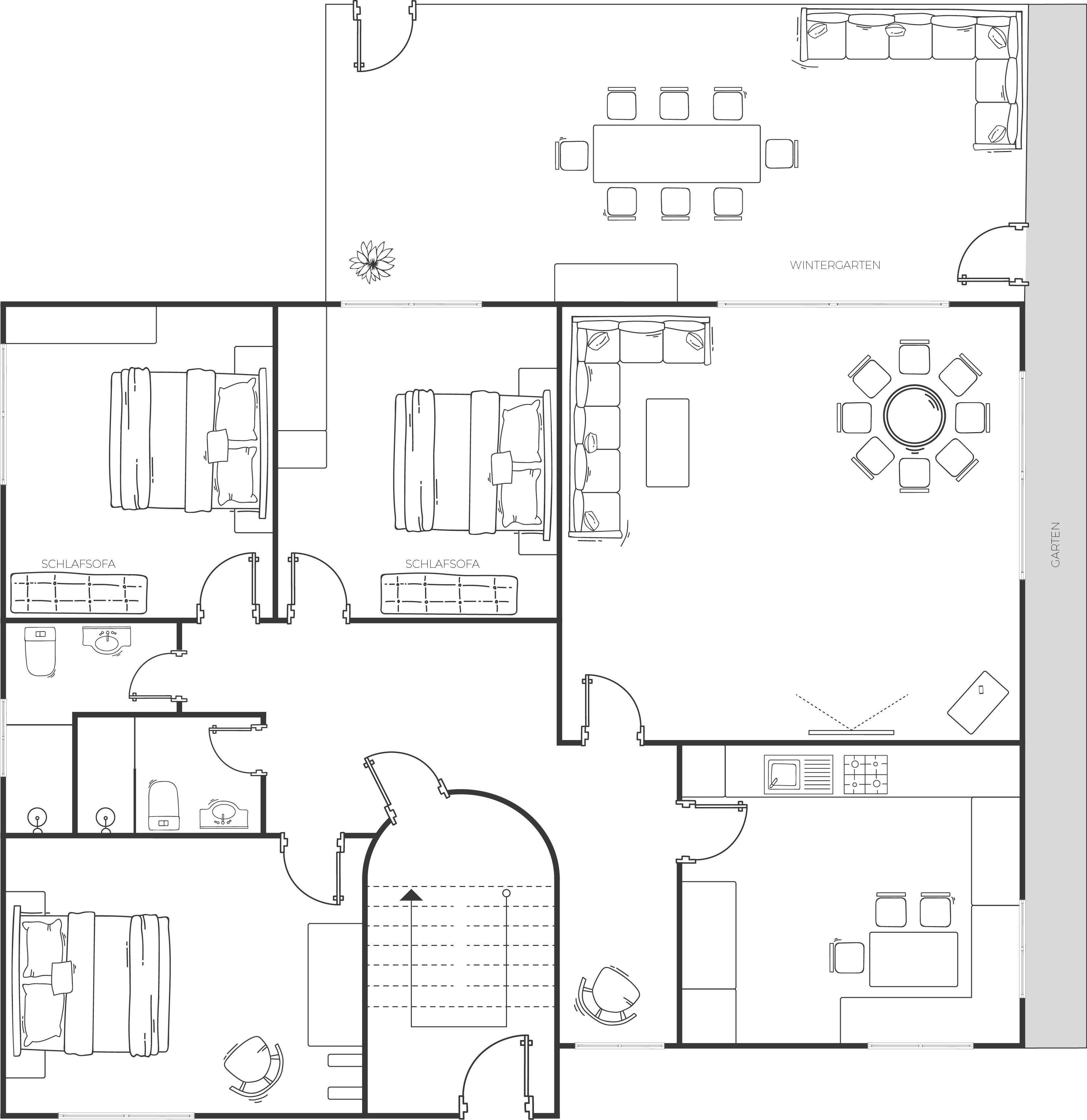 Großes Appartement 4 mit 170 m², mit Wintergarten und Garten