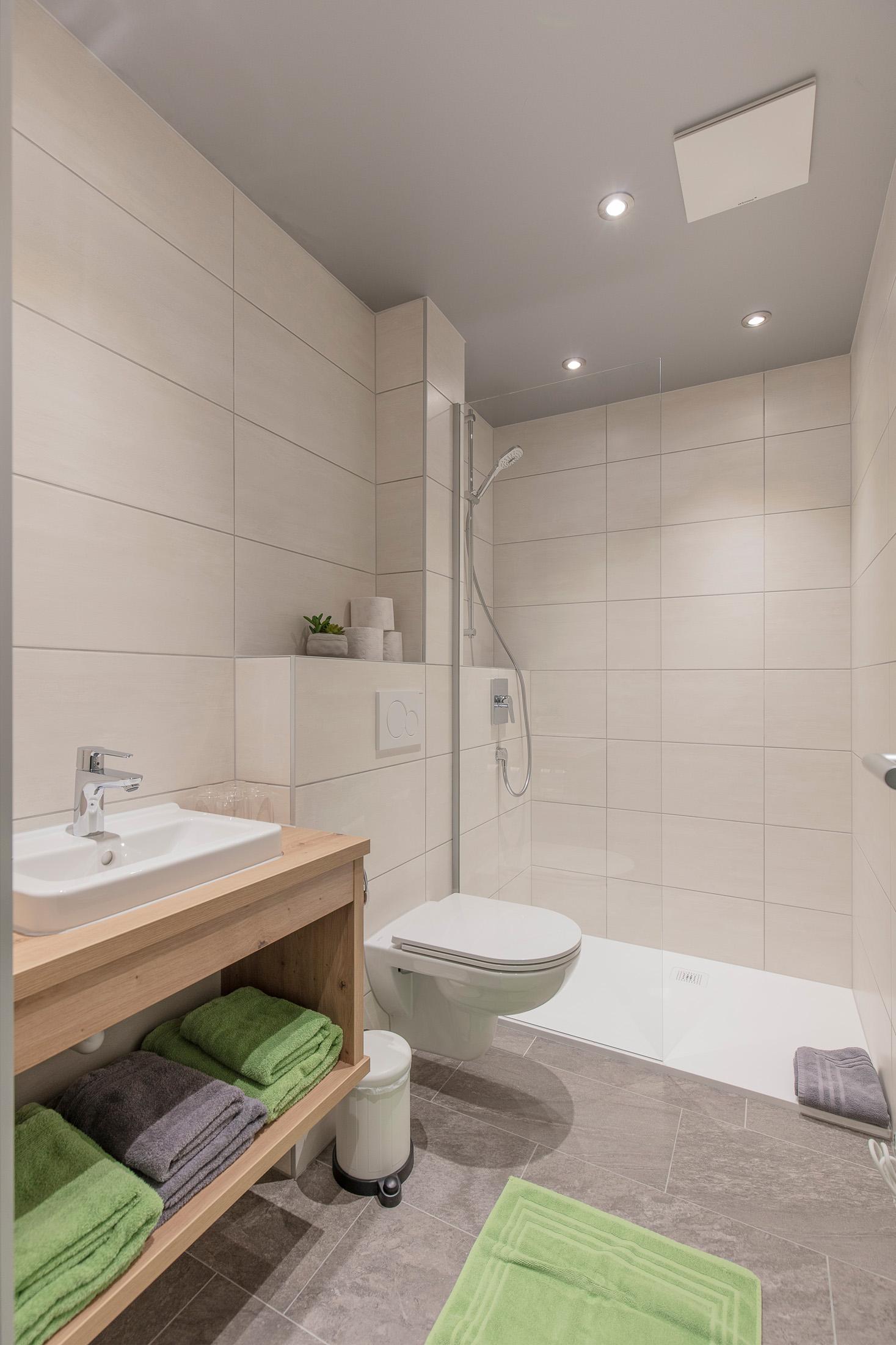 2 Badezimmer mit Dusche und WC, Haartrockner, Handtücher und Duschtücher