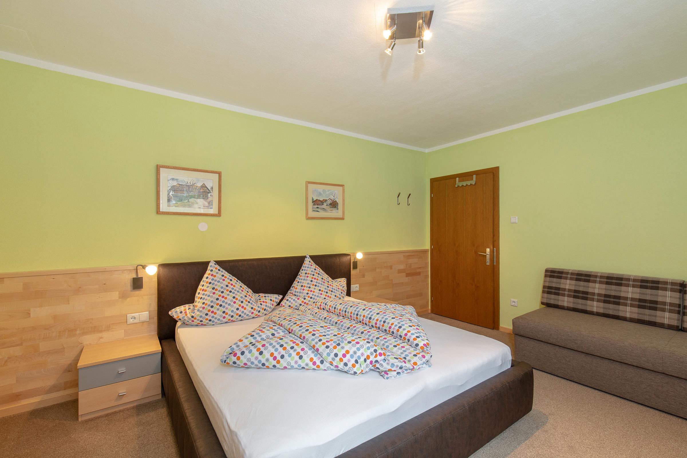 3 getrennte Schlafzimmer mit Doppelbetten und Bettwäsche, 2 x mit zusätzlichem Schlafsofa für 1 Person