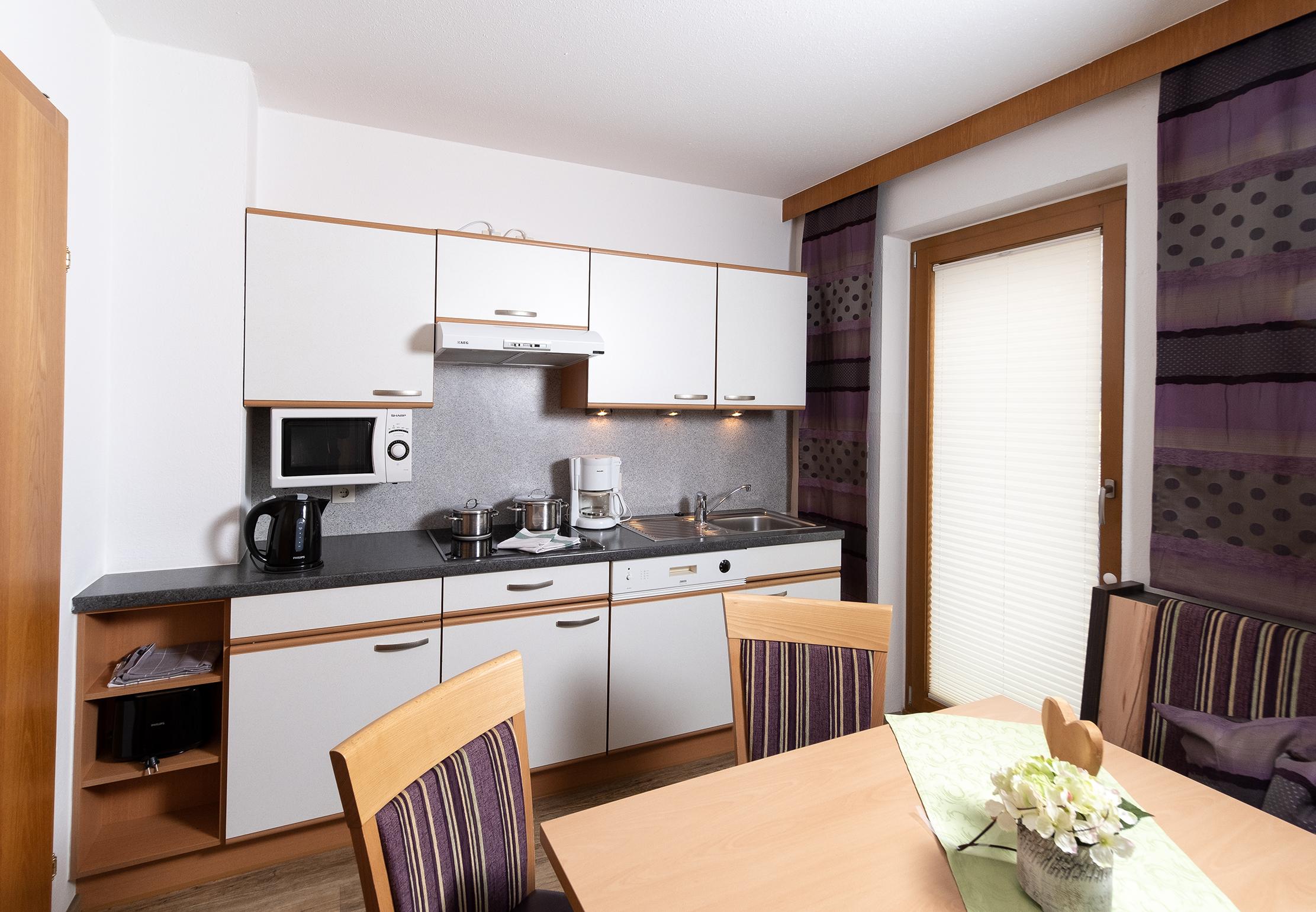 Gut ausgestattetes Appartement im 1. Stock mit Wohnküche, 2 getrennten Schlafzimmern, Balkon, Bad und Haarföhn, separates WC, Radio, Kabel-Flat-TV in der Wohnküche und in 1 Schlafzimmer, Geschirrspüler, Mikrowelle, W-Lan, Bettwäsche- und Handtuch-Service. Größe: ca. 45 m².