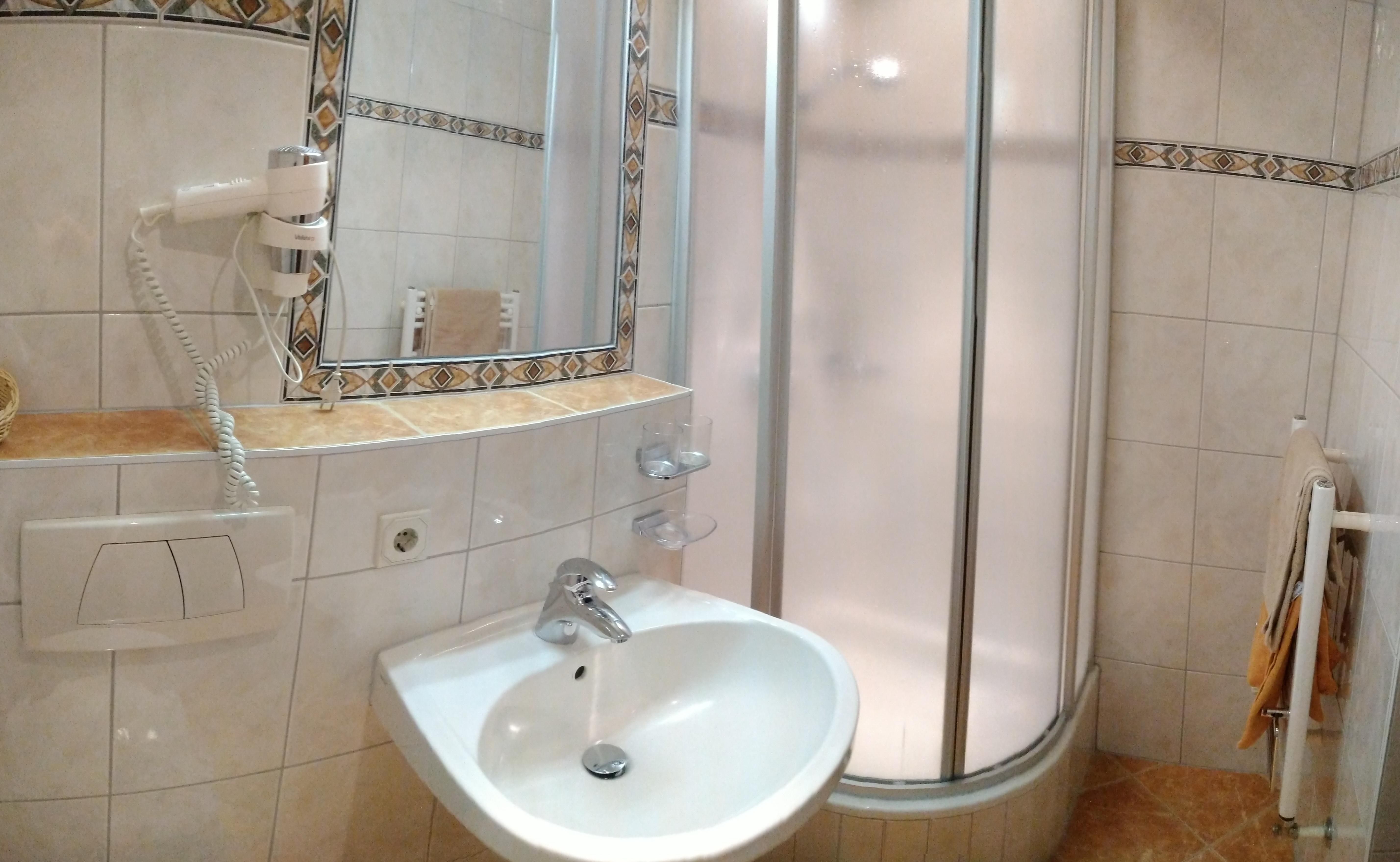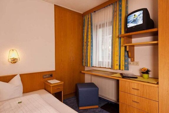 Rustikales Komforteinzelzimmer mit Kabel-Flat-TV, Badezimmer mit Dusche oder Bad/WC, Safe, Sitzgelegenheit, ohne Balkon. Größe ca. 12 m²