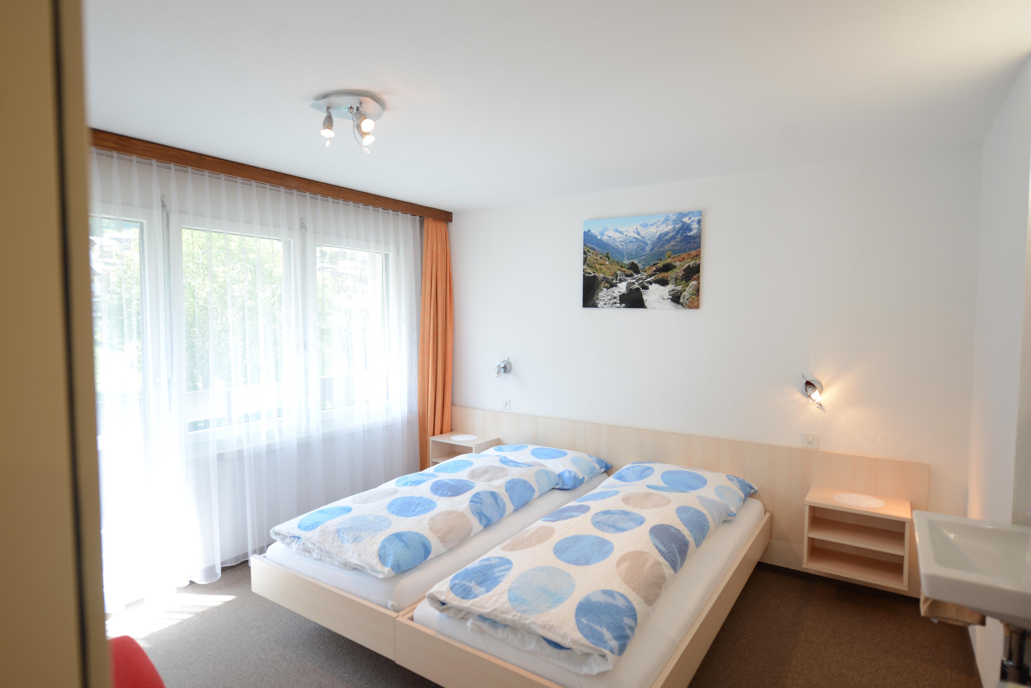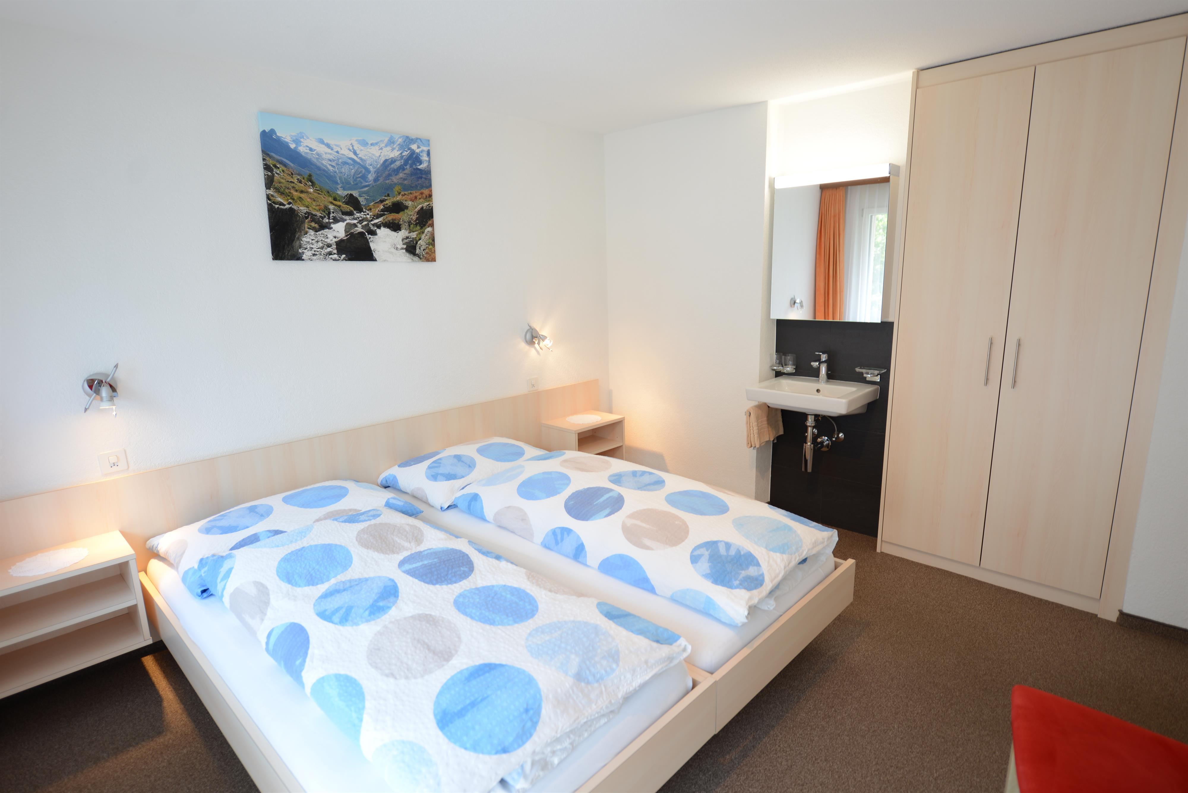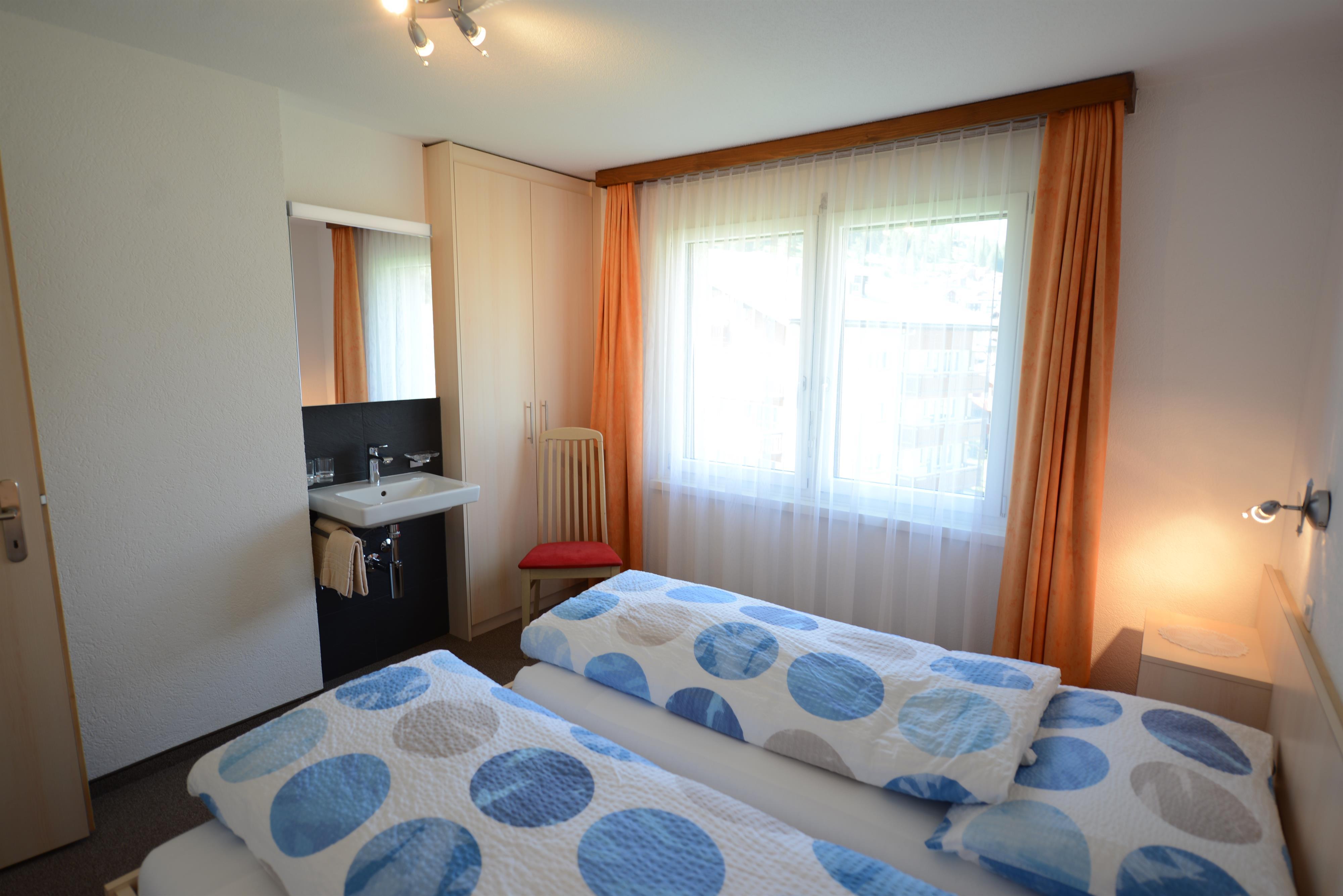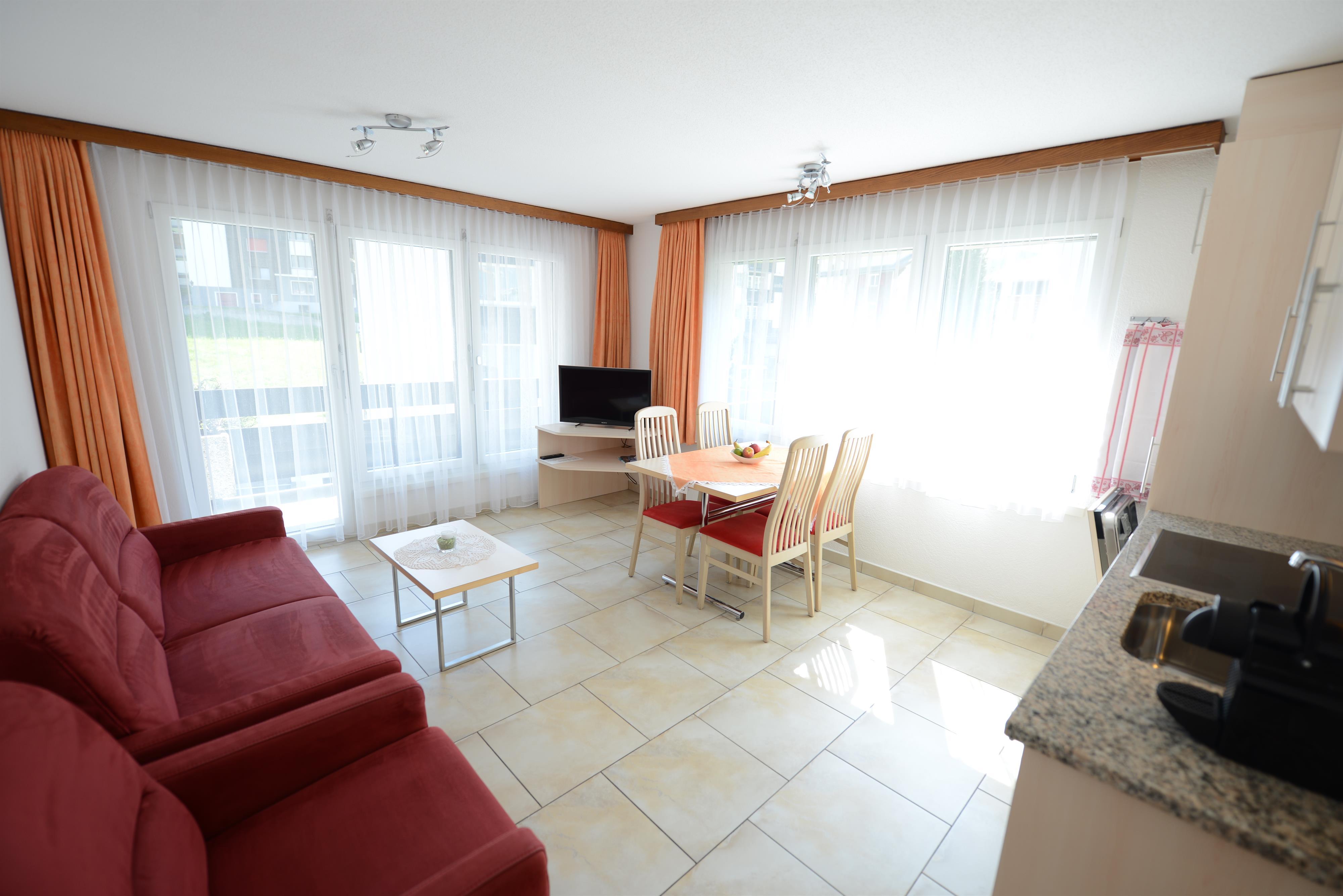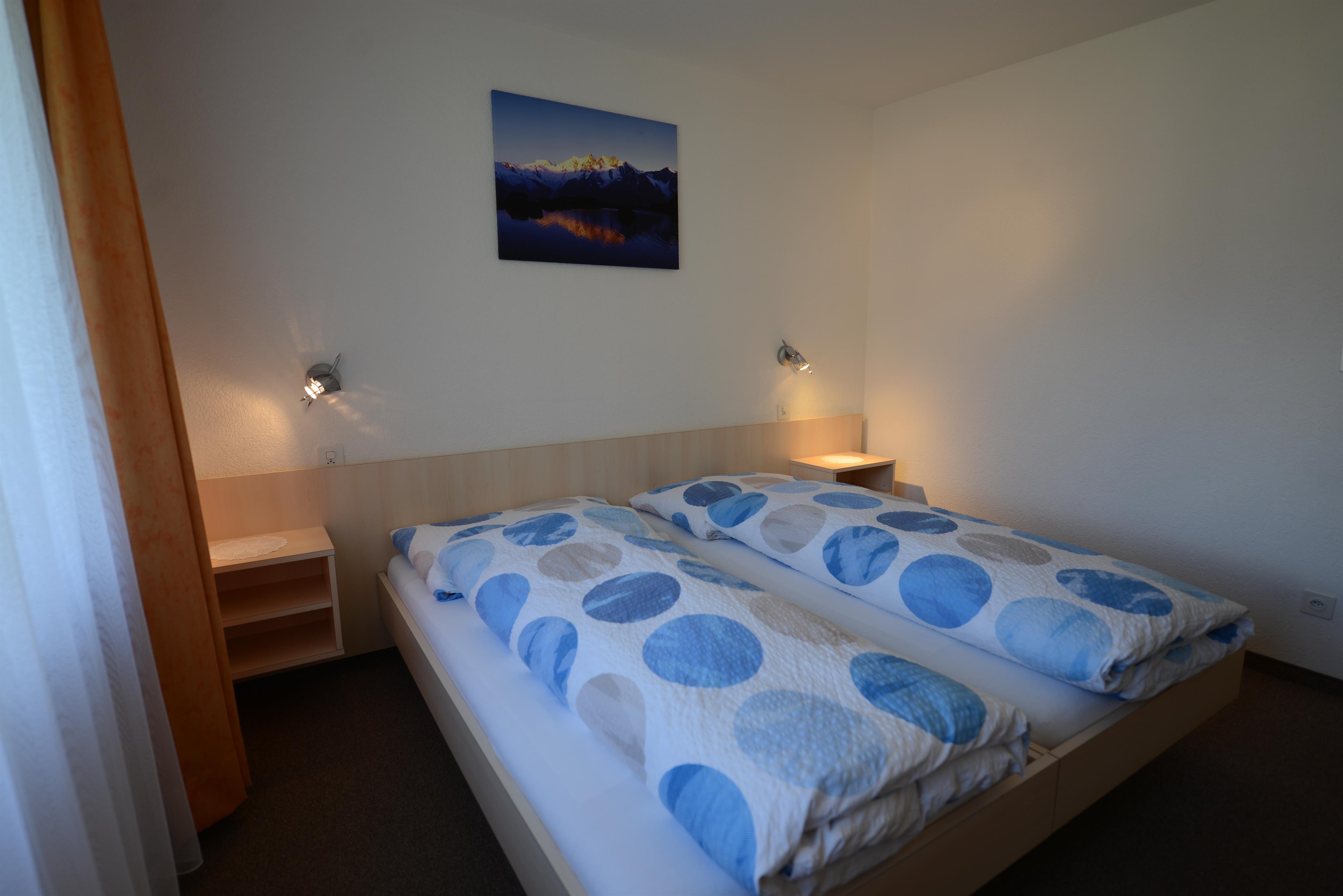 3-Zimmerwohnung (55 m2), 3. Stock, renoviert, komfortable Ferienwohnung mit 2 Schlafzimmern mit je 2 Betten, Wohnküche mit Geschirrspüler, Dusch/WC, West- und Süd-Balkon, TV, Radio, Lift, Internetanschluss.