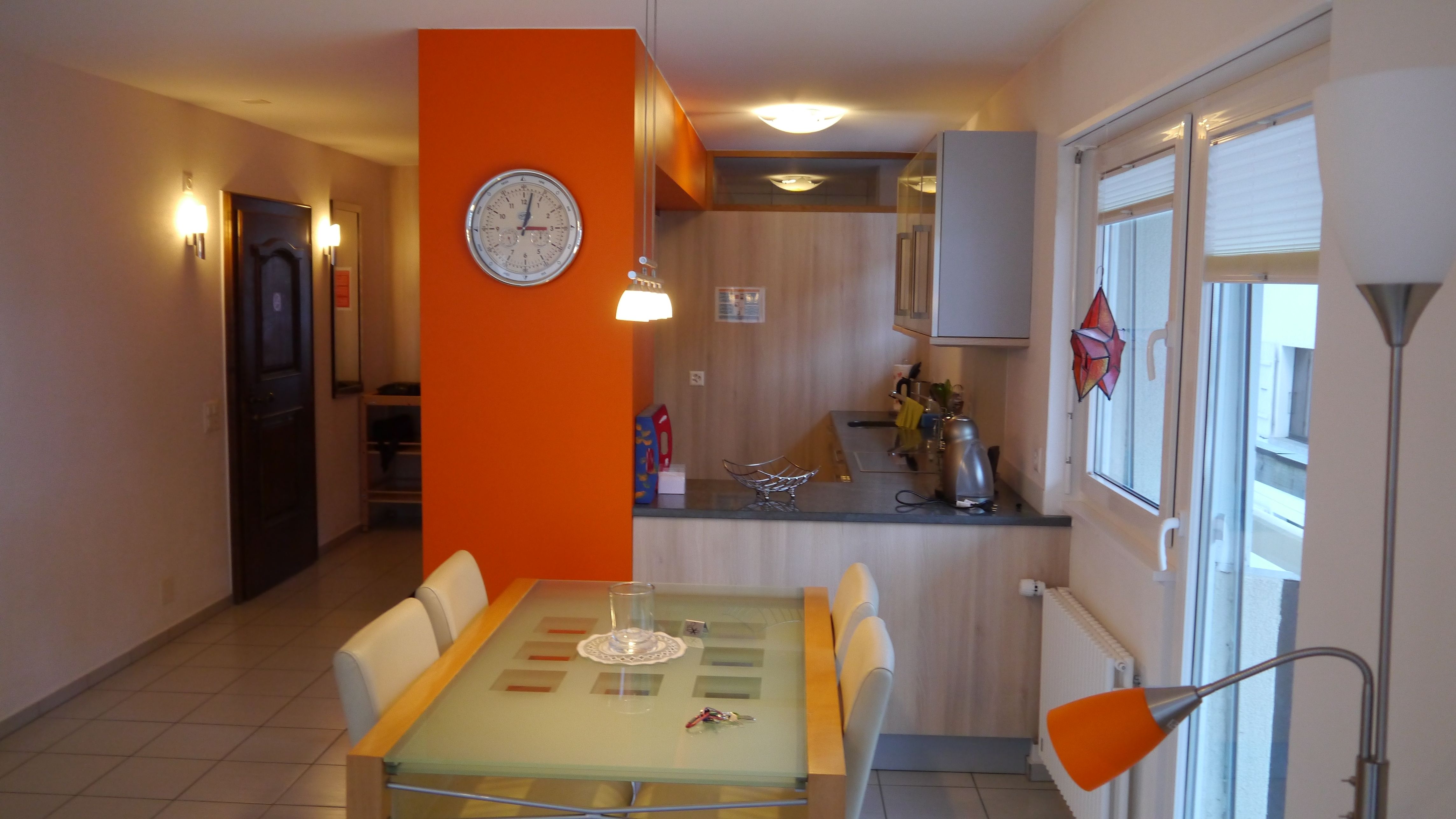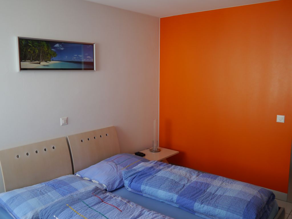 Wohnung Nr. 11A im Orange Cube: Modern eingerichtete Ferienwohnung (60 m², max. 4 Personen). Alle Skistationen in der Nähe. Schönes, modernes Zuhause im ersten Stock (Südseite), neu renoviert, neuer Ausbaustandard, Laminatböden. Schlafzimmer mit Doppelbett (180 x 200 cm), Wohnzimmer mit 2 Einzelbetten (90 x 200 cm, tagsüber als Sofa), Flachbildfernseher, DVD-Player, Esstisch, offene Küche mit Geschirrspüler, Herd, Backofen, Kaffeemaschine: Dolce Gusto, Wasserkocher, Raclette- und Fleischgrill, Dusche/WC mit Föhn. Südbalkon mit Sitzgelegenheit und Blick auf das Klein Matterhorn.