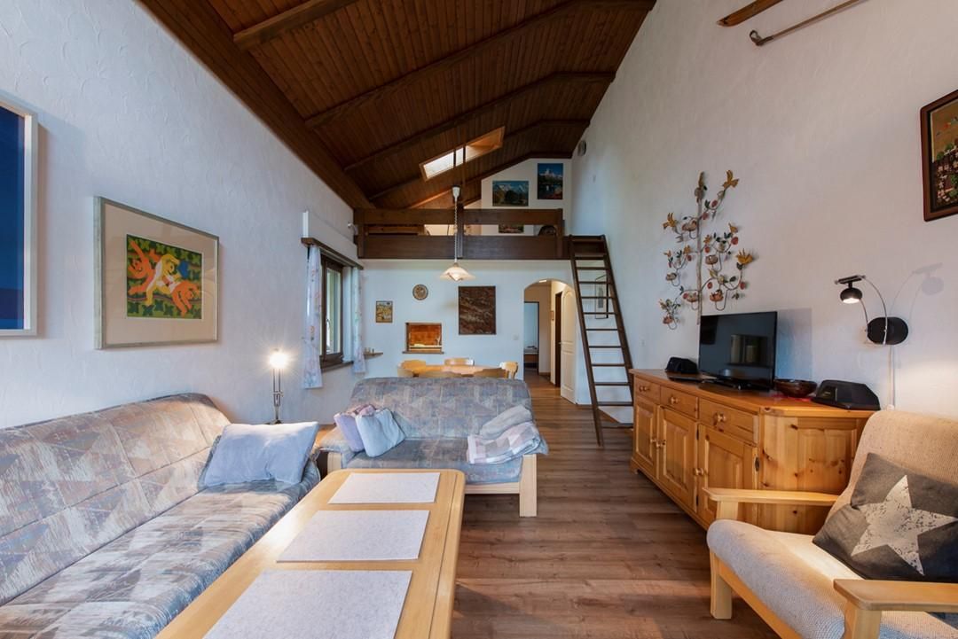 Innen offenbart die Wohnung Zöller eine einladende 3 ½ Zimmerkonstellation, die bis zu 6 Gästen bequem Platz bietet. Zwei Schlafzimmer – eines mit 2 Betten und ein weiteres mit 3 Betten – sowie eine zusätzliche Galerie mit einer Schlafstelle, versprechen ruhige Nächte. Ein geräumiges Wohnzimmer mit einer kuscheligen Cheminée-Ecke lädt zum Verweilen ein. Zudem ist die Küche voll ausgestattet mit Elektroherd, Mikrowelle, Abwaschmaschine und natürlich einer Kaffeemaschine. Für Ihre Bekleidung steht eine Waschmaschine/Tumbler im Keller zur Verfügung, nutzbar über einen Münzautomaten.