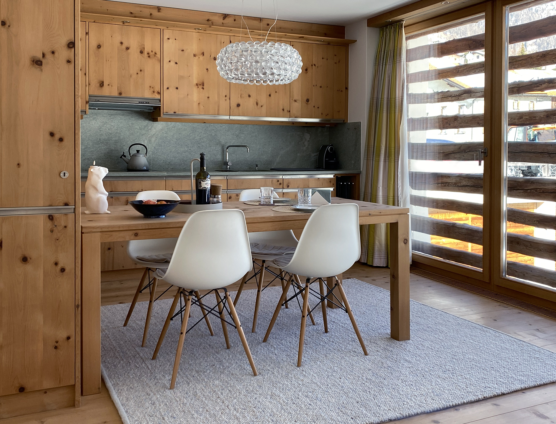 In der Wohnung Chesa Jäger finden jahrhundertalte Engadiner Baukultur und moderne Architektur zu einem einmaligen Ambiente zusammen. Unser Mountain-Hideaway im alten Heustall ist grosszügig, lichtdurchflutet, modern eingerichtet und gleichzeitig geprägt von Geschichte und dem Geruch einheimischer Arve.