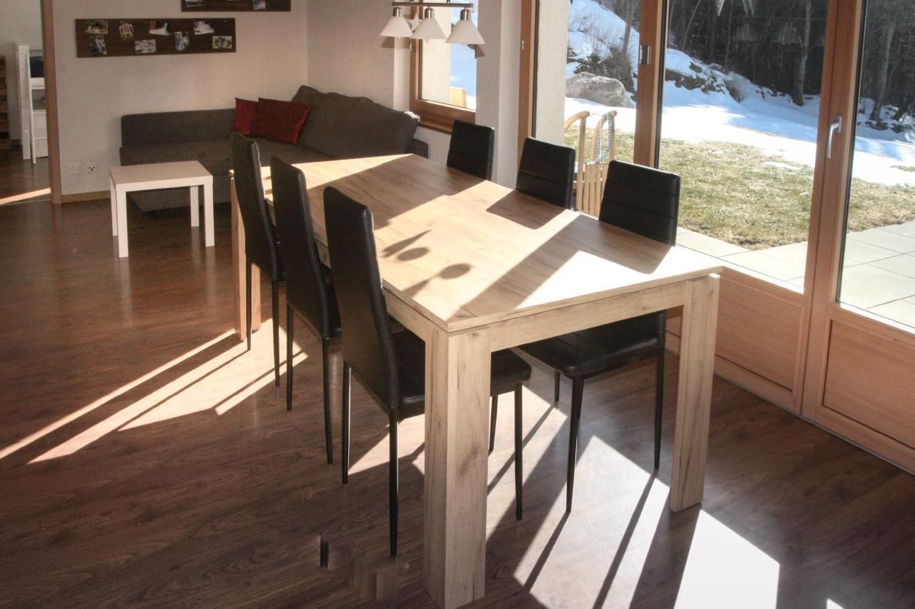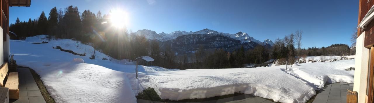Das Wohnzimmer, wie auch der Sitzplatz, laden zum Verweilen ein und bieten einen traumhaften Blick auf die Bergkette und den Rosenlaui-Gletscher. Die Wohnung liegt sehr ruhig. Für Familien ist die Hausumgebung und der Bach in der Nähe perfekt um zu spielen und die Natur zu entdecken. Die Wohnung verfügt über einen gedeckten Parkplatz.