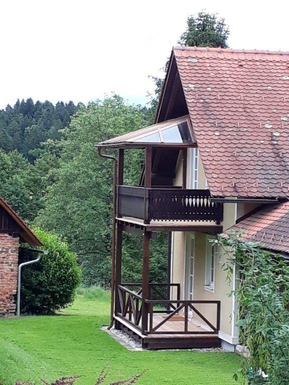 Die Terrasse ist überdacht und mit Tisch und Sitzgelegenheit für 3 Personen ausgerüstet. Liegestühle und Griller sind vorhanden. Eine große zusätzliche Terrasse in Sonnenlage ist zusätzlich verfügbar. Das Haus liegt im Grünen und manchmal sind in den angrenzenden Wiesen die Pferde des Lipizzanergestütes zu sehen.