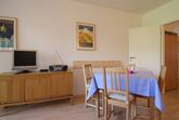 Im Inneren erwartet Sie eine freundliche und gut ausgestattete Unterkunft, bei der Sie sich wie zu Hause fühlen werden. Die Ferienwohnung umfasst zwei gemütliche Schlafzimmer, die für ruhige Nächte nach langen Tagen voller Entdeckungen sorgen. Ihre Selbstversorger-Träume werden in der komplett ausgestatteten Küche mit Cerankochfeld, Spülmaschine, Kaffeemaschine und Wasserkocher wahr. Für Unterhaltung ist mit Kabel-TV und WLAN gesorgt, somit bleiben Sie auch im Urlaub bestens vernetzt und informiert.