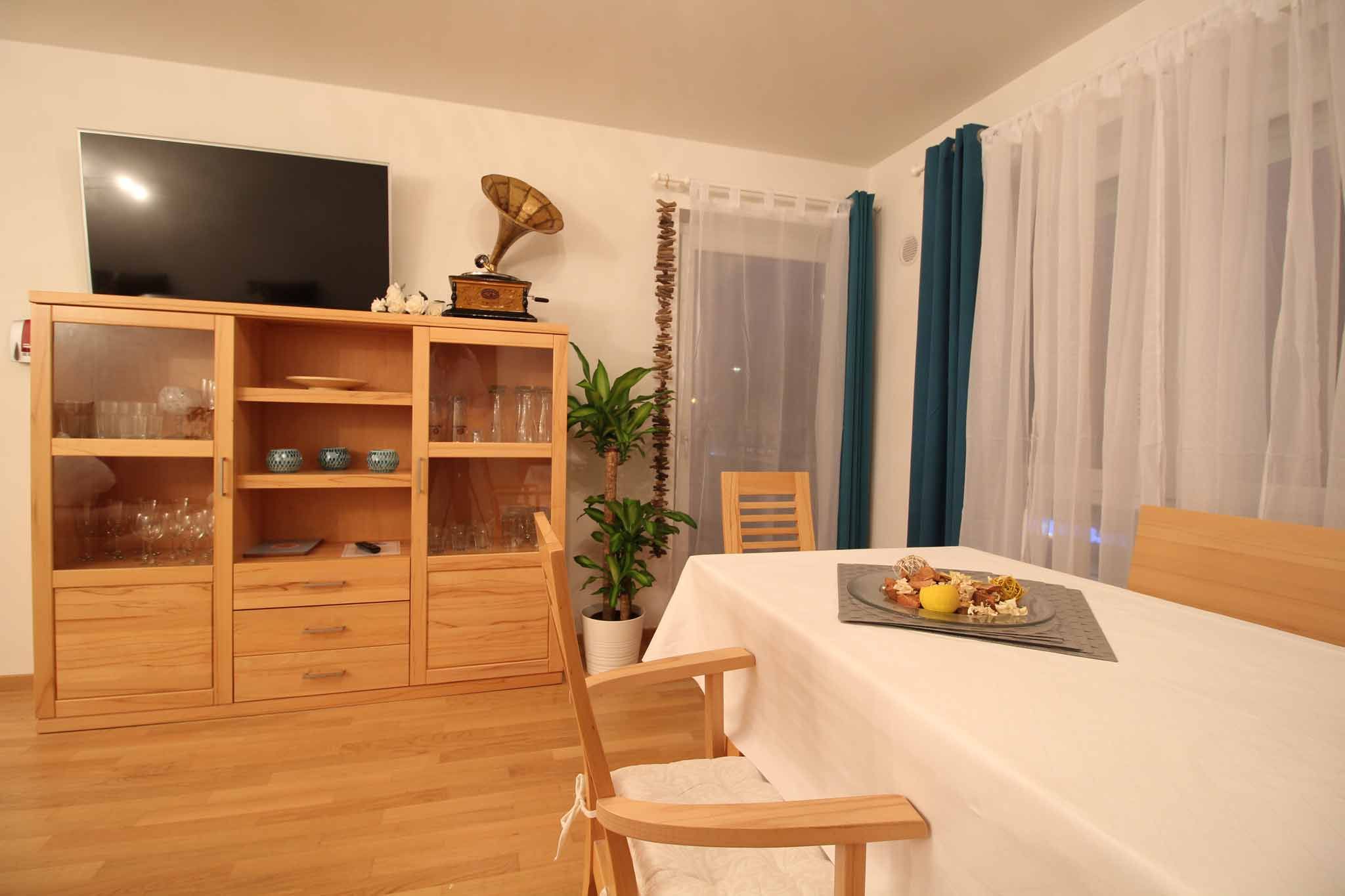 Im Inneren der Wohnung finden Sie eine ansprechende Gestaltung vor, die durch zwei gemütliche Schlafzimmer und eine Waschmaschine sowie einen Wäschetrockner zur alleinigen Nutzung besticht. Die Wohnung bietet zusätzlich eine separate Küche, ausgestattet mit einem Cerankochfeld, einer Kaffeemaschine, einer Spülmaschine und einem Wasserkocher, um nur einige Annehmlichkeiten zu nennen. Die Gäste profitieren außerdem von einem exklusiven Bad, welches mit einer Dusche und einer Badewanne ausgerüstet ist, um entspannende Momente nach einem ereignisreichen Tag zu garantieren.