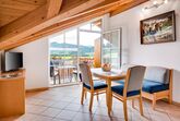 Auf unserem Balkon mit Morgensonne könnet Ihr mit traumhaftem Bergblick frühstücken oder einfach die Rehe im Wald beobachten! Ferienwohnung im Dachgeschoß mit zwei seperaten Schlafzimmern einem Ostbalkon mit Blickrichtung in unseren Wald. Die Wohnküche mit Sitzgruppe und einer Küchenzeile ist voll ausgestattet. Bad mit Dusche/WC und seperaten WC.