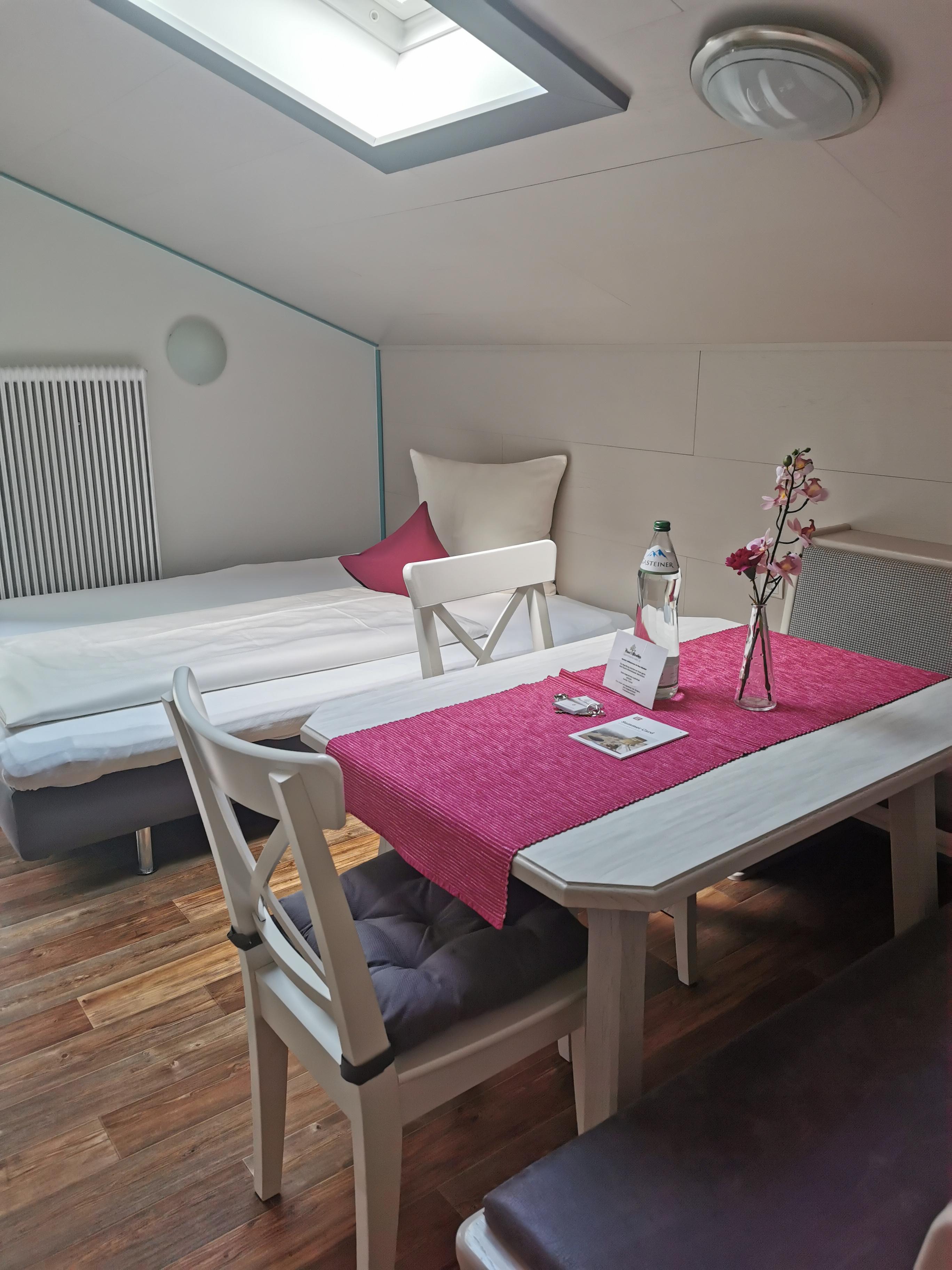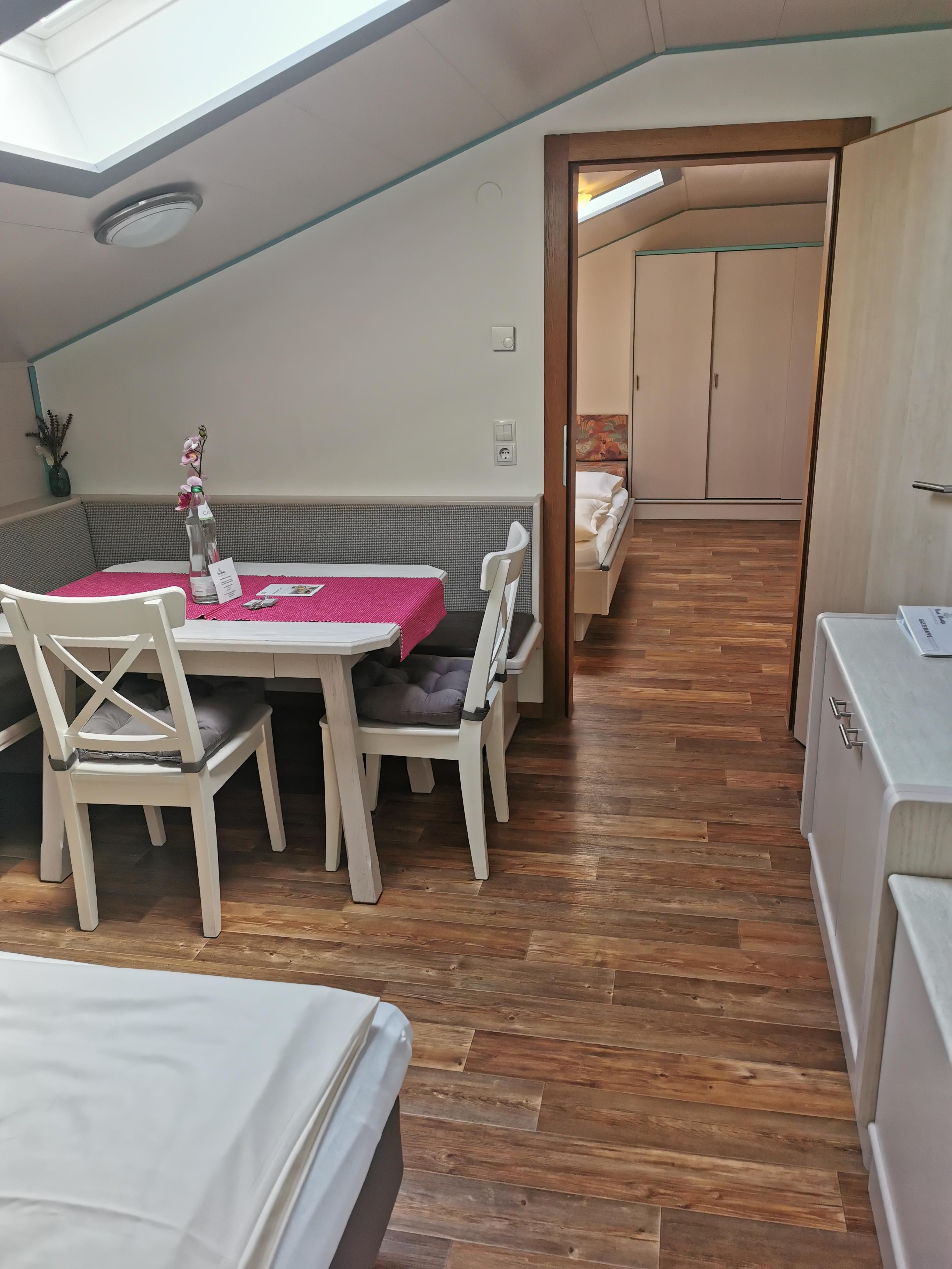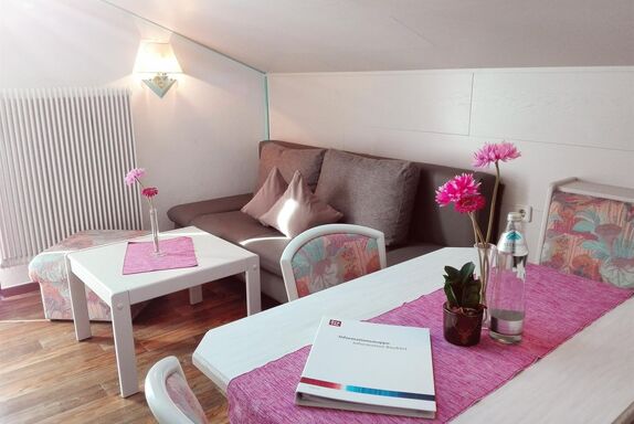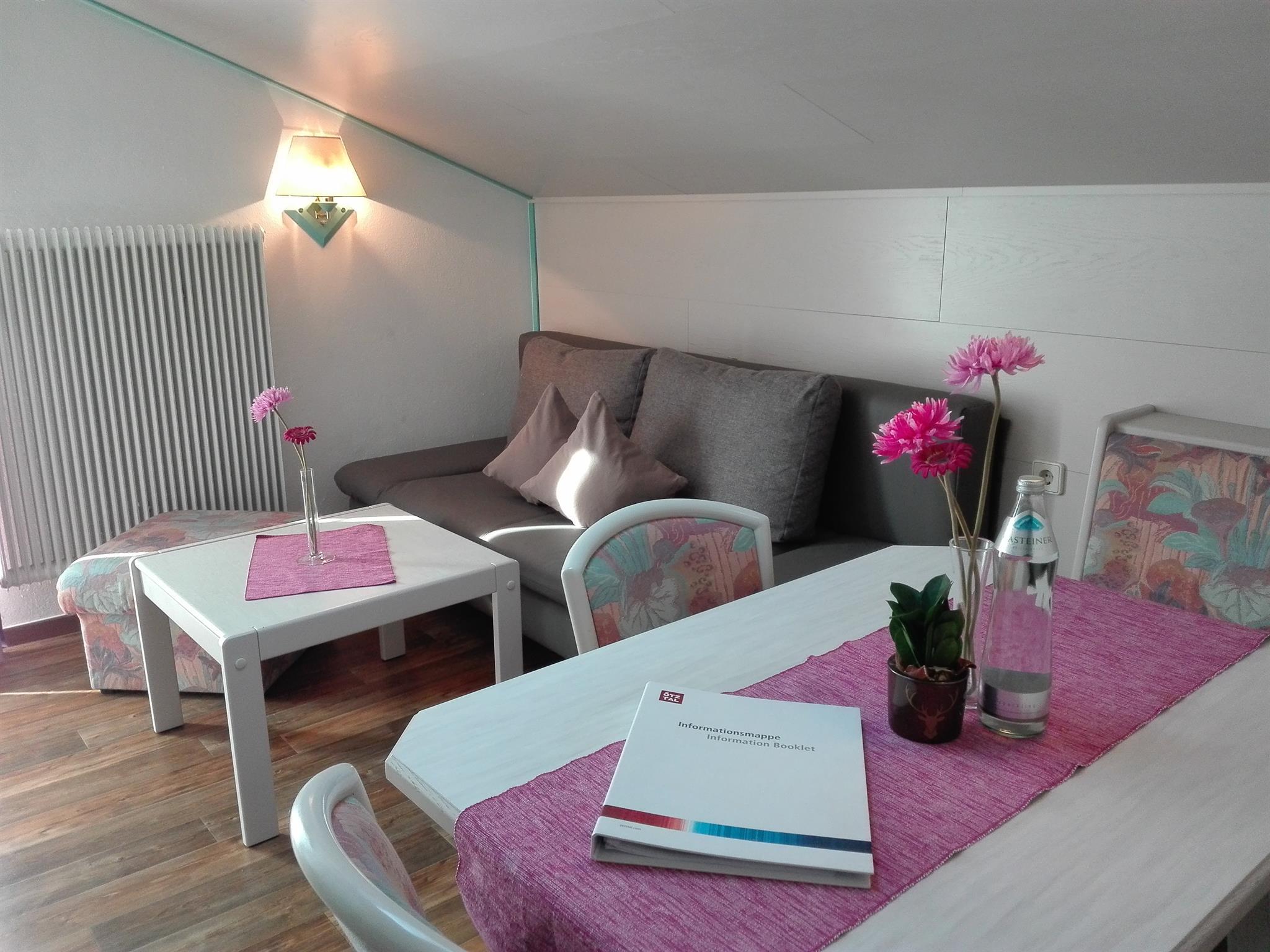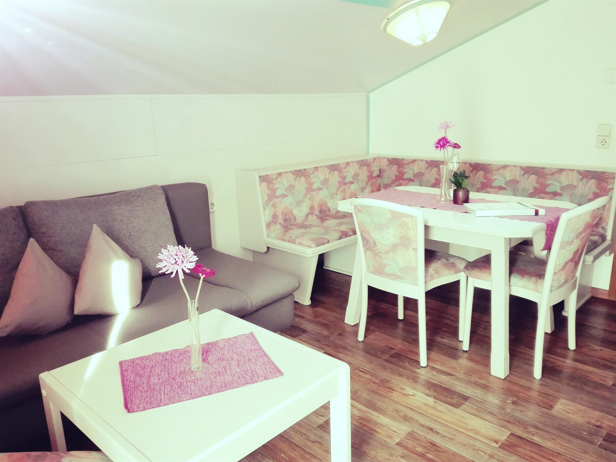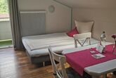 Modern und gemütlich ausgestattete Appartements für 2-5 Personen: Schlafzimmer mit Doppelbett und Extra-Couch, Wohnzimmer mit ausziehbarer Doppelcouch, SAT-TV und Essplatz; komplett ausgestattete Kleinküche, Badezimmer mit Dusche/WC, Balkon.
