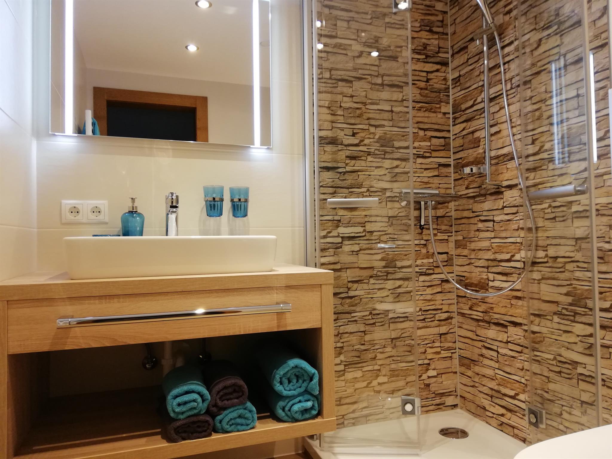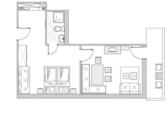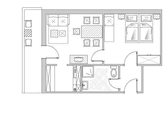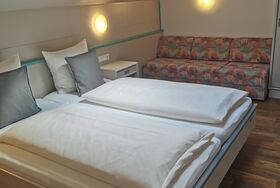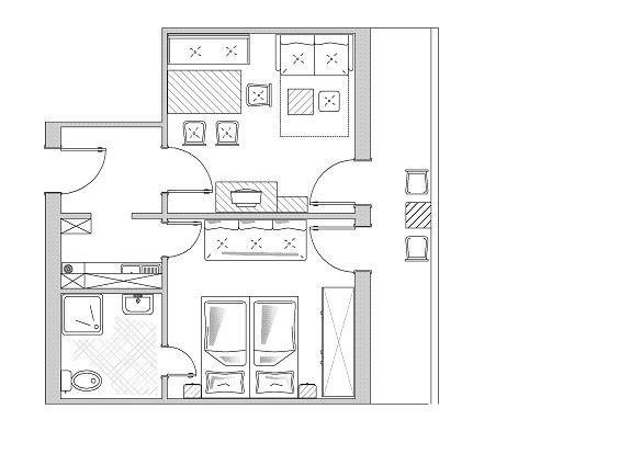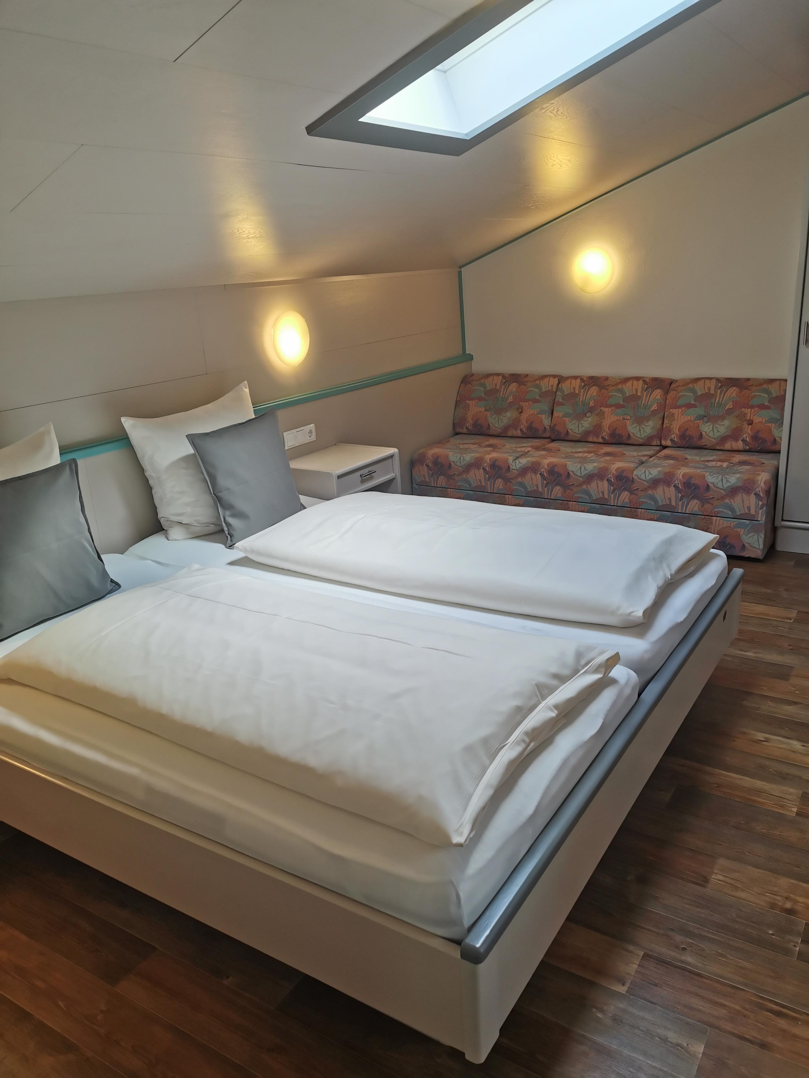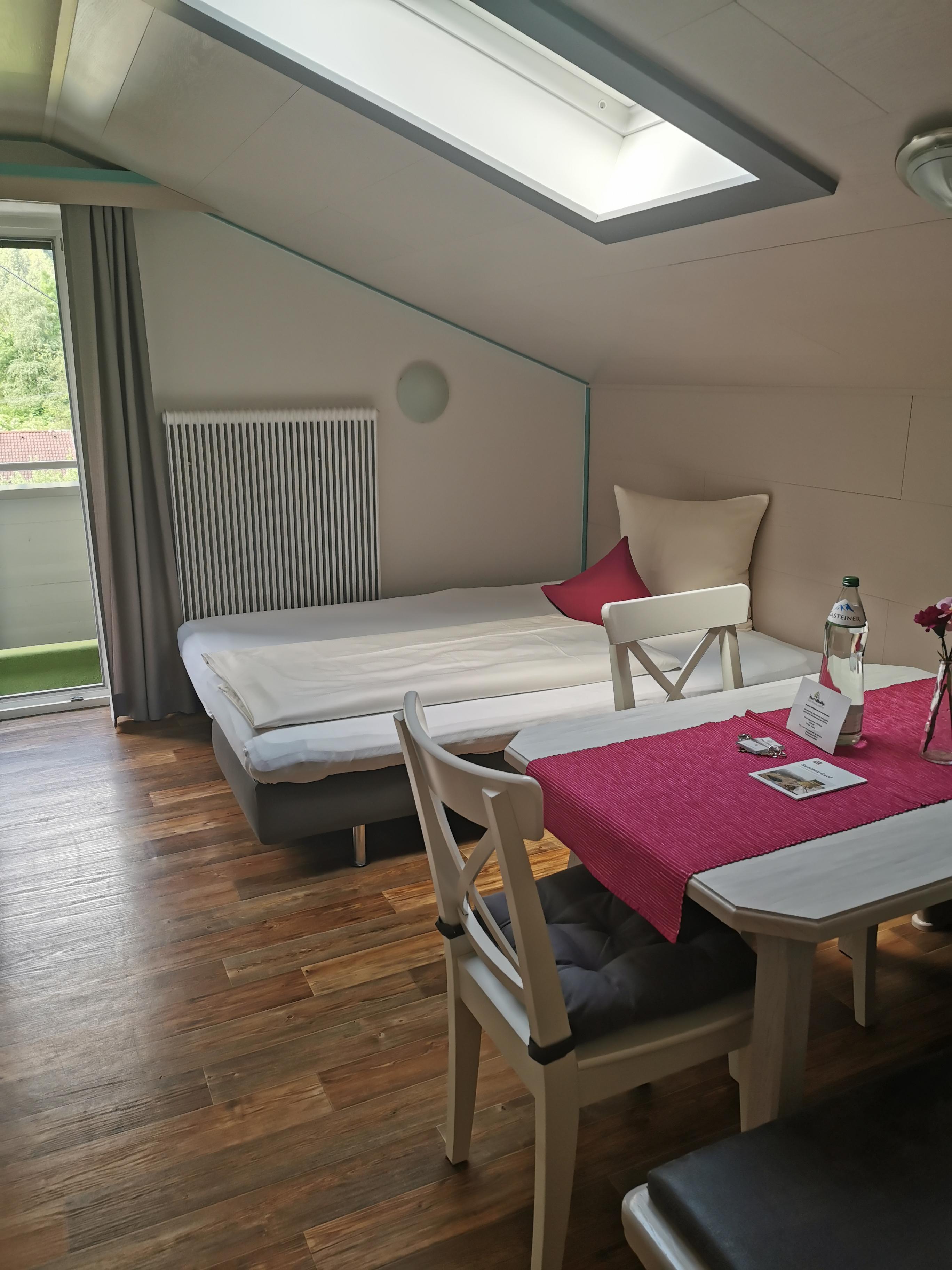 Modern und gemütlich ausgestattete Appartements für 2-5 Personen: Schlafzimmer mit Doppelbett und Extra-Couch, Wohnzimmer mit ausziehbarer Doppelcouch, SAT-TV und Essplatz; komplett ausgestattete Kleinküche, Badezimmer mit Dusche/WC, Balkon.