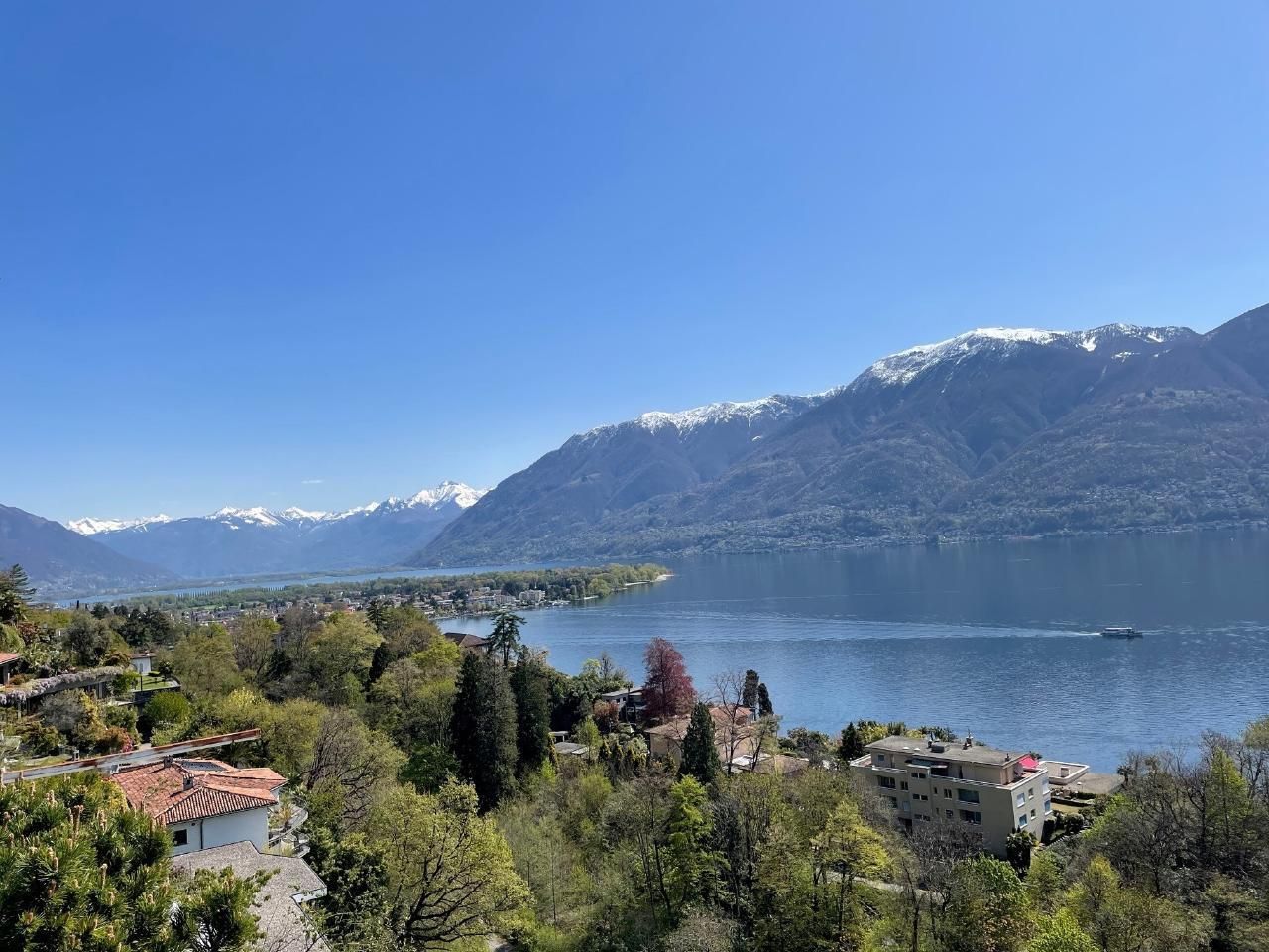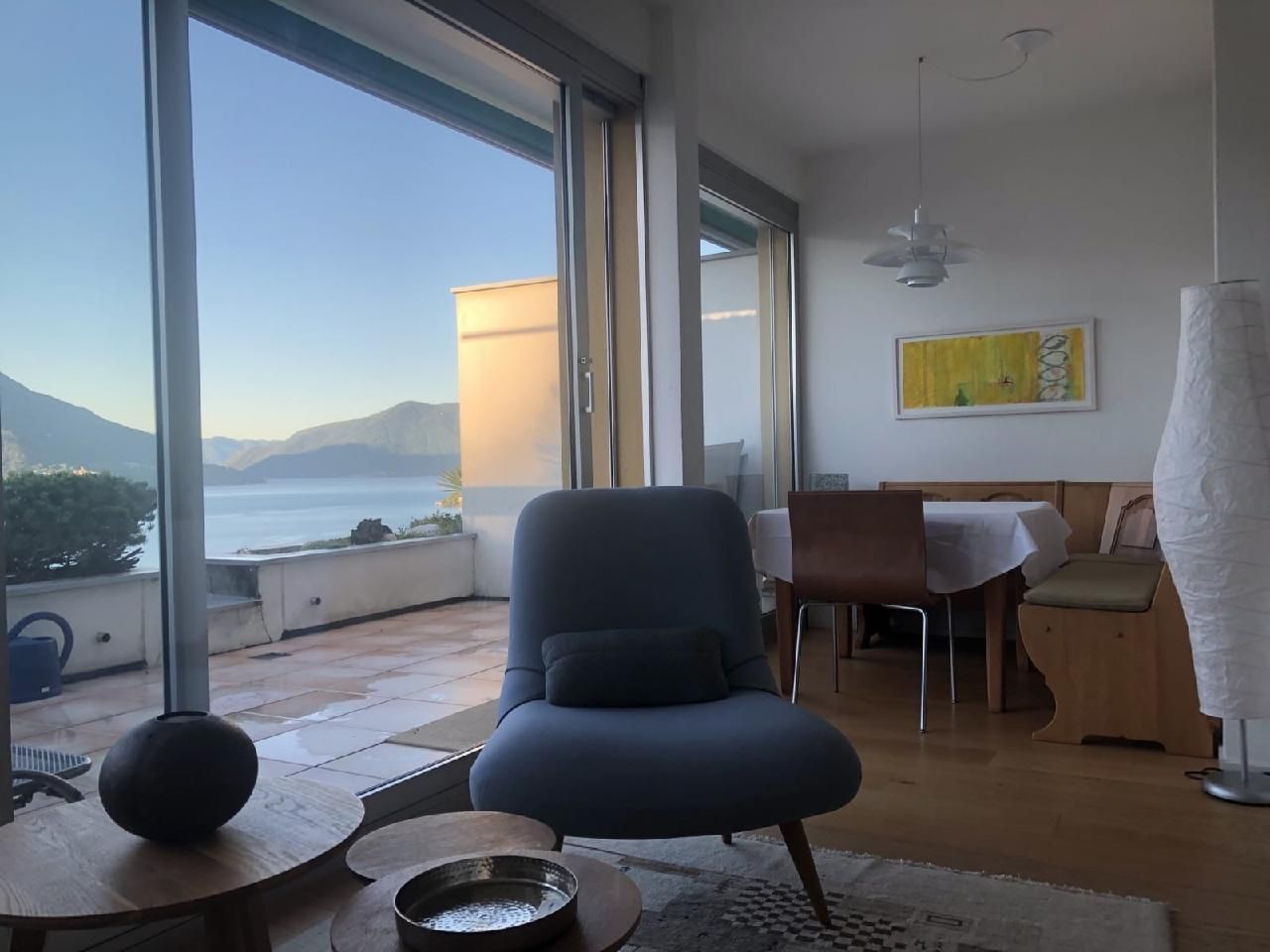 Das stilvoll renovierte Apartment Sollevante 801 liegt im 8. Stock einer gepflegten Residenz oberhalb von Ascona – hell, ruhig und mit spektakulärer Aussicht auf See und Berge.