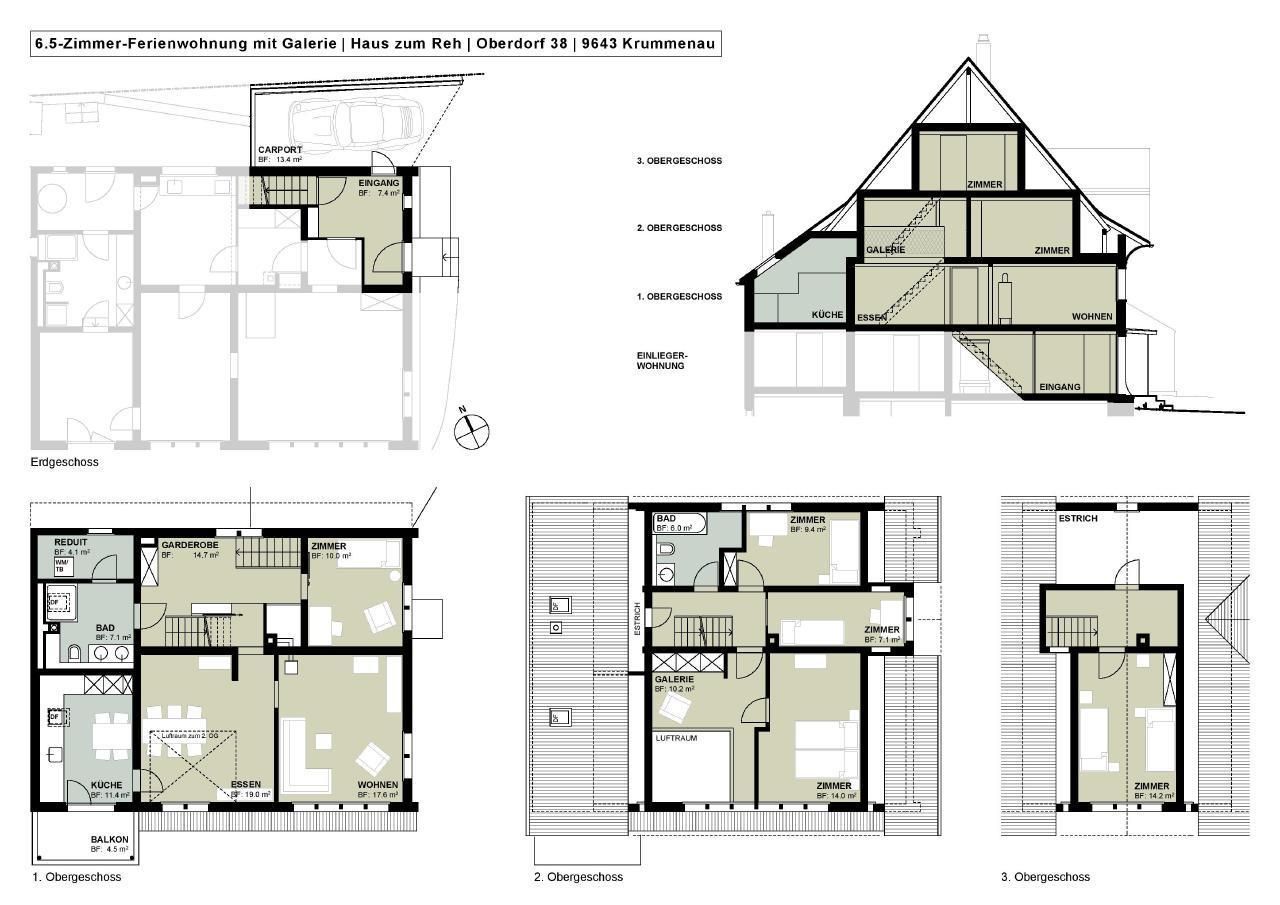 Das historische Toggenburger Holzhaus, erbaut um 1700 und gelegen im friedlichen Dorf Krummenau im oberen Toggenburg, bietet eine perfekte Balance zwischen ländlicher Ruhe und Nähe zu Aktivitäten. Trotz seiner ruhigen Lage abseits der Hauptstraßen, befindet sich das Haus zum Reh im alten Dorfkern, neben Kirche und Gasthaus sowie einem kleinen Dorfladen. Außerdem ist das Dorf ideal an den öffentlichen Verkehr angebunden; sowohl Bushaltestelle als auch Bahnhof sind schnell erreichbar, und die naheliegende Sesselbahn erschließt das umfangreiche Freizeitangebot von Wanderungen im Sommer bis zum Skifahren im Winter. Zusätzlich profitieren Gäste von einer attraktiven Gästekarte mit Angeboten in der gesamten Region.