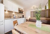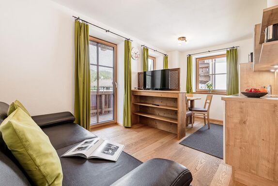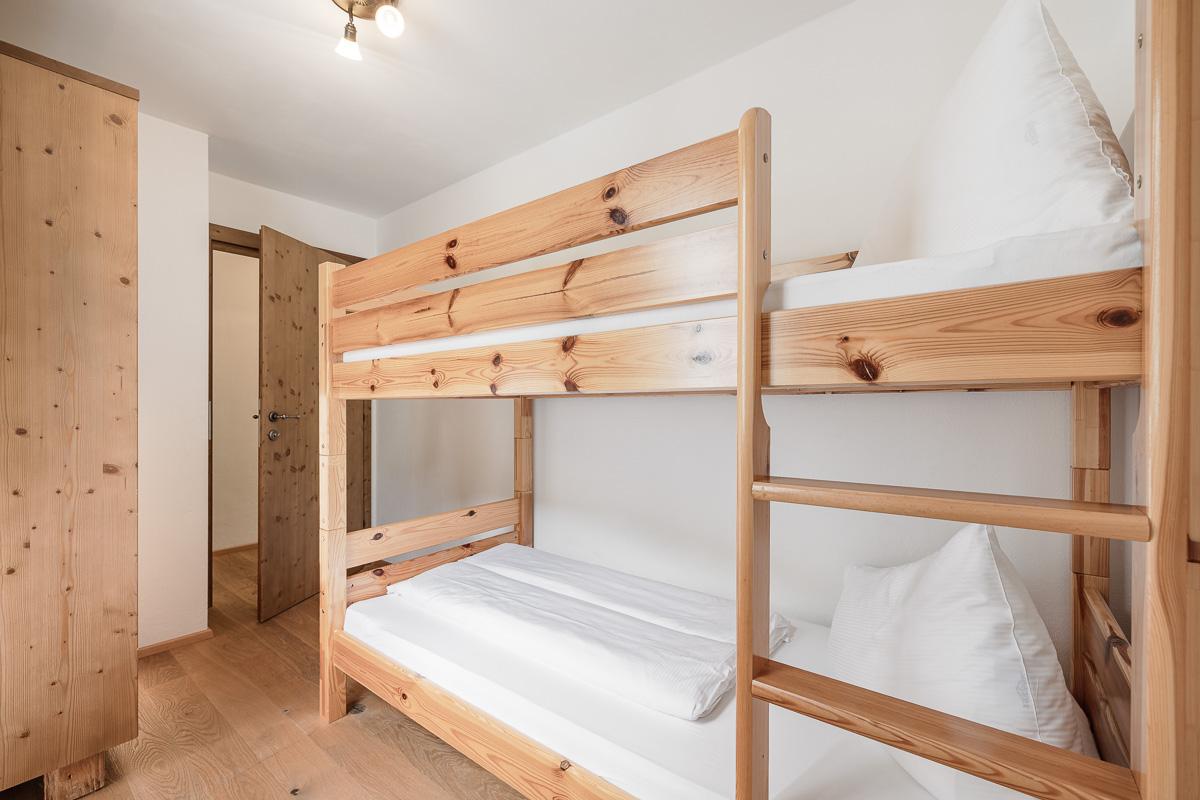 Unser Appartement Arnika hat eine Größe von ca. 48 m² und ist aufgeteilt in 1Schlafzimmer mit Doppelbett, 1Kinderzimmer mit einem Stockbett, welches bei Bedarf auch von Erwachsenen genutzt werden kann, 1 vollausgestattete Wohnküche mit Balkon und 1 Badezimmer mit Dusche und WC. Achtung: Kein Babybett im Elternzimmer zustellbar.