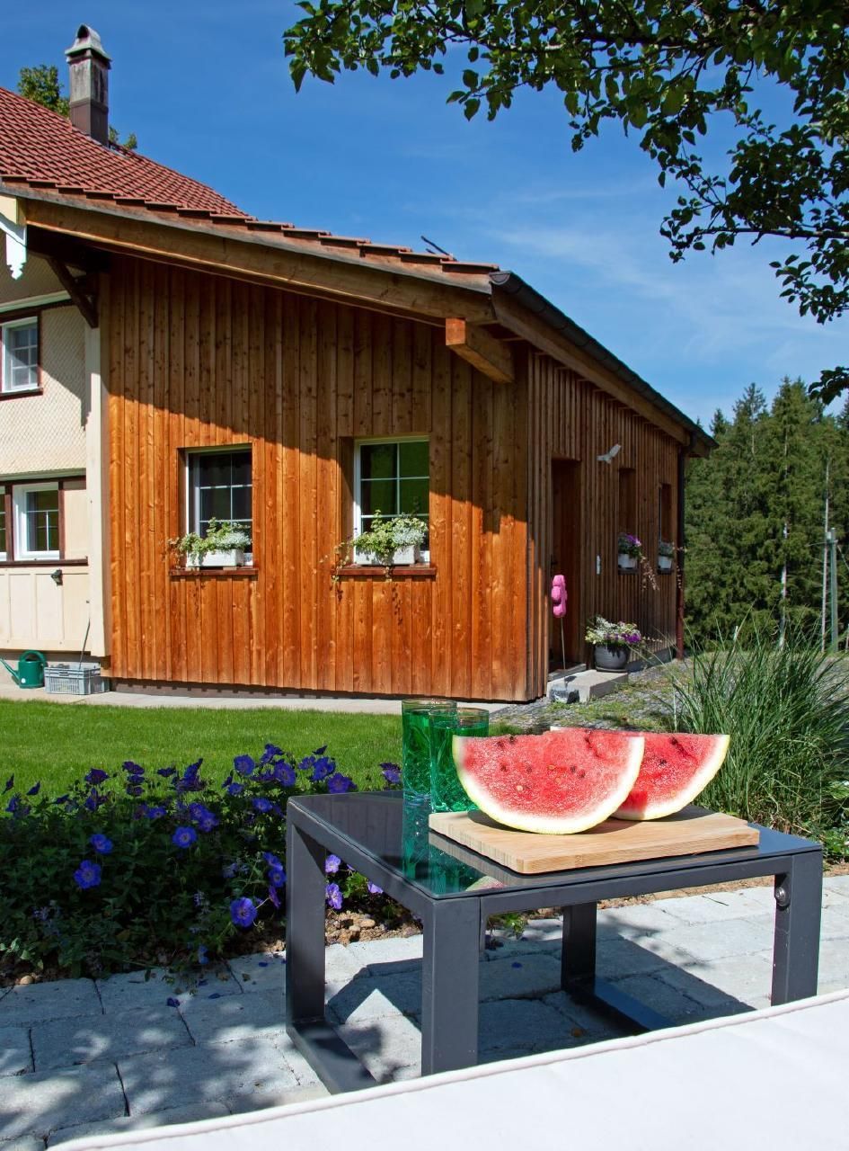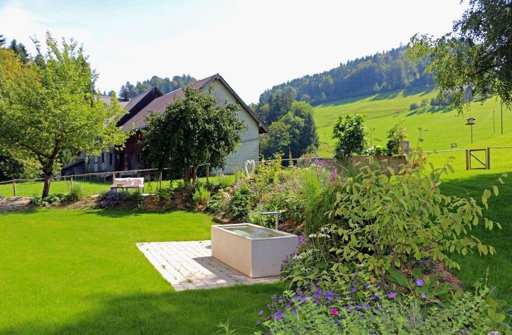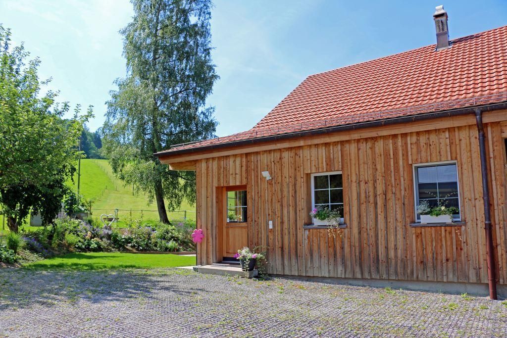 Im 1707 erbauten Bauernhaus, welches 2020 nach baubiologischen Richtlinien renoviert wurde, vermieten wir eine ruhige und heimelige Ferienwohnung. Das Studio bietet ideal Platz für zwei Personen. Es ist mit einer modernen Küche, Badezimmer mit Dusche/Toilette und Ausziehsofa ausgestattet. Es ist ein Radio sowie Internet TV und WLAN vorhanden. Über eine Treppe gelangt man unters Dach zur Galerie mit kuscheligem Doppelbett. (aufgrund Raumhöhe befindet sich das Bett am Boden)Im neu gestalteten Garten kann nach Lust und Laune gefaulenz werden.Als kleine Auszeit vom Alltag, kann die hauseigene Sauna mit Farblichttherapie gerne gegen einen kleinen Aufpreis in Betrieb genommen werden. Falls gewünscht heizen wir euch auch den Hot-Pot im Garten zur Entspannung ein. Er ist mit Massagedüsen und Luftsprudler ausgestattet. (separater Tarif / bei Wasserknappheit nicht möglich)Wir sind eingebettet in eine Wald- sowie auch Landwirtschaftszone. Schwellbrunn wurde von der Schweizer Bevölkerung 2017 zum schönsten Dorf der Schweiz gewählt. Im Sommer können wunderschöne Wanderwege direkt vor der Haustüre erkundet werden. Bikewege oder auch E-Bikerouten sind in Fülle in der Umbgebung vorhanden. Das Appenzellerland und die Bodenseeregion bieten diverse kulinarische, sportliche oder erholsame Aktivitäten. Für jeden ist in der näheren Umgebung das passende dabei. Im Winter führen diverse Schneeschuhwanderwege in der nähe des Hauses vorbei. Auch eine Langlaufloipe kann bei Tag und Nacht genutzt werden. Das Bauernhaus liegt etwas ausserhalb von Schwellbrunn an einer Privatstrasse. Die direkte Zufahrt zum Haus ist möglich und es stehen Parkplätze direkt neben der Wohnung zur Verfügung. Die steile, mit Ecoraster befestigte Strasse ist für Autos mit langem Radabstand oder tiefergelegte Autos nicht zwingen zu empfehlen. Zur nächsten Bushaltestelle sind es ca. 30min zu Fuss. Mit dem Auto ist man in 10min in Herisau und in 20min in der Stadt St.Gallen oder in Appenzell.
