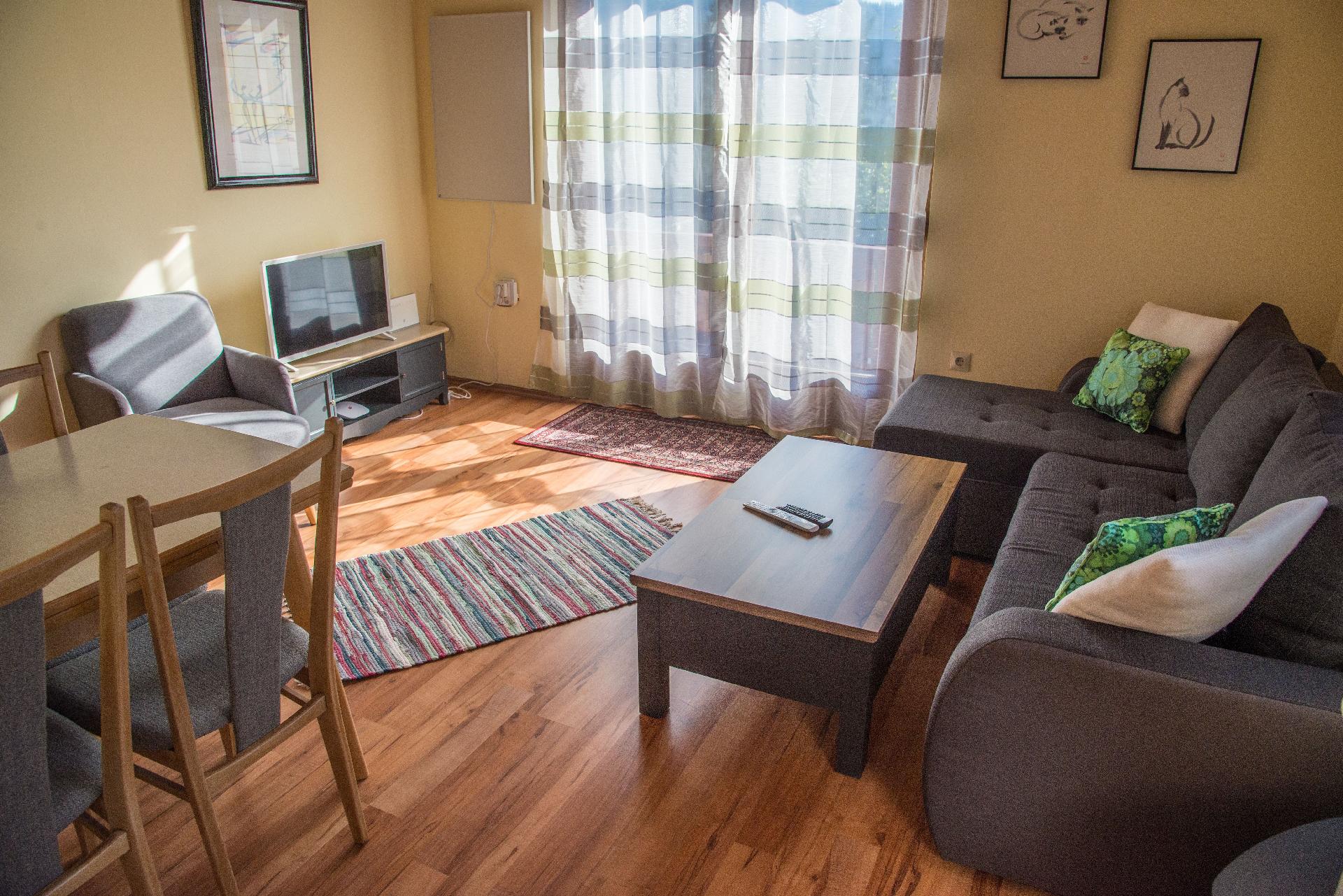 Die Wohnung bietet 2 Doppelzimmer, eine Küche, Wohn- / Essbereich, Bad und Flur. Eines der Schlafzimmer ist ein Zweibettzimmer. Das Wohnzimmer verfügt über ein Schlafsofa. Die Küche ist komplett ausgestattet mit Cerankochfeld, Backofen, Geschirrspüler, Mikrowelle, Kühlschrank mit Eisfach, Wasserkocher, Kaffeemaschine, einen kompletten Satz Geschirr und allen zum Kochen erforderlichen Utensilien. Ein TV mit WLAN ist vorhanden. Das Badezimmer ist barrierefrei und verfügt über Dusche, Waschbecken und WC sowie einer Waschmaschine und einen beheizten Handtuchhalter. Frische Handtücher und Bettwäsche sind vorhanden. Die Wohnung wird mit thermostatisch gesteuerten Infrarot-Heizkörper in allen Räumen beheizt.
