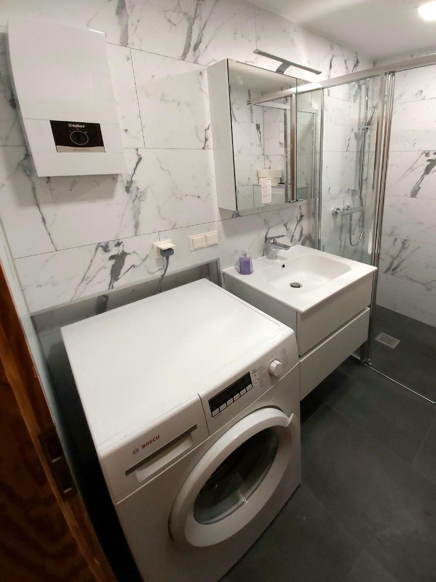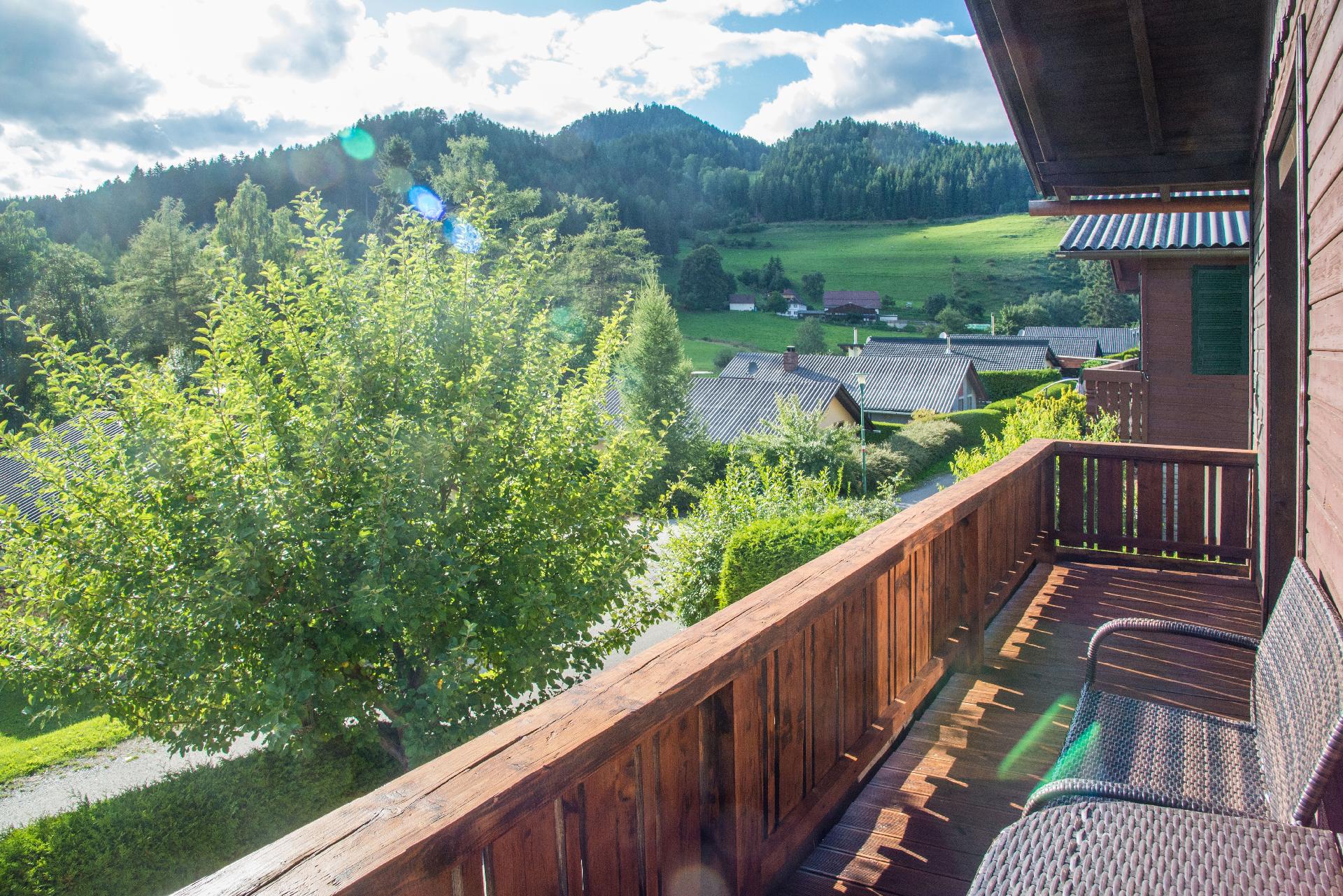 Der Außenbereich umfasst einen Balkon mit herrlichem Blick auf das Murtal, eine große Terrasse mit Grillplatz, einen Wintergarten mit Liegestühlen, Stühlen und Tischen sowie einen kleinen Gartenbereich. Es gibt einen angrenzenden Abstellraum mit Bügelbrett, Kleiderständer und Mülltrennbehälter. Parkplätze für 2 Autos stehen direkt vor dem Haus zur Verfügung.