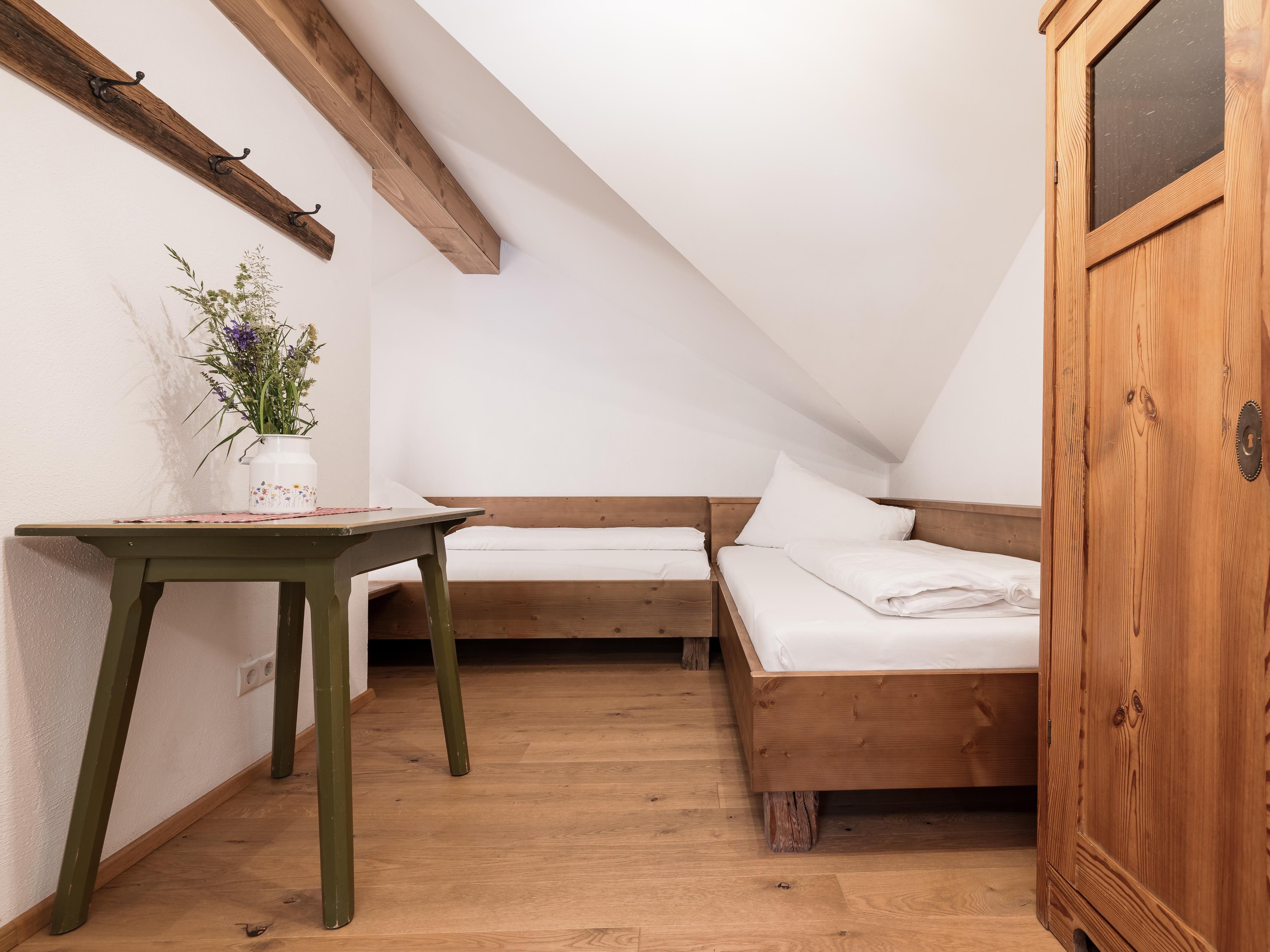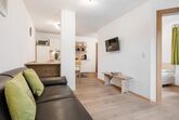 Unser Appartement Alpenrose hat eine Größe von ca. 48 m² und ist aufgeteilt in 1 Schlafzimmer mit Doppelbett, 1 Kinderzimmer mit zwei Einzelbetten, die wahlweise auch zusammengestellt und bei Bedarf von Erwachsenen genutzt werden können, 1 vollausgestattete Wohnküche mit Balkon und 1 Badezimmer mit Dusche und WC.