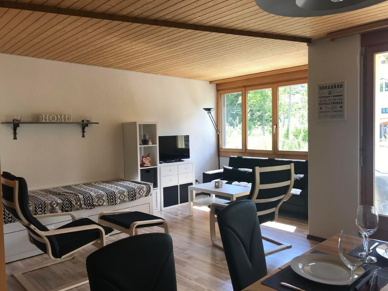 Die elegante 2.5 Zimmer Wohnung befindet sich direkt im Dorfkern von Sörenberg und wurde 2019 komplett neu eingerichtet. Mit modernsten Küchengeräten ausgestattet – inklusive Backofen, Mikrowelle und Geschirrspüler – lässt sie keine Wünsche offen. Neben einem gemütlichen Doppelbett und einem Etagenbett im neuen Schlafzimmer, bieten zwei Schlafsofas im Wohnzimmer zusätzliche Übernachtungsmöglichkeiten. Zur Ausstattung gehören ebenfalls ein renoviertes Bad/WC und eine kleine Garderobe, während Bett- und Badwäsche auf Wunsch verfügbar sind.