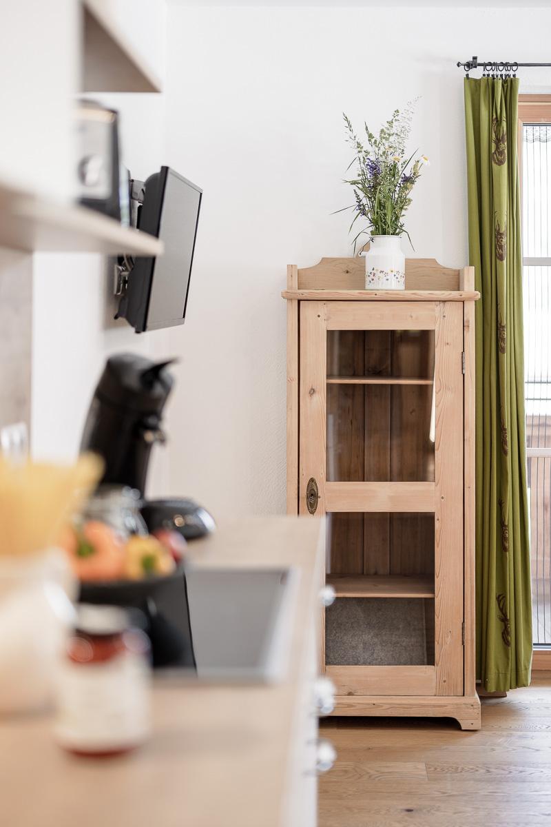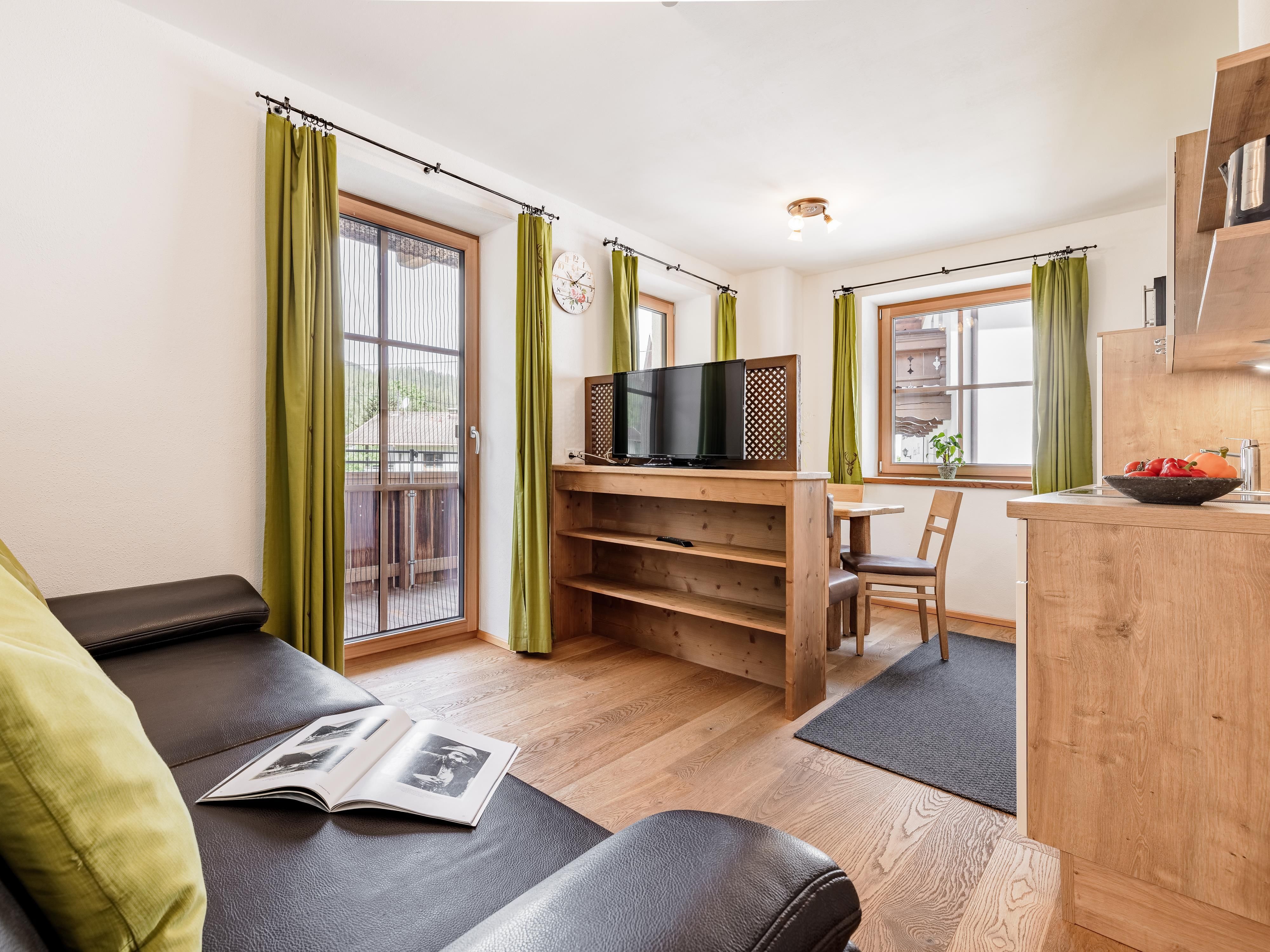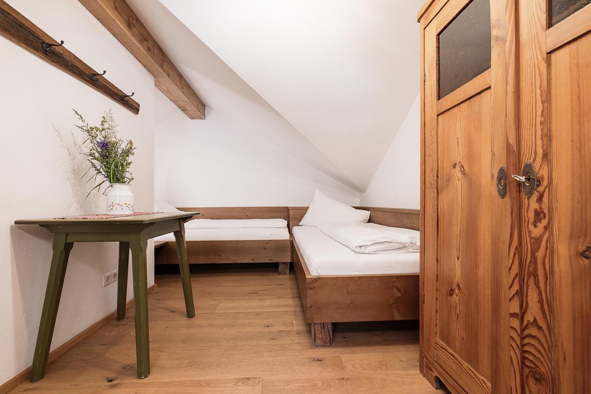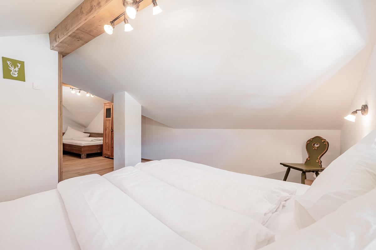 Unser Appartement Enzian hat eine Größe von ca. 75 m²: 1 Doppelbettzimmer, 1 Zimmer mit 1 Doppelbett und 1 Einzelbett, eine große, vollausgestattete Wohnküche mit Balkon und ein Badezimmer mit Dusche und WC.
