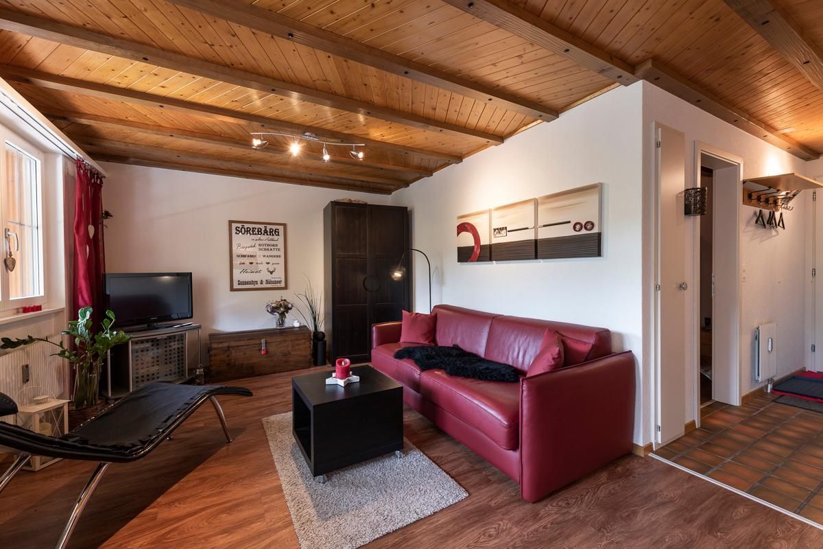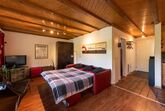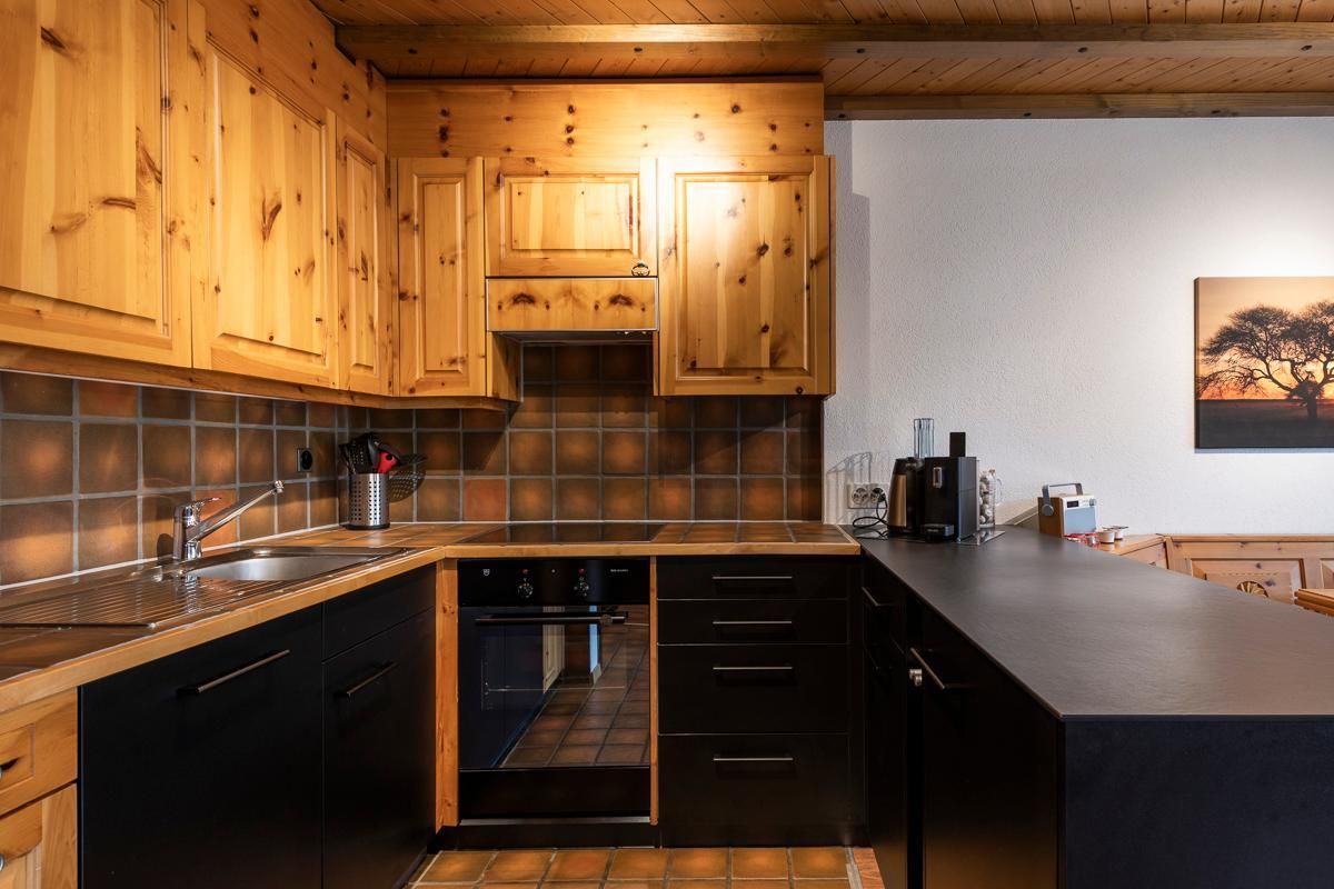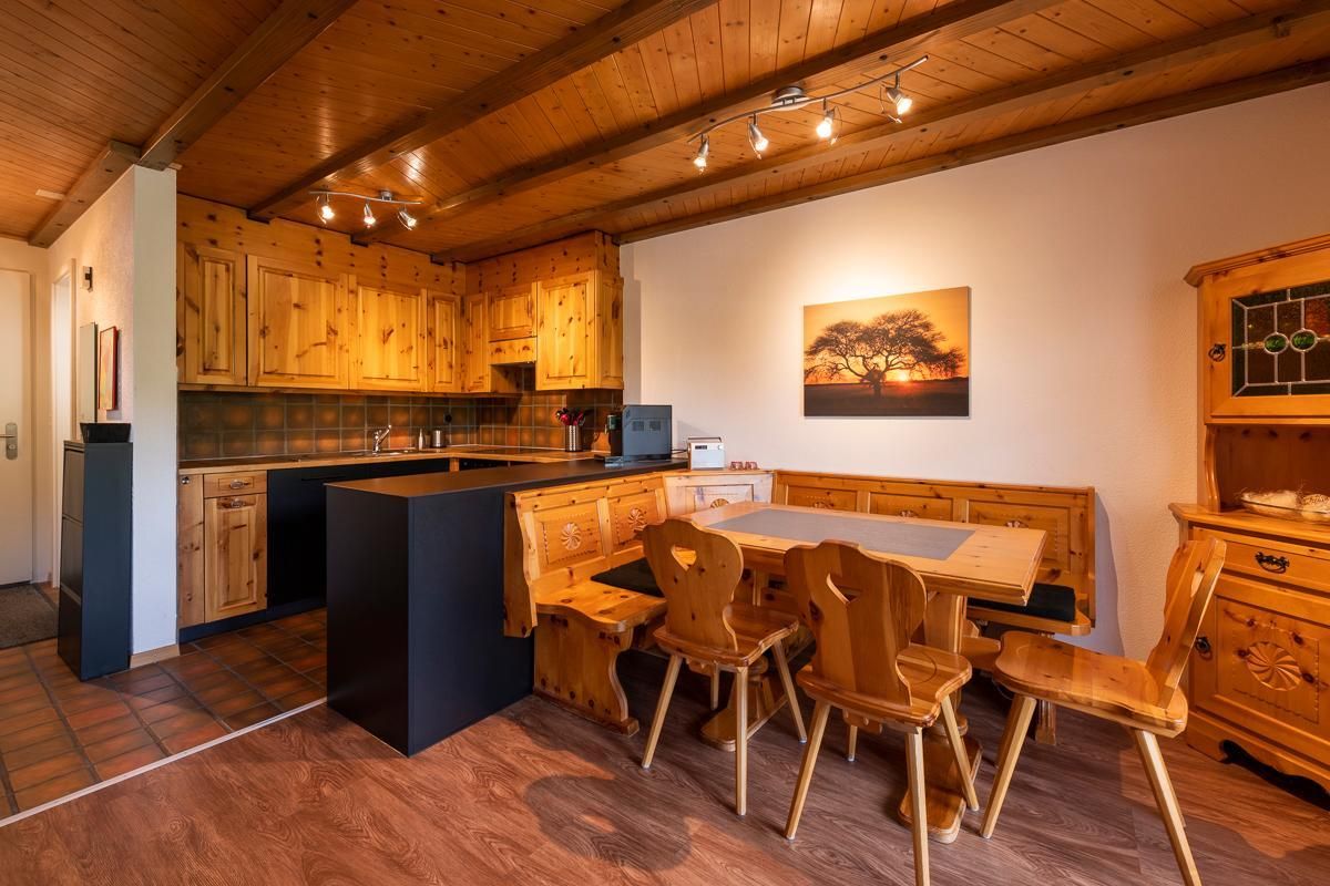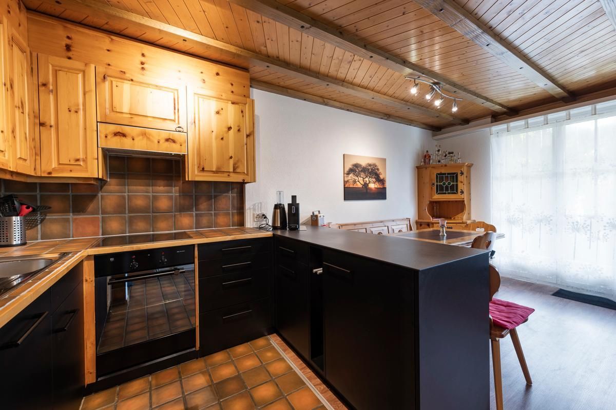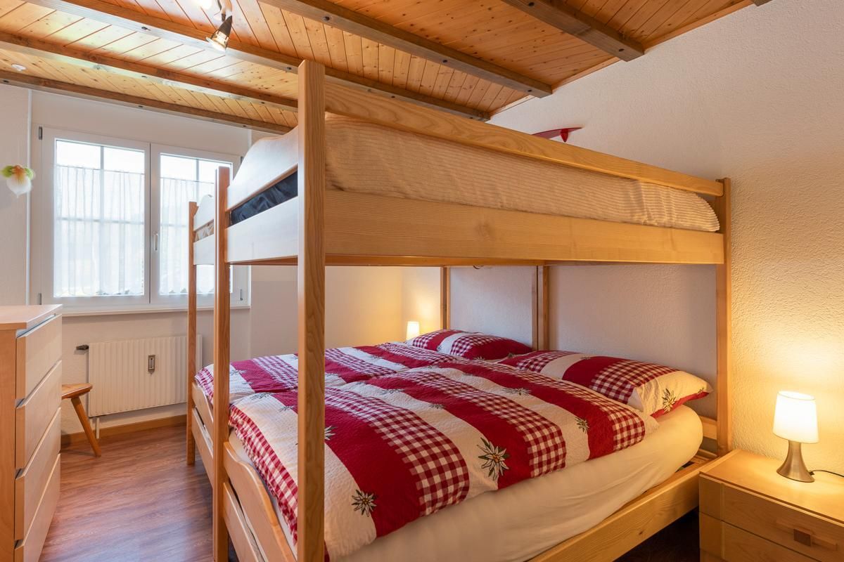 Die Wohnung strahlt mit ihrer sonnigen Lage in einem charmanten Chalet Wohnkomfort und Gemütlichkeit aus. Es handelt sich um eine 2 ½ Zimmerwohnung, die über ein Schlafzimmer mit 2 Etagenbetten (für 4 Personen) und ein Wohnzimmer mit einer Doppel-Auszugcouch verfügt. Das Wohnzimmer ist mit einem gemütlichen Esstisch neben der offenen Küche ausgestattet, der bis zu 6 Personen Platz bietet. Zur Ausstattung gehören weiterhin ein großer Kühlschrank, ein 4-Platten-Keramikherd, Geschirrspüler sowie TV und WLAN. Für gesellige Abende stehen Ihnen ein Fondue Caquelon, ein Fondue Bourguignon Rechaud und eine Nespresso-Kaffeemaschine (Kapseln im lokalen Supermarkt erhältlich) zur Verfügung.