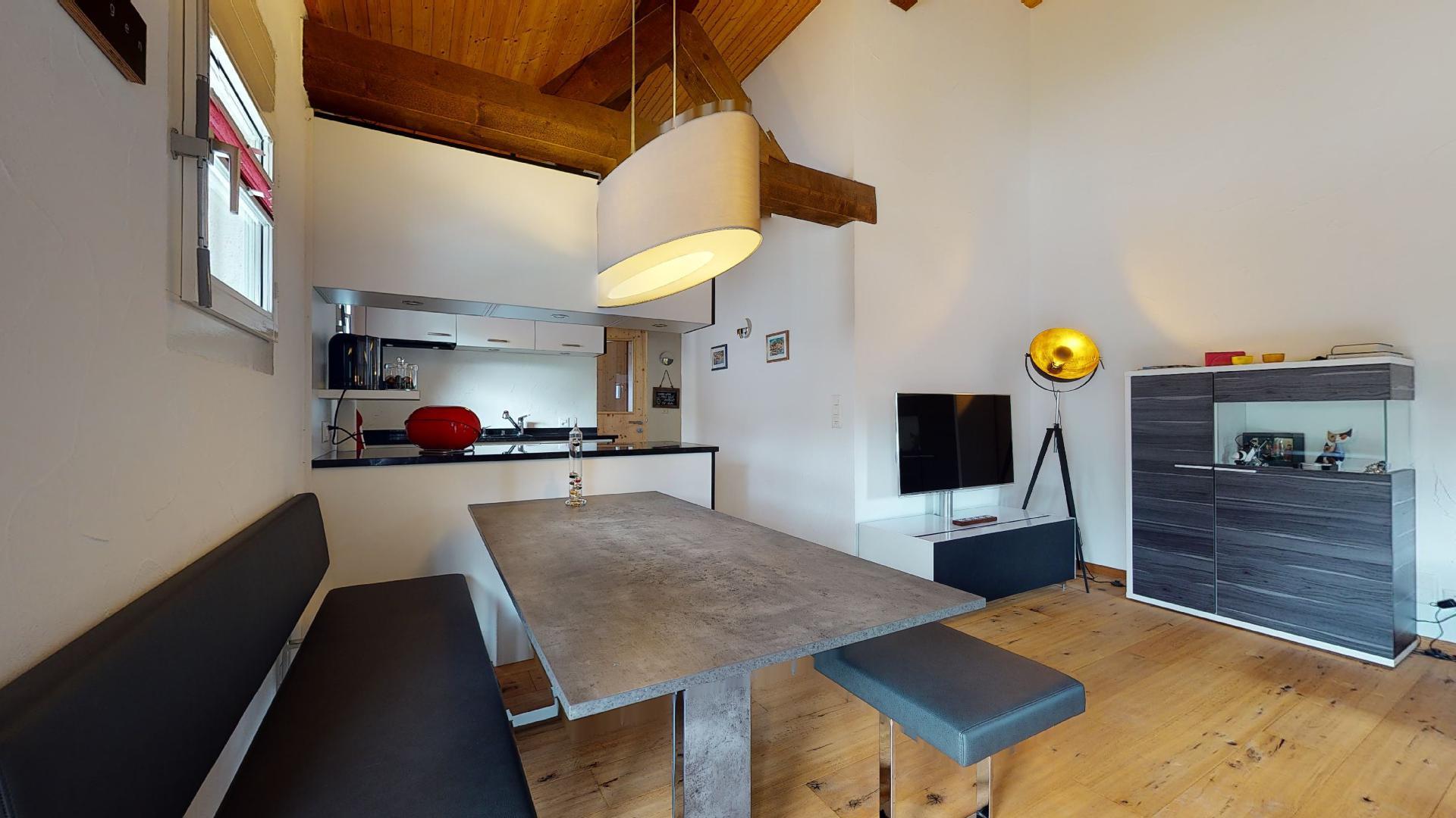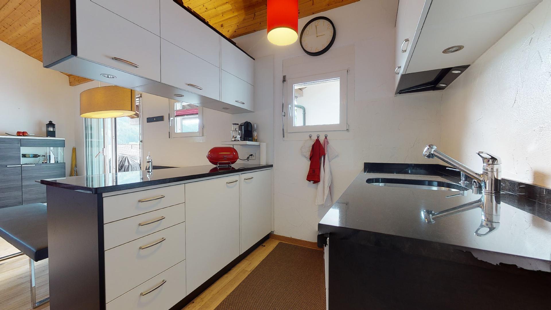3 Zimmer-Dachwohnung in Mehrfamilienhaus. 1 Schlafzimmer mit 1 Doppelbett, 1 Schlafzimmer mit 1 Kajütenbett und 1 ausziehbares Bett. Babybett vorhanden. Insgesamt 5 Betten. Wohnküche mit Backofen, Mikrowelle, Kühlschrank, Geschirrspülmaschine und Kaffeemaschine. Racletteofen und Fondue Caquelon. Küchenmaschine. Dusche/WC. Balkon. Platz in Einstellhalle. TV. Haustiere nicht erlaubt. Nichtraucher. DVD-Player. WiFi.