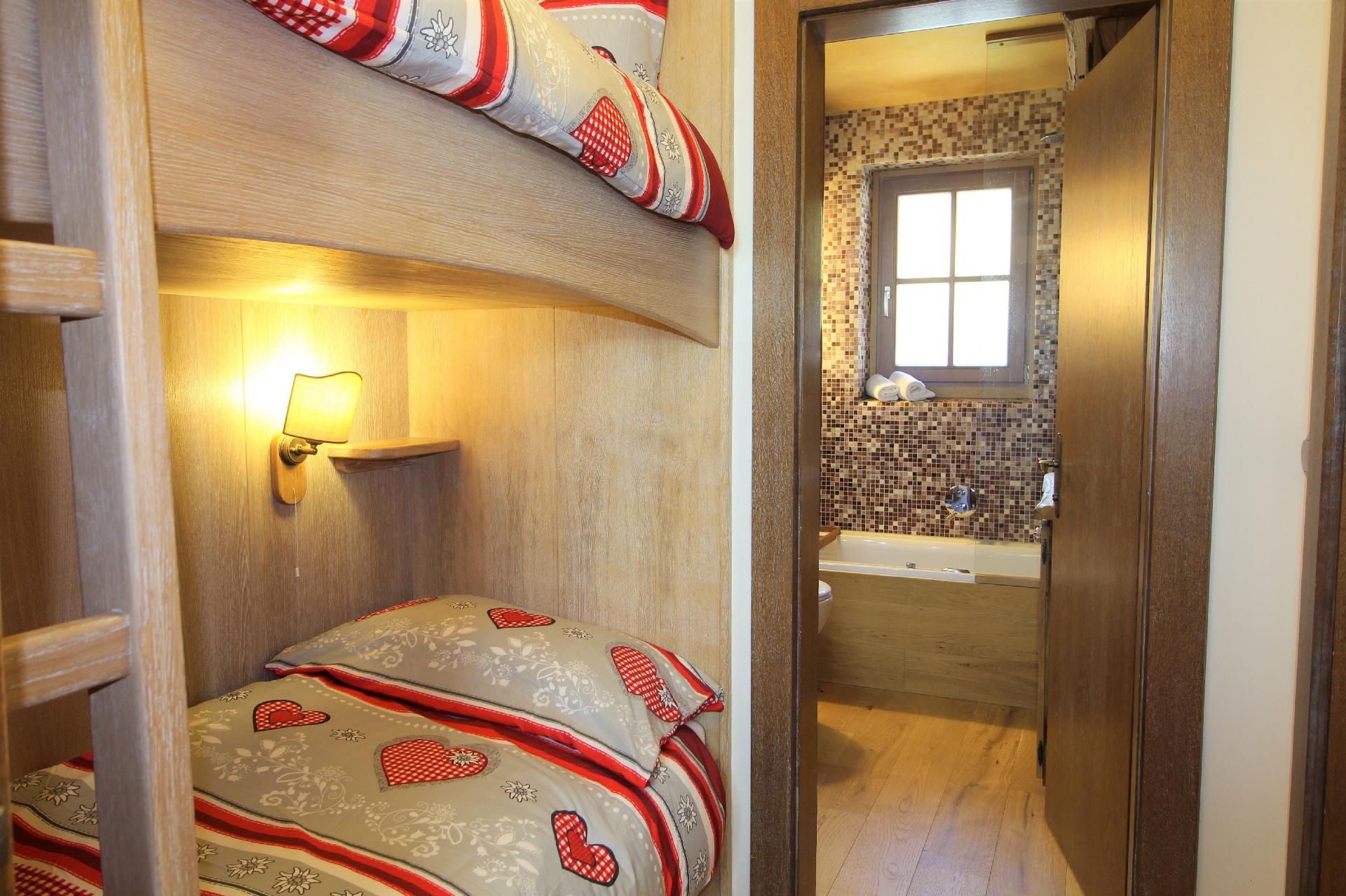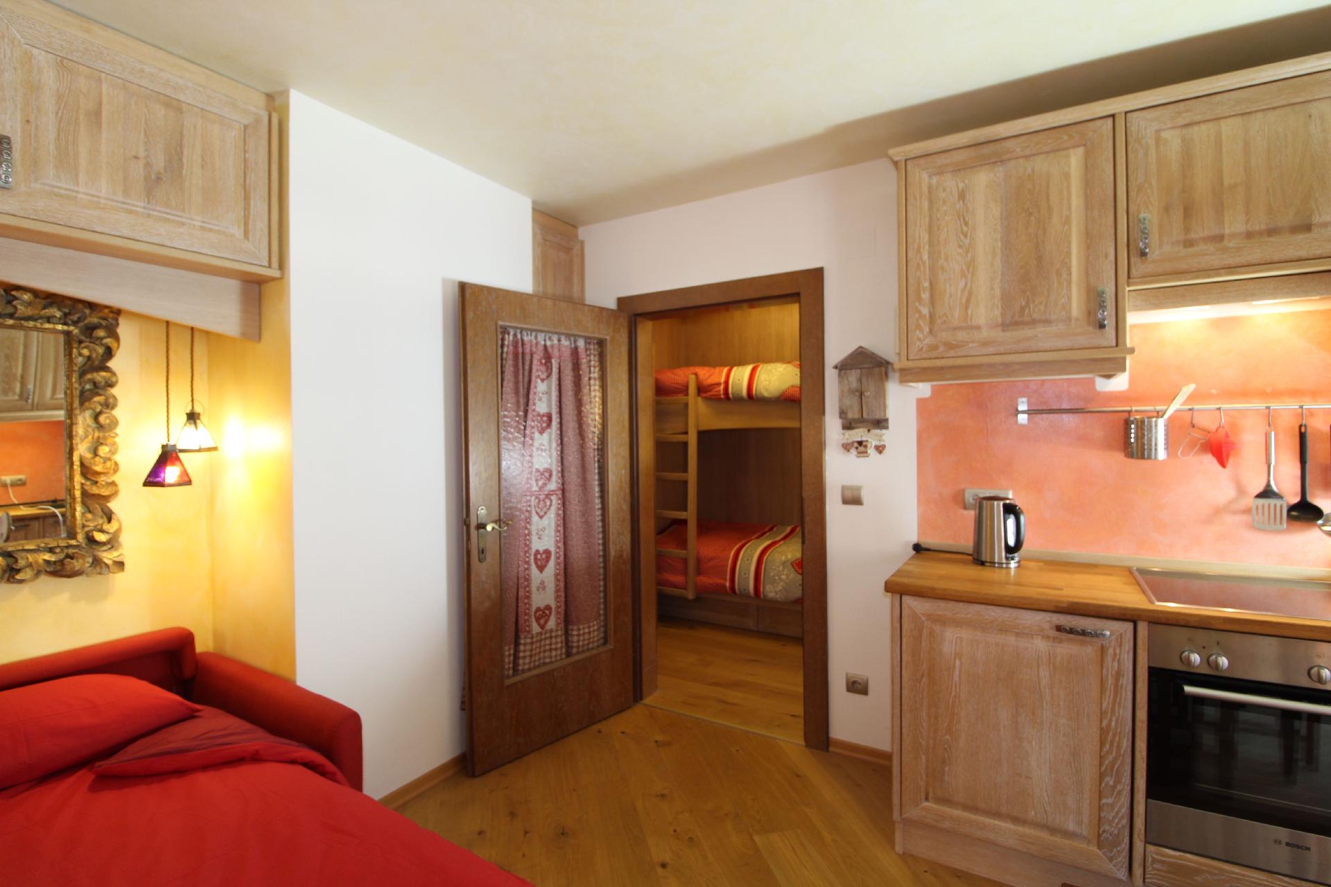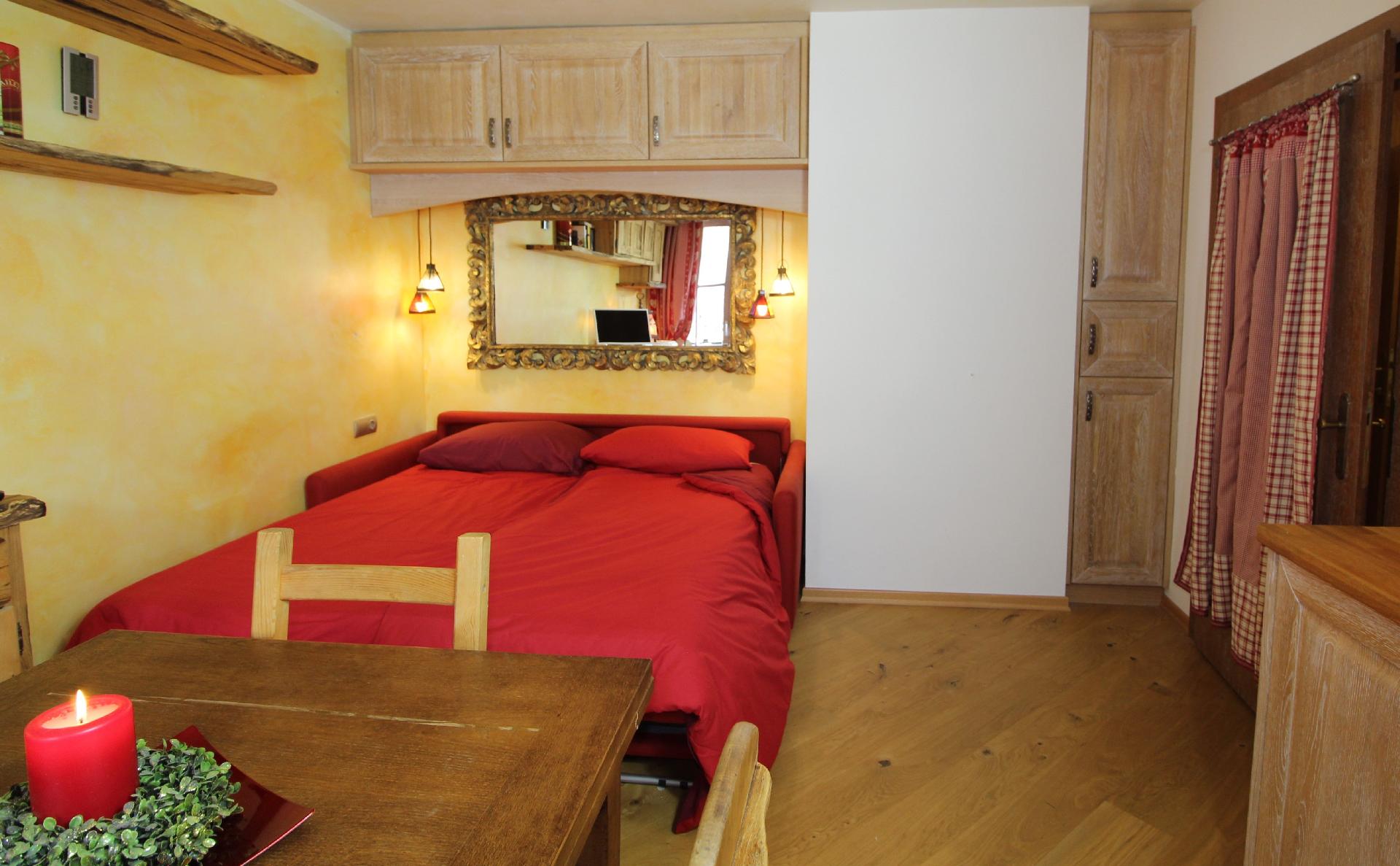 Innen beeindruckt das Studio mit einer durchdachten Ausstattung, die keine Wünsche offenlässt. Ein praktisches Etagenbett und ein bequemes Schlafsofa bieten ausreichend Platz für Ihre Erholung nach einem langen Tag auf den Pisten. Eine voll ausgestattete Küche mit Backofen und Geschirrspüler ermöglicht die Zubereitung köstlicher Mahlzeiten, während das Badezimmer mit einem entspannenden Whirlpool zum Verweilen einlädt.