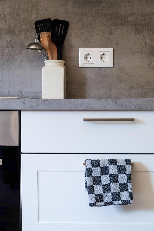 Im Inneren erwartet Sie eine hochwertige Ausstattung, die keine Wünsche offenlässt. Jede Einheit verfügt über ein Badezimmer mit Dusche und Föhn, ein Schlafzimmer für erholsamen Schlaf und eine Küchenzeile. Diese ist ausgestattet mit Spülmaschine, Backofen oder Mikrowelle, einem Induktionskochfeld, Toaster, Wasserkocher, einer Nespresso-Kaffeemaschine sowie einer Filter-Kaffeemaschine – sodass der Start in den Tag mit einem perfekten Kaffee gesichert ist. Ein Sat-TV und kostenloses WLAN runden die moderne Innenausstattung ab, die dafür sorgt, dass es Ihnen an nichts fehlt.