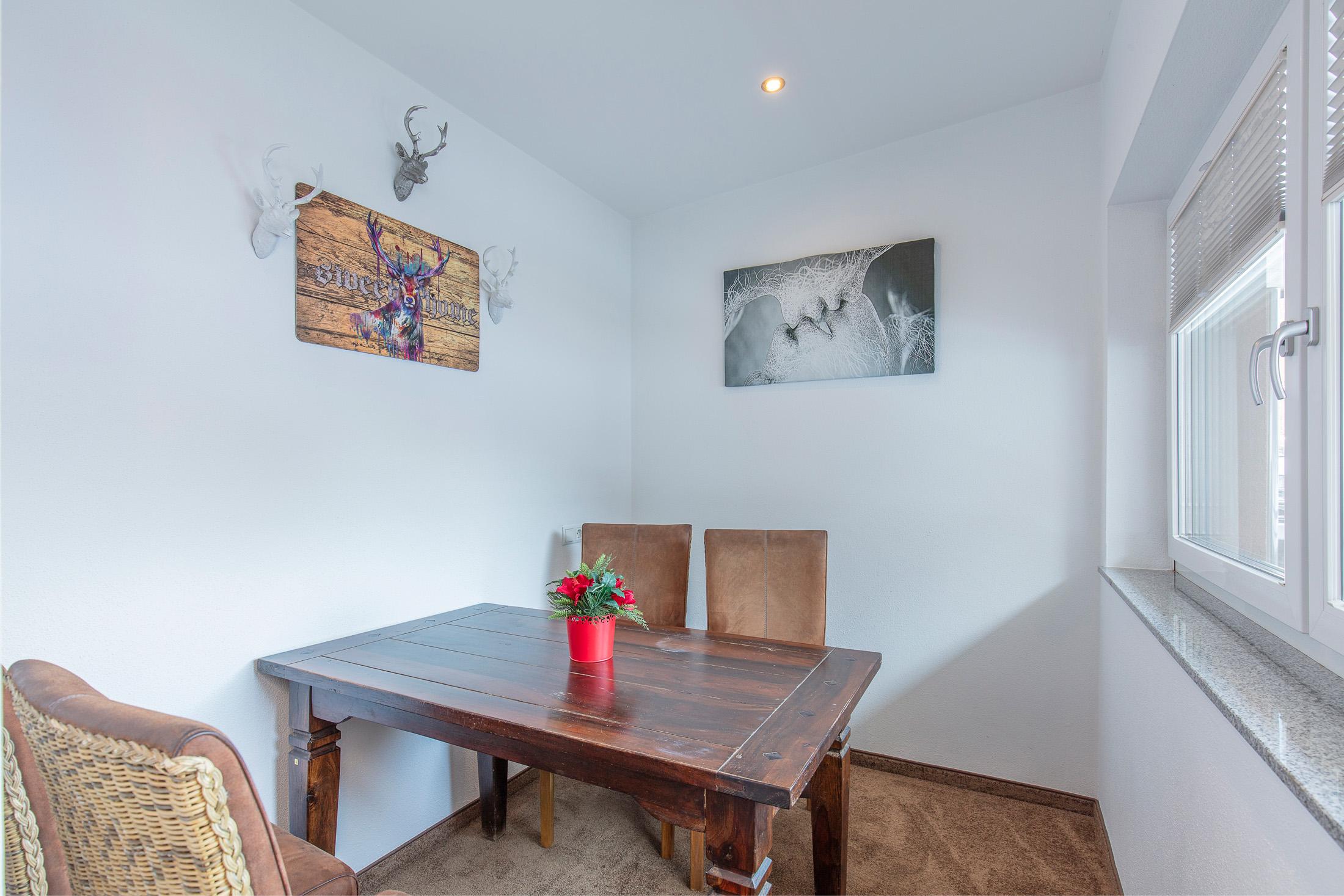 Gemütlich eingerichtetes Appartement mit Balkon, 1 Doppelzimmer, 1 Zweibettzimmer, 1 Badezimmer mit Dusche/WC, 1 vollausgestattete Küche mit Essecke (Kühlschrank, 2-Platten-Cerankochfel, Kaffeemaschine, uvm.), separates Wohnzimmer mit Sofa und TV. Größe ca. 60 m².