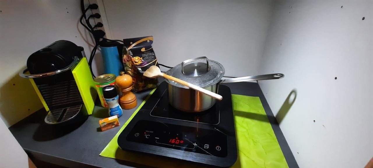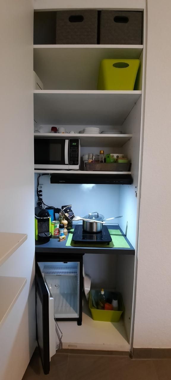 Studio von 22m2, für eine oder zwei Personen, unabhängiger Eingang, kostenloser Parkplatz, WC/Dusche, Bad- und Bettwäsche inklusive, Kochnische mit Backofen/Mikrowelle, 1 Induktionskochfeld, Dunstabzugshaube, Außengrill, Kühlschrank, Wasserkocher, Teller, Gläser und Service, kostenloser Kaffee und Tee, Flachbildfernseher mit 250 Kanälen, kostenloses High-Speed-Internet, Blick auf den Berg und den Weinberg, Sonnenterrasse mit Sonnenschirm, Grill, elektrische Markise, einfaches Frühstück auf Anfrage