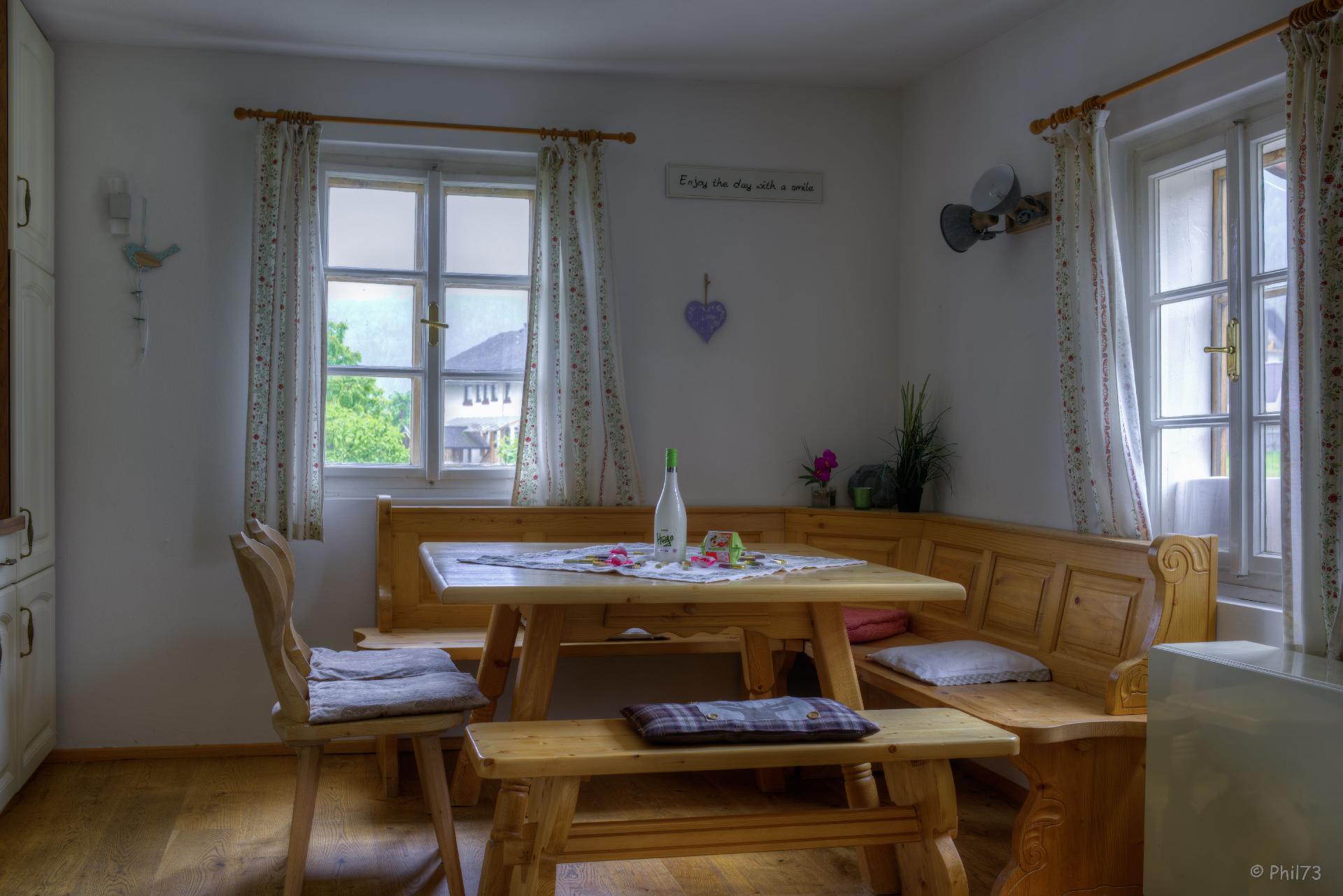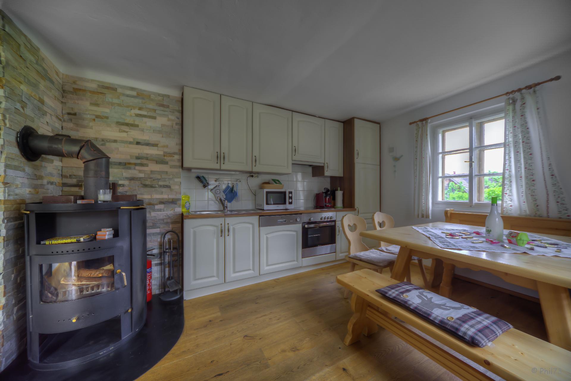 Das Innere des Hauses Steinhof ist so konzipiert, dass es den Gästen den höchsten Komfort bietet. Ausgestattet mit einer Gemeinschaftsküche, die eine Spülmaschine, Mikrowelle, Kaffeemaschine, Wasserkocher und alle notwendigen Küchenutensilien umfasst, bietet das Haus die perfekte Grundlage für gemeinsame Mahlzeiten. Die gemütliche Wohnatmosphäre wird durch den charakteristischen Kamin vervollständigt, der für warme und entspannte Abende sorgt.