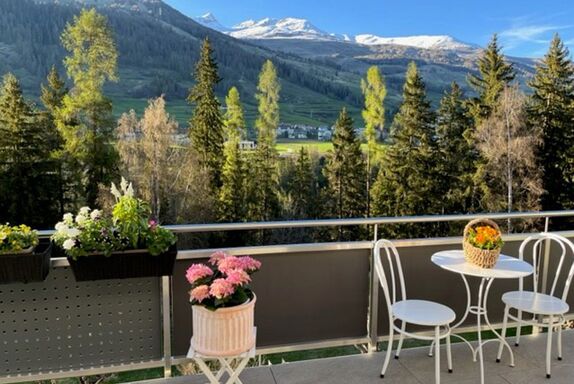 Sie macht die Wohnung zu einem besonderen Erlebnis. Bei einem guten Glas Wein geniessen Sie einen erhabenen Blick über das gesamte Unterengadin mit seiner unvergleichlichen Bergkulisse. Im Sommer ist sie den ganzen Tag in der Sonne, welche erst spät am Abend untergeht, wenn der Rest des Tales schon eine Weile im Schatten liegt.