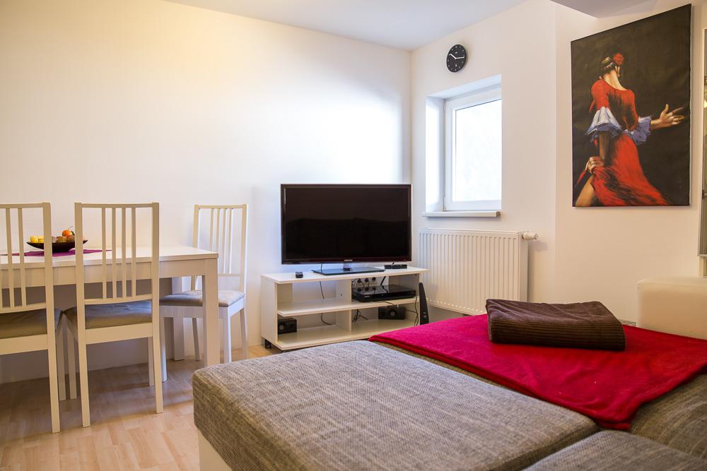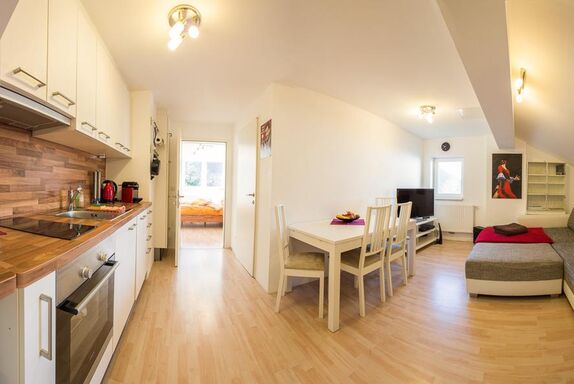 2012 erbaute moderne Ferienwohnung mit SAT-TV, W-Lan, Küche/Wohnzimmer, Schlafzimmer und Dusche/WC - Verbindungstür zwischen beiden Ferienwohnungen Außerdem: SAT-TV auch im Schlafzimmer, toller Ausblick, Geschirrspüler, Waschmaschine und Backhofen