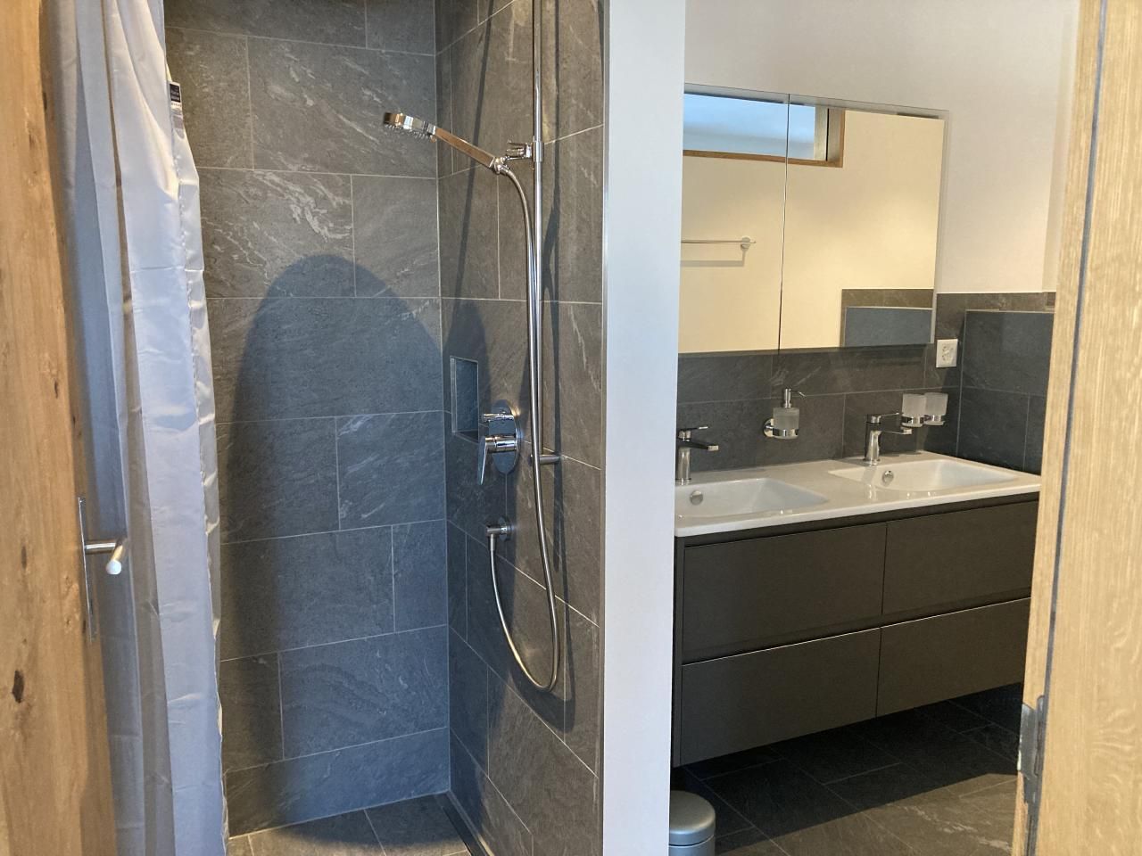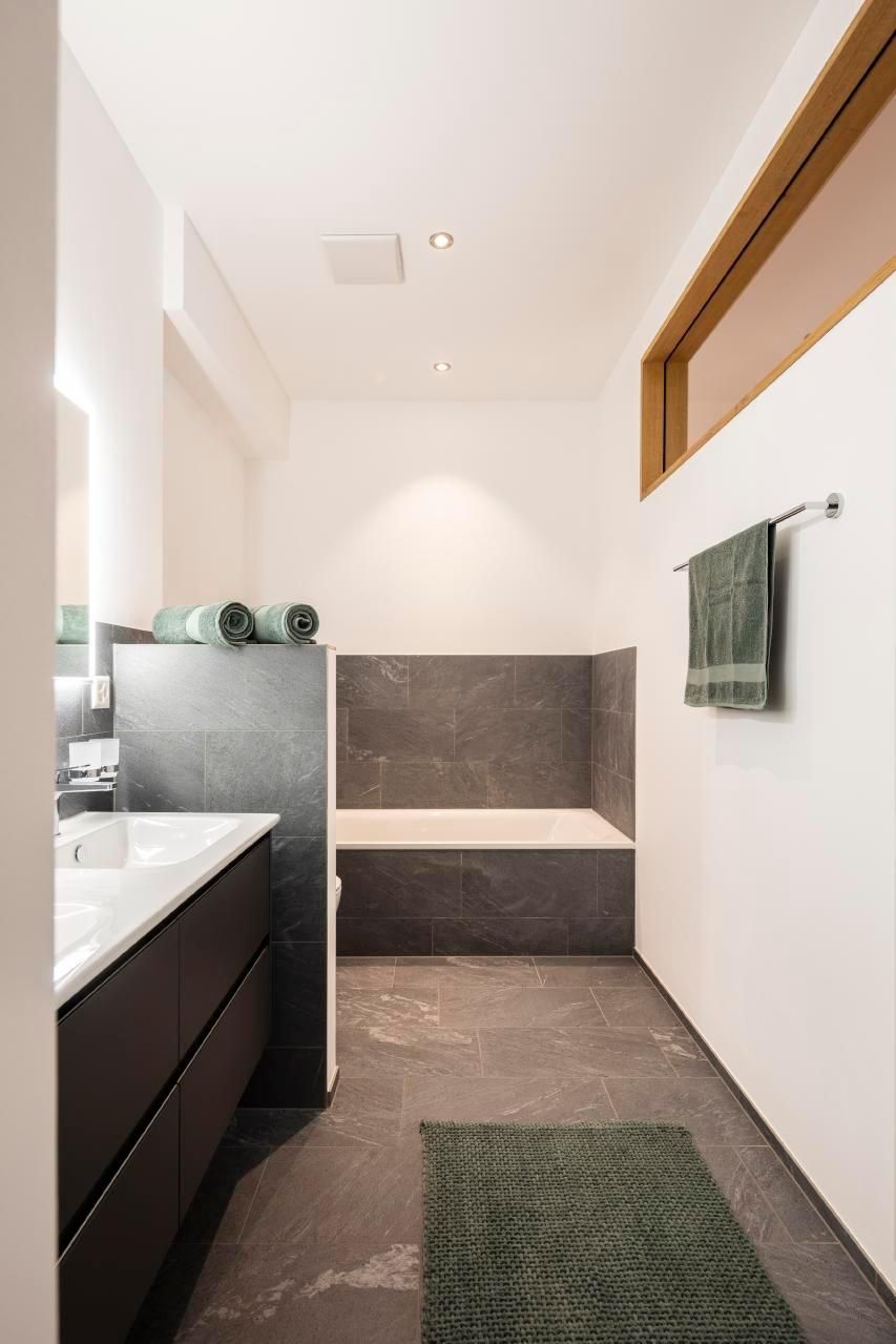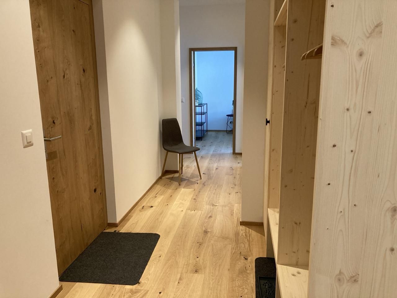 Im Inneren erwartet Sie eine geräumige Wohnung, die mit drei Schlafzimmern – ein gemütliches Doppelbettzimmer, ein Zimmer mit zwei Betten sowie ein Zimmer mit einem Ausziehbett – ideal für jede Gruppengrösse oder Familie ist. Zwei grosse Badezimmer mit Doppelwaschbecken, Dusche und Badewanne versprechen entspannende Momente. Der offene Wohn-, Ess- und Küchenbereich bietet dank modernster Ausstattung, einschließlich Induktionsherd, Backofen, Kombisteamer und Geschirrspüler, maximalen Komfort. Hinzu kommen eine Nespressomaschine, ein Raclette- und Fondueset sowie ein Waschraum mit Waschmaschine und Wäschetrockner, die Ihren Aufenthalt so angenehm wie möglich gestalten. Ein beheizter Skischuh- und Skischrank befindet sich im Eingangsbereich der Wohnung.