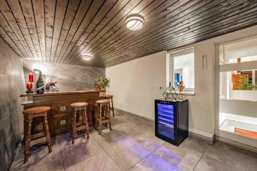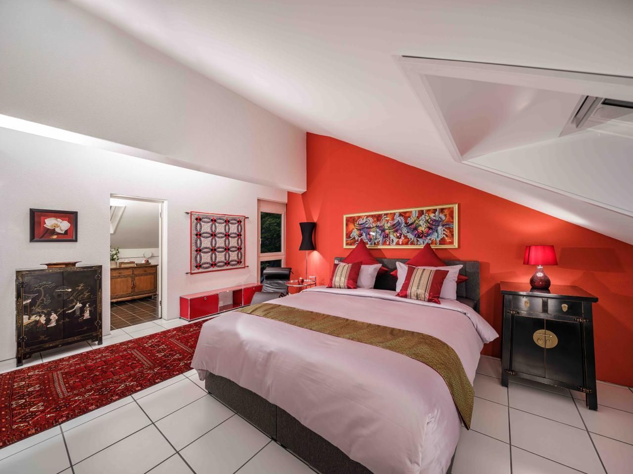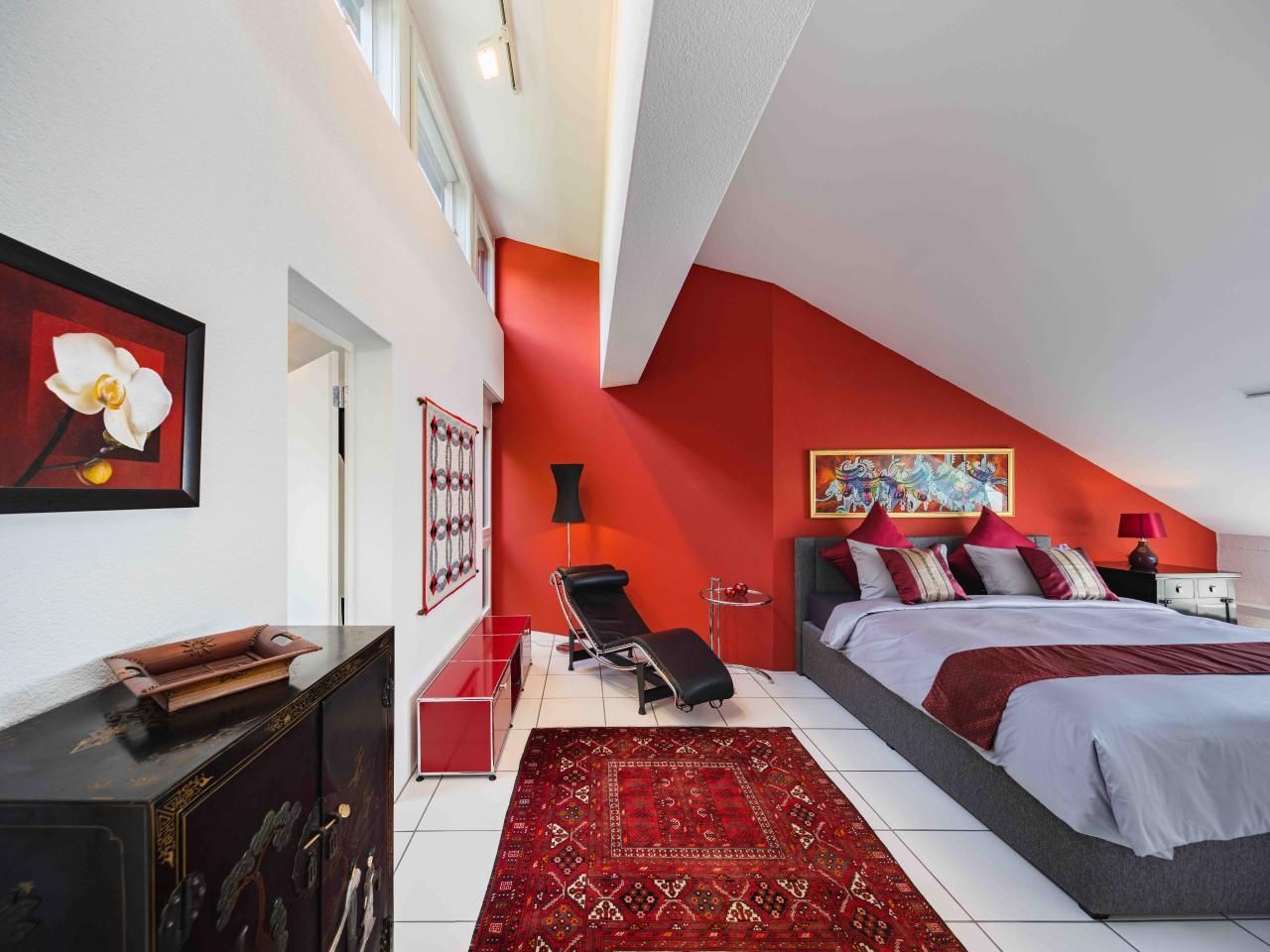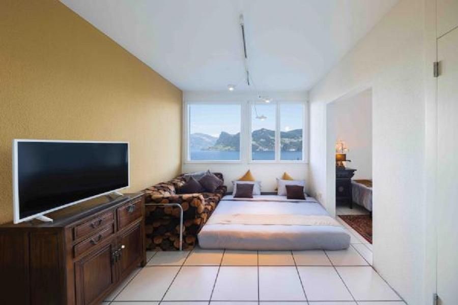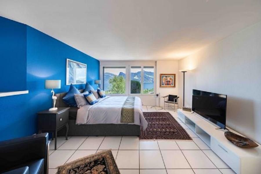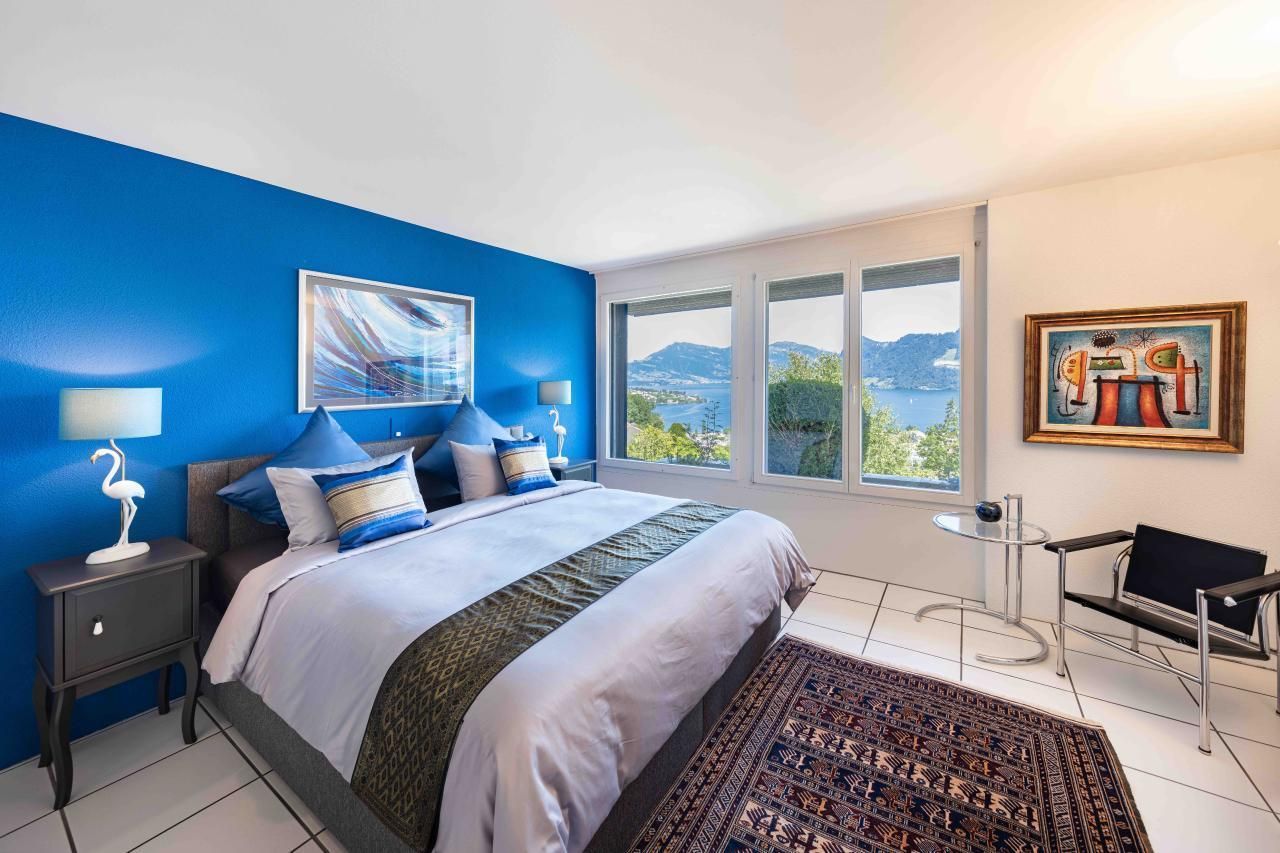 Villa Ysara - 7BR Luxus Pool Villa mit Blick auf den Vierwaldstättersee Die Villa Ysara befindet sich im Dorf Hergiswil, am westlichen Ufer des Vierwaldstättersees. Die Villa liegt hoch auf einem Hügel mit Blick auf den Vierwaldstättersee und das Dorf darunter. Sie befindet sich in einer ruhigen Gegend und ist dennoch nur 10-15 Autominuten von der historischen Luzerner Altstadt und nur 5 Autominuten von den Ufern des wunderschönen Sees entfernt. Der berühmte und majestätische Pilatus befindet sich weiter westlich und kann von der Villa aus gesehen werden. Die Villa Ysara verfügt über sieben Schlafzimmer mit eigenem Bad in verschiedenen Mietkonfigurationen. Der Baustil ist modern, doch die Inneneinrichtung ist eine Mischung aus Moderne, Antiquitäten und Kunst des 20. Jahrhunderts. Jahrhunderts. Das Haus ist komfortabel und gemütlich, aber dennoch sehr luxuriös, und es ist durchweg sehr geräumig. Mit seinen sieben Schlafzimmern und den komfortablen Wohnräumen, die sich über vier Etagen verteilen, ist es der ideale Ort für große Gruppen oder Familien, um Luxus und Komfort zusammen mit der schönsten Kulisse, die man sich vorstellen kann, in einer der begehrtesten Gegenden der Schweiz zu genießen. Auch wenn Sie nicht immer Lust haben, diesen besonderen Ort zu verlassen, gibt es in der Umgebung viele Attraktionen, die einen Besuch wert sind und die Sie leicht erreichen können, sei es mit dem Auto, dem Zug oder dem Schiff. Zusätzlich zu den Innenräumen gibt es ausreichend Sitz- und Essgelegenheiten im Freien, einschließlich eines Grillplatzes, um die jahreszeitlichen Veränderungen des Wetters zu nutzen. Die Villa wurde von den renommierten Reinhard Architekten entworfen und fügt sich sehr gut in die Hanglage ein, wobei die Grundstücksfläche maximal ausgenutzt und die unglaubliche Aussicht maximiert wurde. Die Eigentümer haben die Villa mit aus der ganzen Welt gekauften und gesammelten Gegenständen eingerichtet und dekoriert. In der Villa Ysara gibt es keinen Mangel an Außenwohnbereichen. Es gibt drei verschiedene Außenwohnbereiche, die Sie während Ihres Aufenthalts genießen können. Im zweiten Stock, wenn Sie aus dem Hauptwohnzimmer heraustreten, befindet sich ein Sitz- und Essbereich im Freien mit Grillmöglichkeiten. Dieser Bereich geht L-förmig in einen Bar- und Unterhaltungsbereich über, der sich hinter der Küche befindet und mit einem Weinkühlschrank und einer Tischtennisplatte ausgestattet ist, an der Sie Ihren Wettkampfgeist testen können. Im dritten Stock befindet sich eine große Außenterrasse mit Liegestühlen, von denen aus Sie die Aussicht und die frische Bergluft genießen können. In der ersten Etage, in der sich das Indoor-Schwimmbad, die Sauna und der Fitnessbereich befinden, gibt es einen Außensitzbereich mit Liegestühlen, damit Sie während Ihres Aufenthalts die Sonne, die Entspannung und den Komfort genießen können. Die Villa Ysara wurde so konzipiert, dass sie die Vorteile ihrer ruhigen und herrlichen Lage hoch über dem Vierwaldstättersee voll ausschöpft und dennoch in der Nähe all dessen liegt, was die Gegend zu bieten hat. Der Architekt hat das Grundstück optimal genutzt, um den schönsten Panoramablick auf den See und die umliegenden Berge zu ermöglichen. Es gibt einen kostenlosen Shuttle-Bus von der Villa zum Bahnhof.