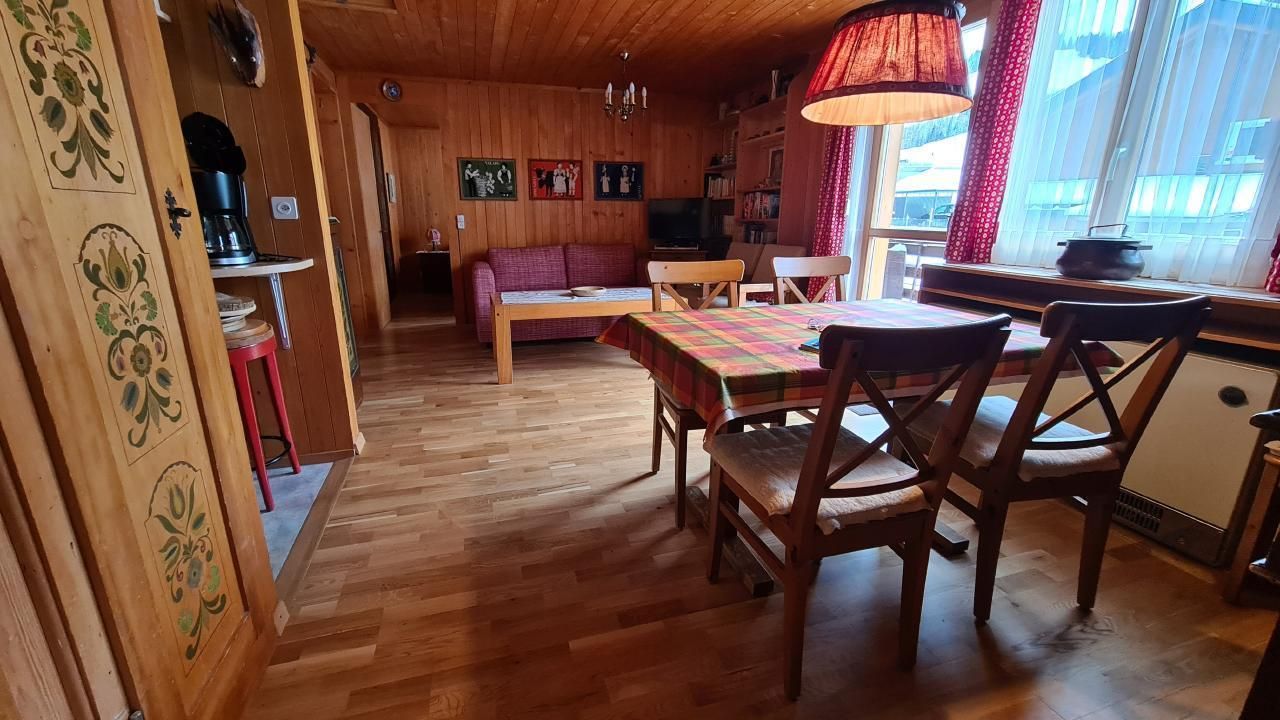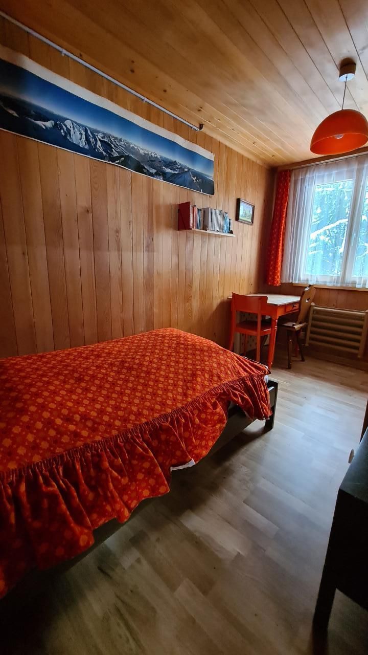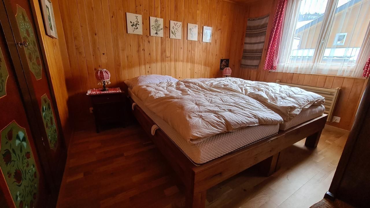 Das Innere des Chalets bietet alles für einen komfortablen Aufenthalt: Ein Doppelschlafzimmer, zwei Einzelzimmer und ein weiteres Zimmer mit vier Betten im Obergeschoss bieten ausreichend Platz für die ganze Familie. Der offene Wohnbereich lädt mit einem Esstisch, einer Couch, Radio, TV und WLAN zu geselligen Stunden ein. In der Küche finden sich zudem ein Raclette Ofen und ein Fondue Rechaud, ideal für gemütliche Abende. Das Bad mit Badewanne, Lavabo und WC rundet das Angebot ab und verspricht Entspannung pur.