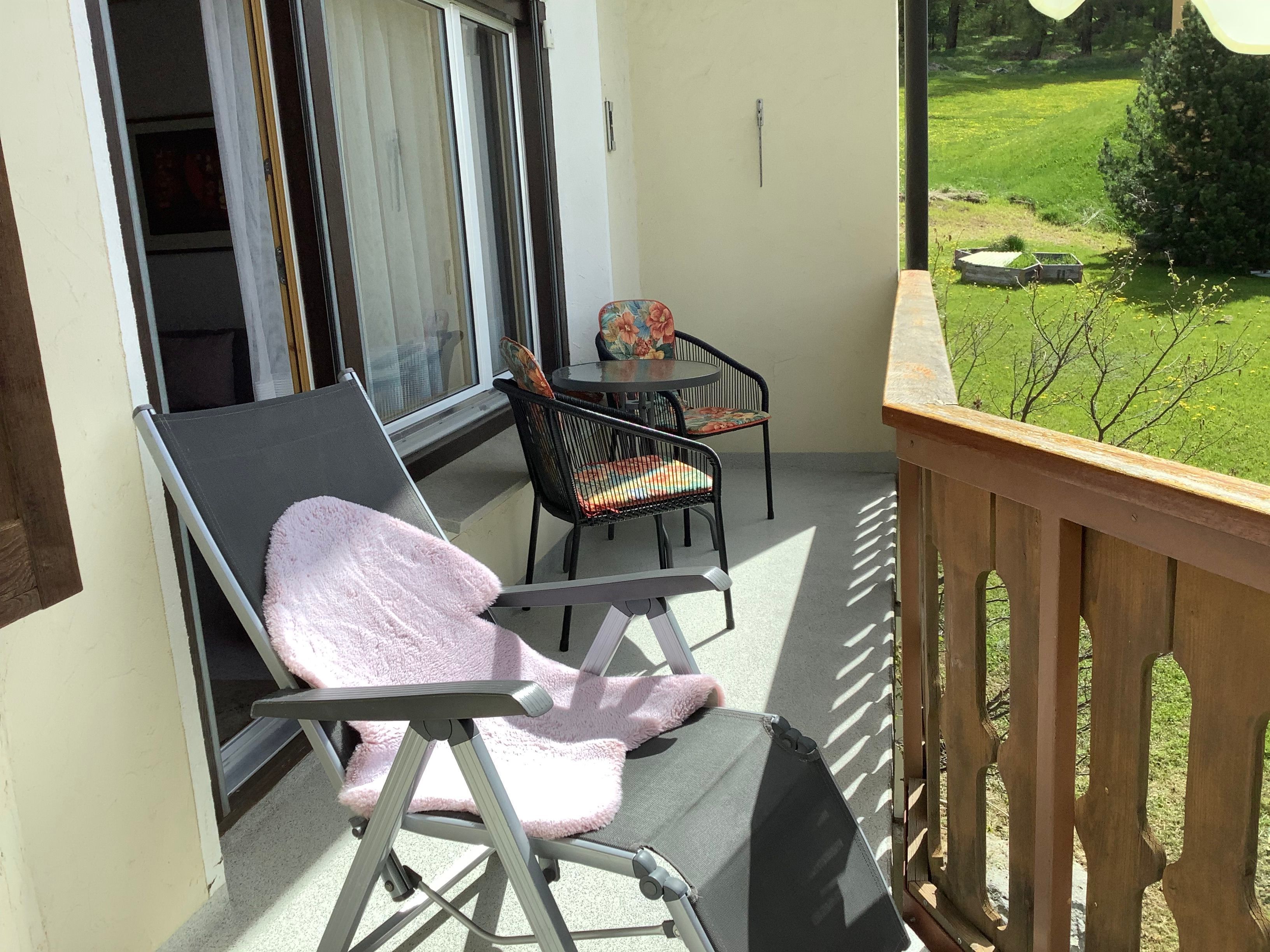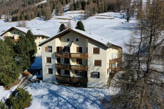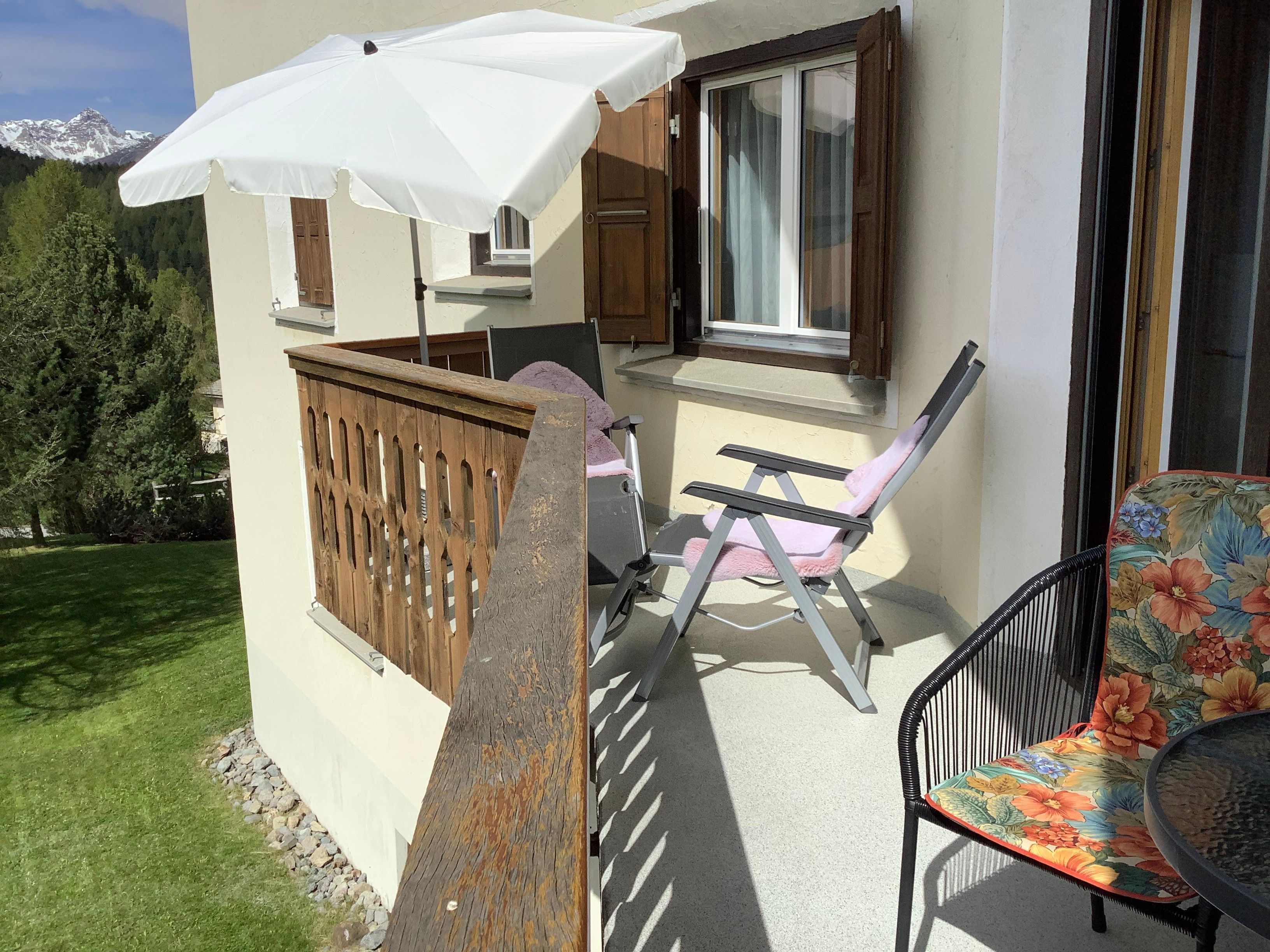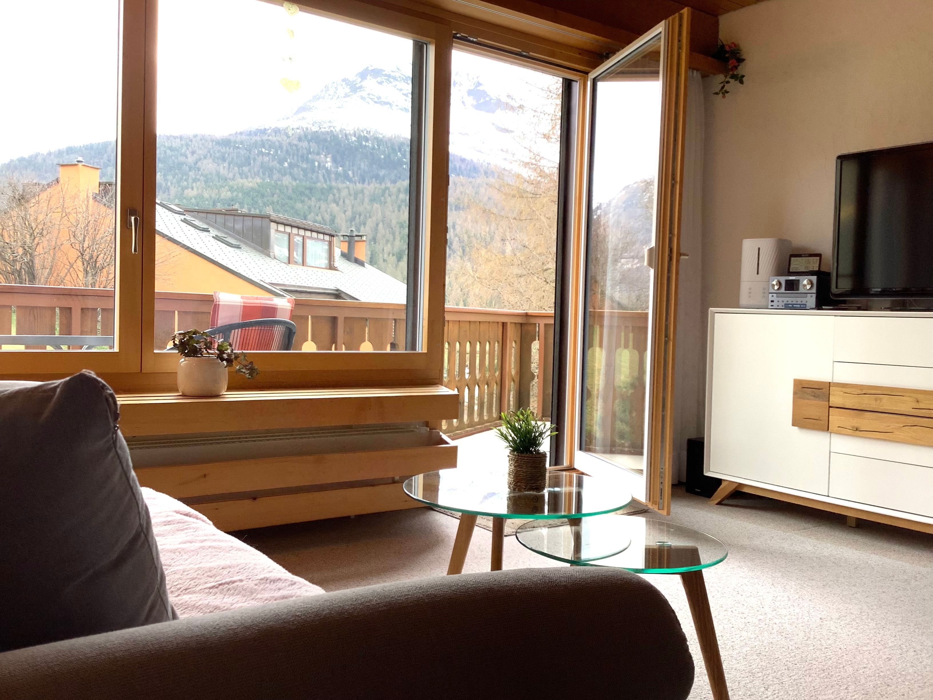 Die Ferienwohnung Nr.6 befindet sich im 1.Stock des Hauses Azalea, an der Via d'Arövens 14 (ruhige Strasse ohne Durchgangsverkehr) im naturnahen Quartier Muragls, mit herrlichem Blick auf das Bergpanorama. Die rund 60 m2 grosse Wohnung ist sehr hell und verfügt über eine moderne Einrichtung mit grossem Flachbildschirm mit eigenem WLAN (Glasfasern). Sie bietet ein Schlafzimmer, ein Badezimmer, eine offene Küche, einen grossen Wohn-und Essbereich sowie einen Balkon möbliert mit Tisch, Stühlen und Sonnenschirm. Das Schlafzimmer ist mit 2 Einzelbetten (Masse je 0.90x 2.00m, mit individuell und elektrisch verstellbarem Lattenrost) und einem Einbauschrank ausgestattet. Das Badezimmer verfügt über eine Badewanne (Bade-und Duschmöglichkeit), ein Föhn sowie Hand-und Badetücher sind vorhanden. In der Küche ist vom grossen Kühlschrank (mit Gefrierfach), über die Kaffeemaschine (Nespresso-System) und den Geschirrspüler, Fonduegeschirr und Raclette-Ofen alles vorhanden. In den gemeinschaftlichen Räumen des Hauses finden Sie überdies eine Waschküche mit Waschmaschine und Trockner, einen Abstellraum für Ihre Fahrräder sowie einen Skiraum und Garagenplatz.