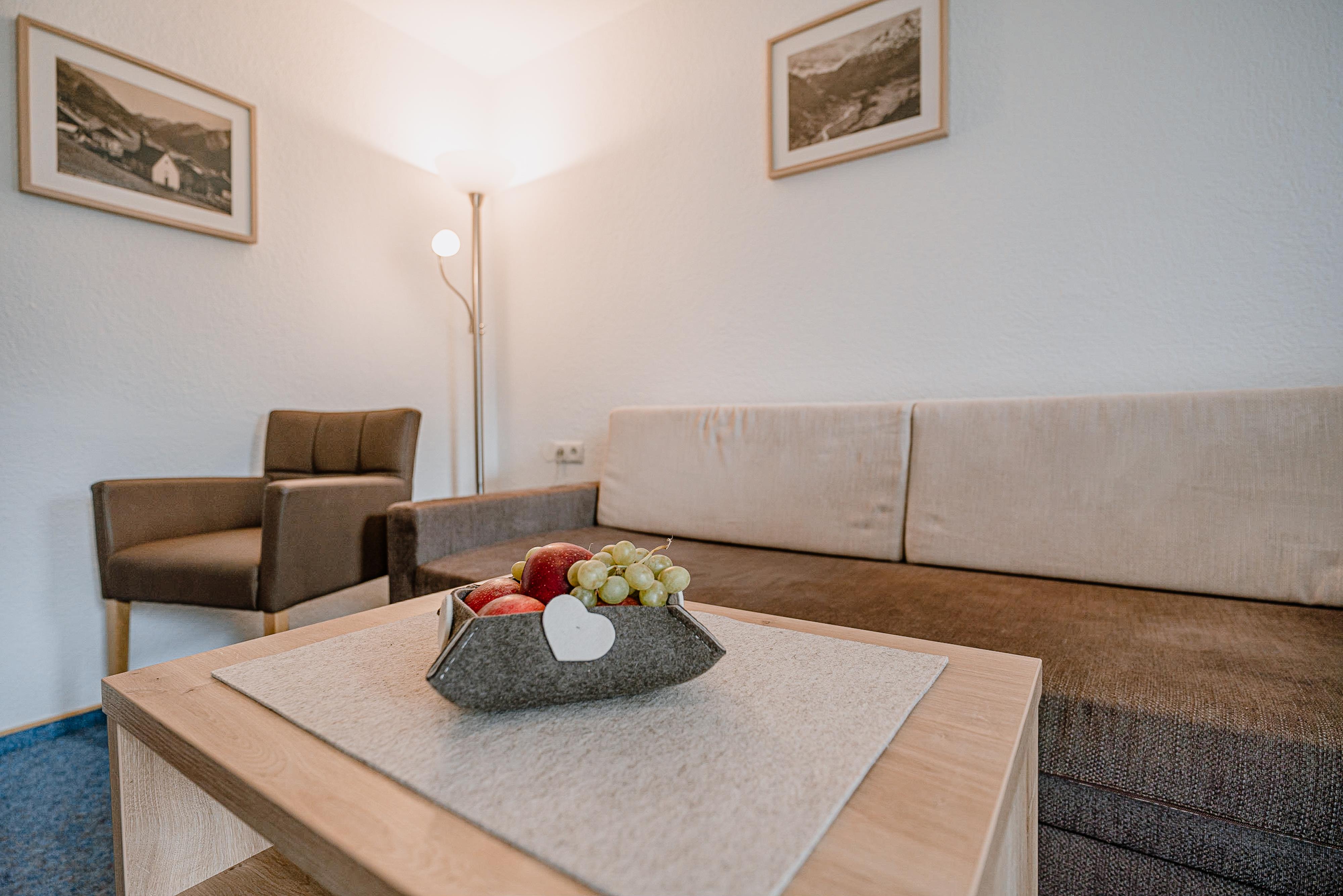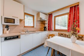 Appartement (ca. 55 m²): gemütlicher Wohnraum mit Sofa (Schlafmöglichkeit für 1 weitere Personen), vollausgestattete Küche mit Essbereich, Cerankochfeld, Geschirrspüler, Mikrowelle, Toaster, Kaffeemaschine, Wasserkocher uvm., Vorraum, 1 Doppelzimmer, Balkon mit wunderbaren Ausblick auf die umliegende Bergwelt und 1 Badezimmer mit Dusche/WC und Haarföhn.