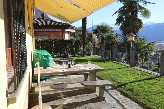 Beschrieb Ferienwohnung Oberhalb Gordola in Scalate vermieten wir in einem 2 Familienhaus eine neu renovierte 3 ½ Zimmer Ferienwohnung mit herrlicher Aussicht. Im grossen Vorgarten mit Granittisch kann man sich wunderbar erholen und die wunderbare Aussicht auf den See und die Berge geniessen. Natürlich darf auch das über eine Treppe erreichbare Pool eine Etage tiefer mitbenutzt werden.Das grosszügige Badezimmer mit Doppellavabo verfügt über eine Dusche und eine Badewanne. Dieses Bijou wird an Nichtraucher ohne Haustiere vermietet. Locarno und Umgebung Das Tessin mit seinem mediterranen Charme ist die Sonnenstube der Schweiz. Der Lago Maggiore, die Maggia oder die Verzasca laden zum Baden ein und in den umliegenden Bergen und Täler kann man wunderbar wandern. Die Gegend bietet auch verschiedene kulturelle Anlässe, wie das Filmfestival und Musikfestival Moon & Stars in Locarno oder das Jazzfestival und die Musikfestwochen in Ascona. Ob für Kinder, junge oder ältere Erwachsene – Locarno und Umgebung hat für alle etwas zu bieten!
