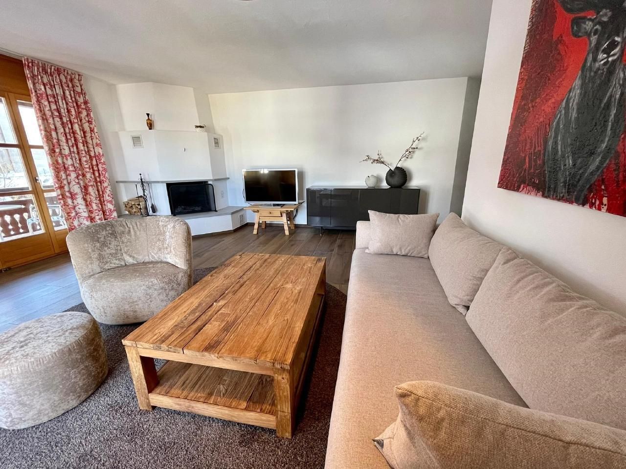 Sonstige Wohnzimmerausstattung (Wohnzimmer1): sehr hell, freundlich, modern mit grossem Balkon zur Südseite mit Blick auf Atelier Segantini und Natuschutzgebietmit Kamin
