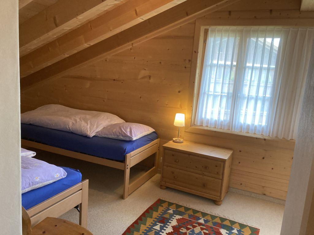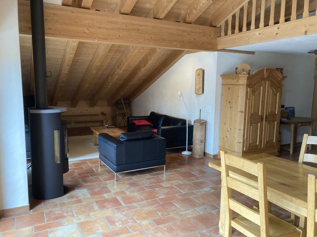 Grosse 5.5-Zimmer-Dachwohnung (145m2) im 2. Stock eines im Jahre 2000 erbauten Mehrfamilienchalets mit Lift/Aufzug. Grosser möblierter Balkon mit schöner Aussicht. 1 Einstellhallenplatz (Nr. 10) ist vorhanden, wie auch ein Abstellraum für Sportgeräte. Eine Waschmaschine und ein Wäschetrockner stehen zur gemeinschaftlichen Benutzung in der Liegenschaft zur Verfügung.