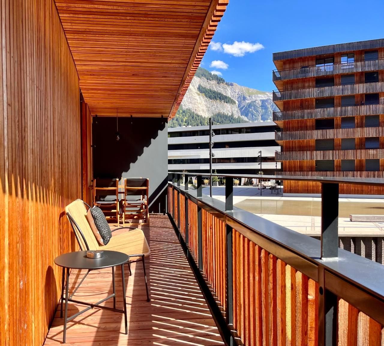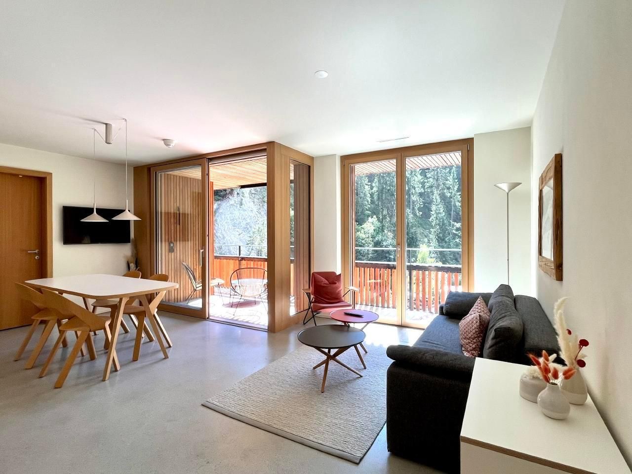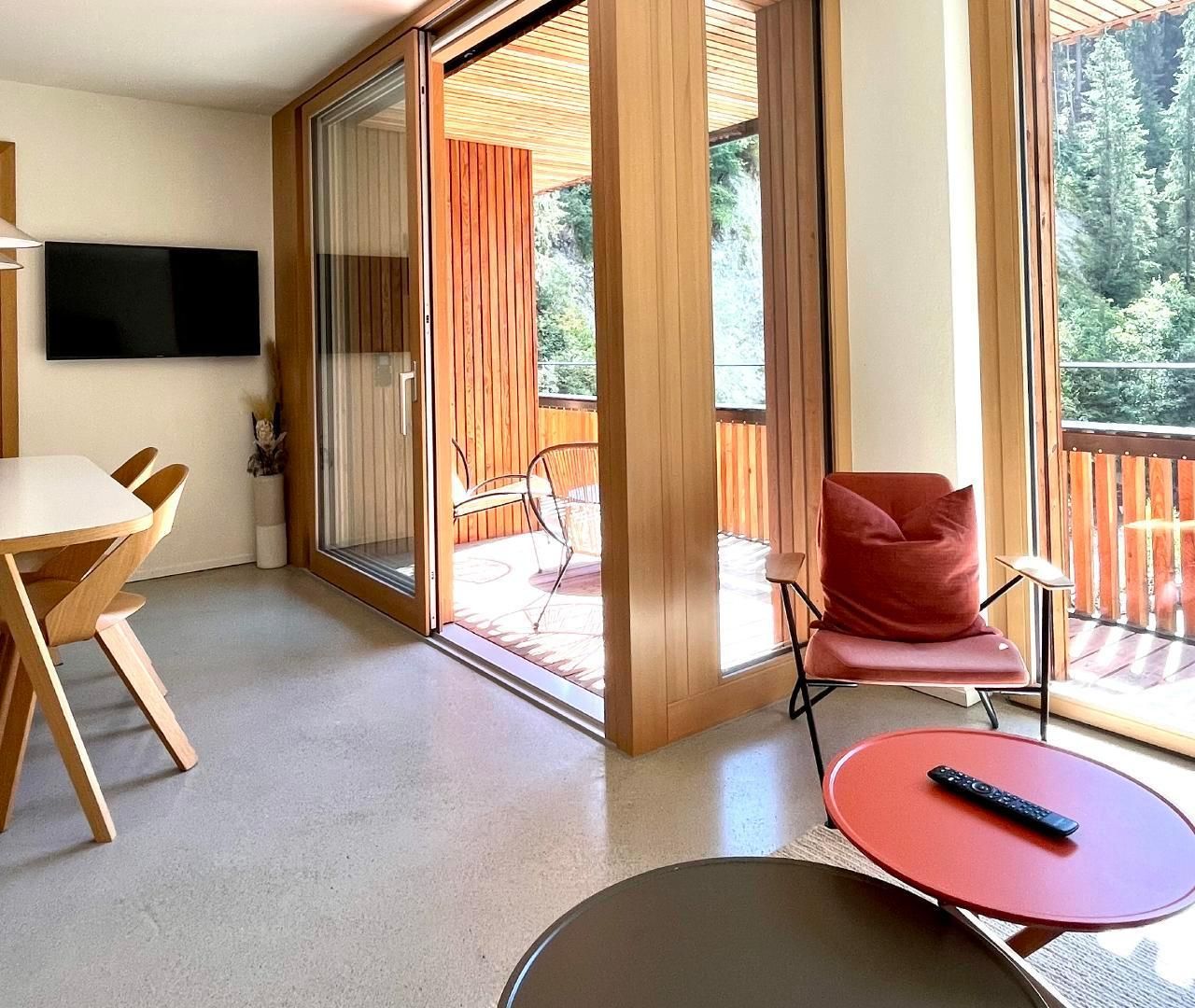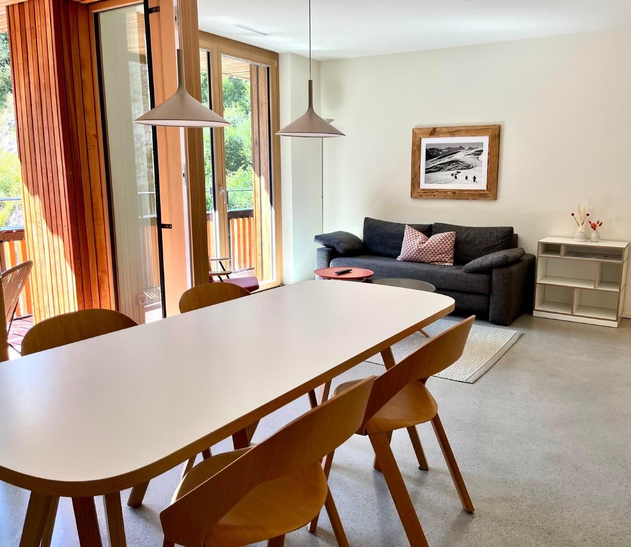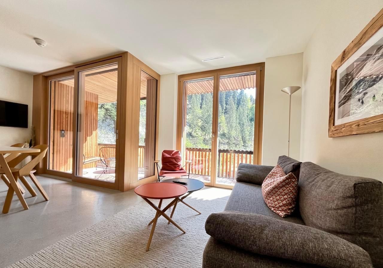 Sehr sonnige und hochwertig eingerichtete 3.5-Zimmer-Ferienwohnung mit 57m2 im 1. OG im Wohnhaus SELVA des Zentrum STENNA Flims Dorf.
