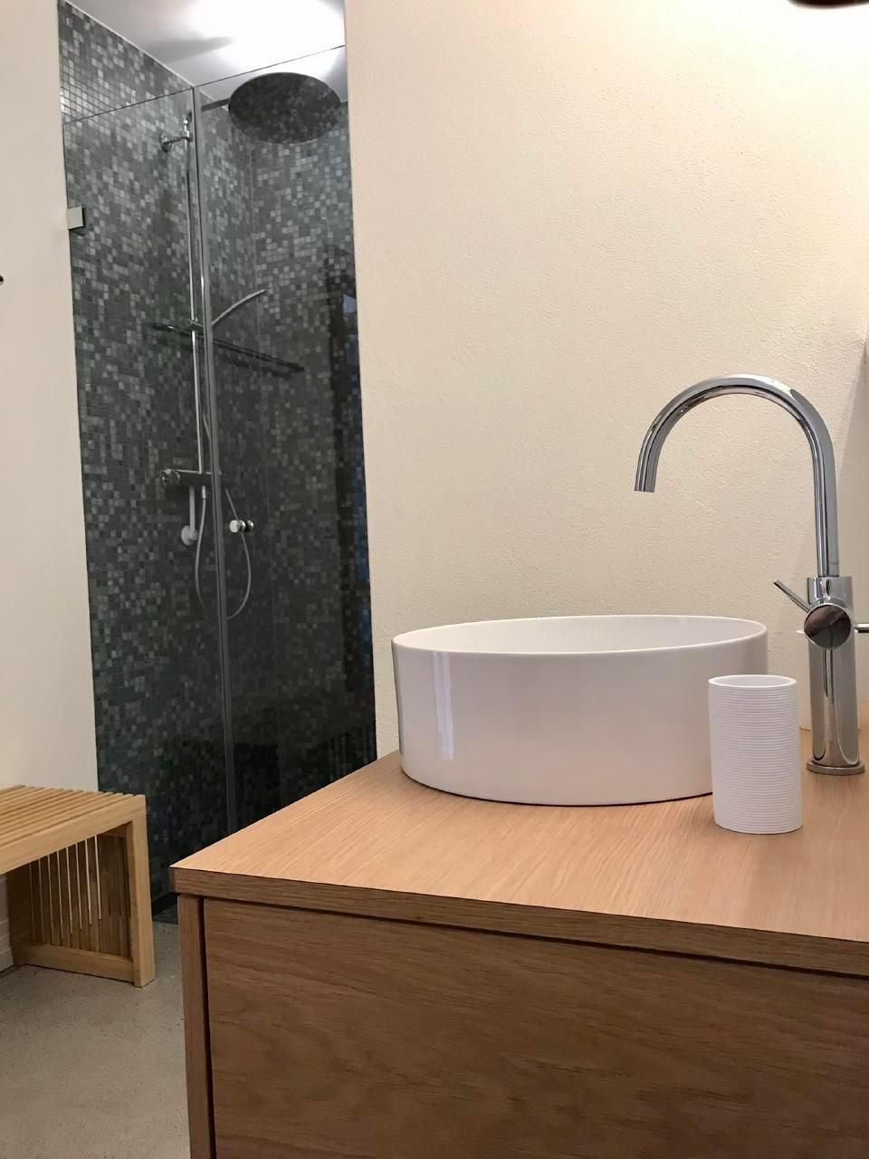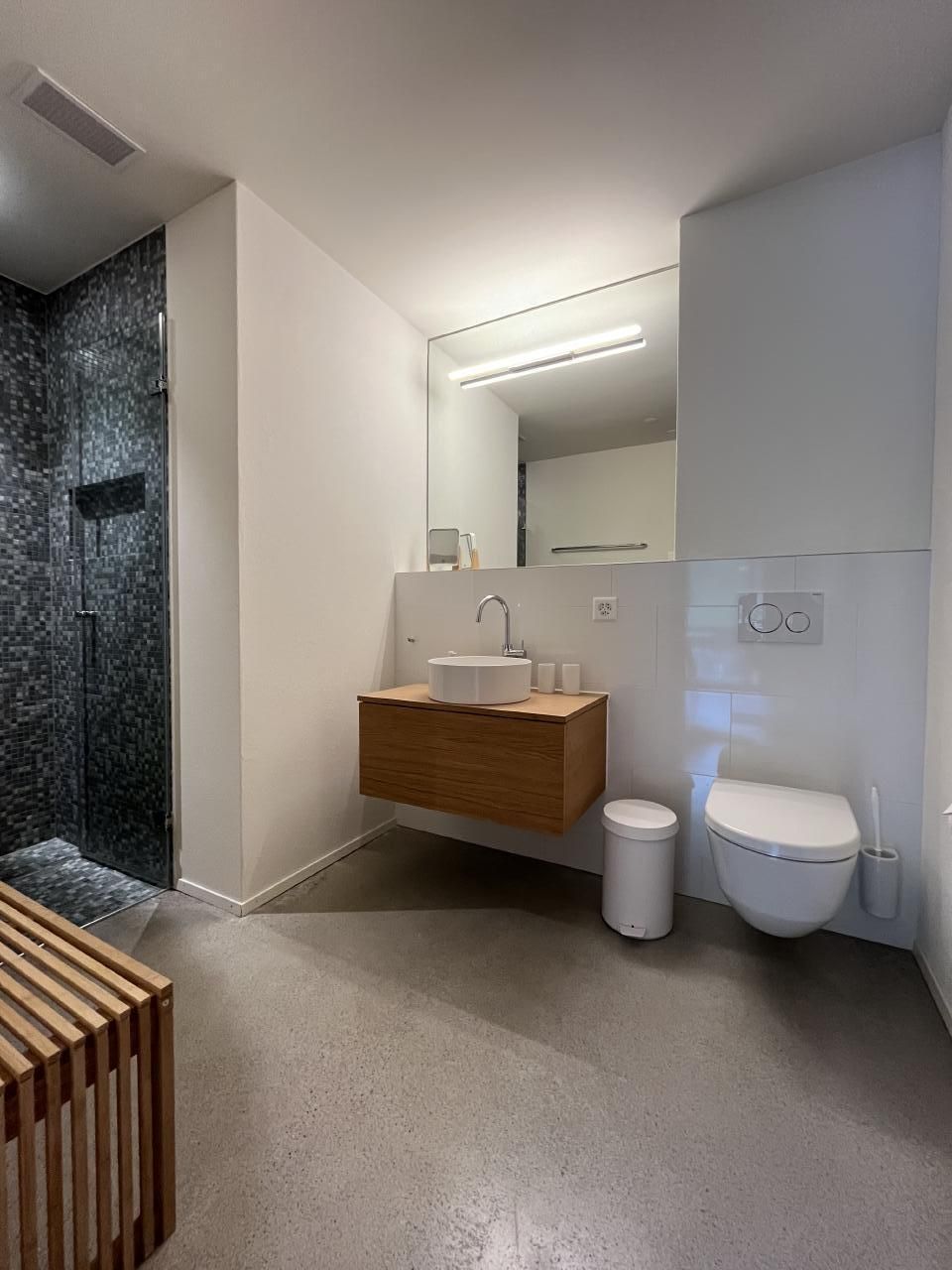 Dusche / WC: mit Glastrennwand / Zusätzliches WC / Lavabo mit Unterbaumöbel / Haartrockner