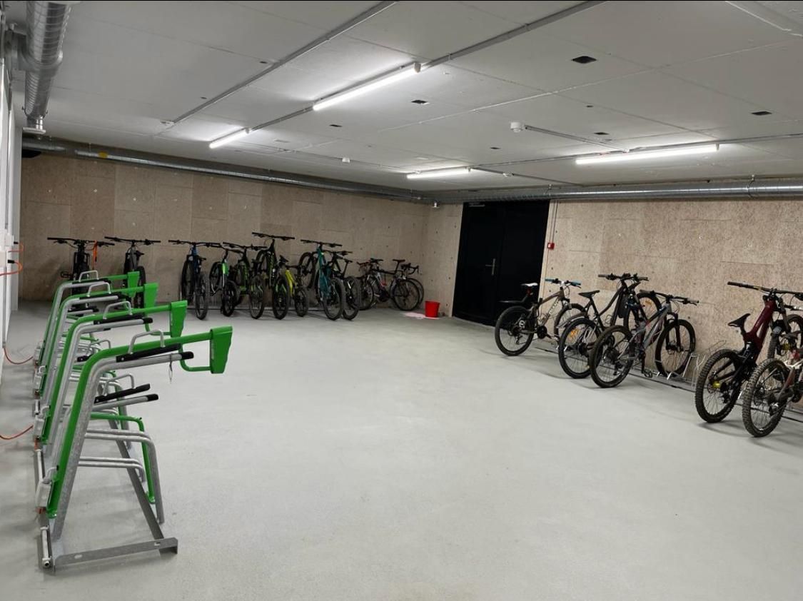 Allgemeine Räume zu Ihrer Benutzung im Wohnhaus SELVA: Waschen (Waschmaschine und Wäschetrockner mit Münz-System), Kinderwagen- und Schlitten sowie Ski- und Fahrradraum mit kostenlosen Ladestationen für E-Bikes.