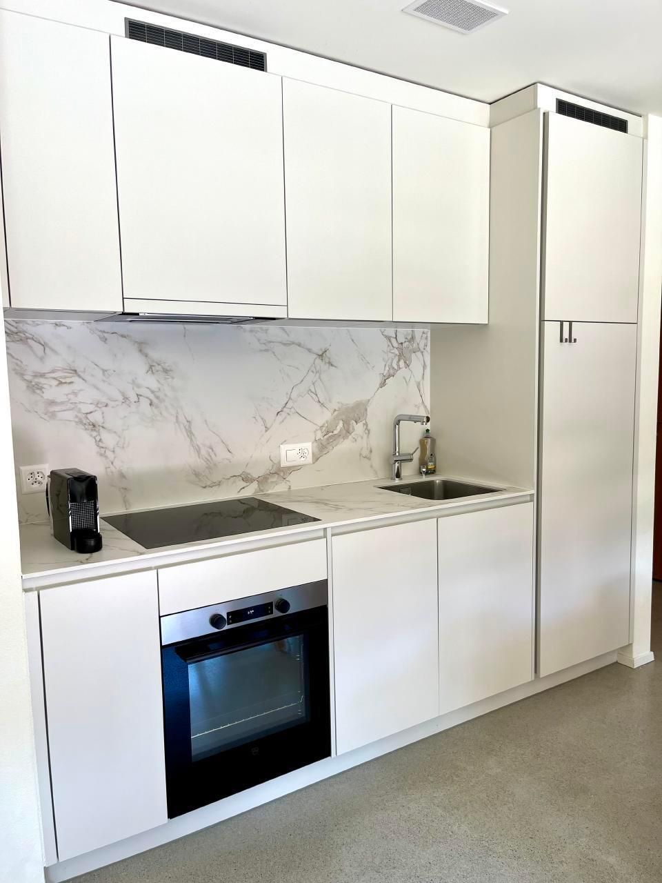 Sonstige Kücheneinrichtung (Küche1): Voll ausgestattete Küche, Induktionskochfeld, Geschirrspüler, Kühlschrank mit integriertem Tiefkühlfach, Backofen, Dampfabzug, Kapselkaffeemaschine (Nespresso-Kaffeekapseln müssen selber mitgebracht werden), Käsefondue-Set