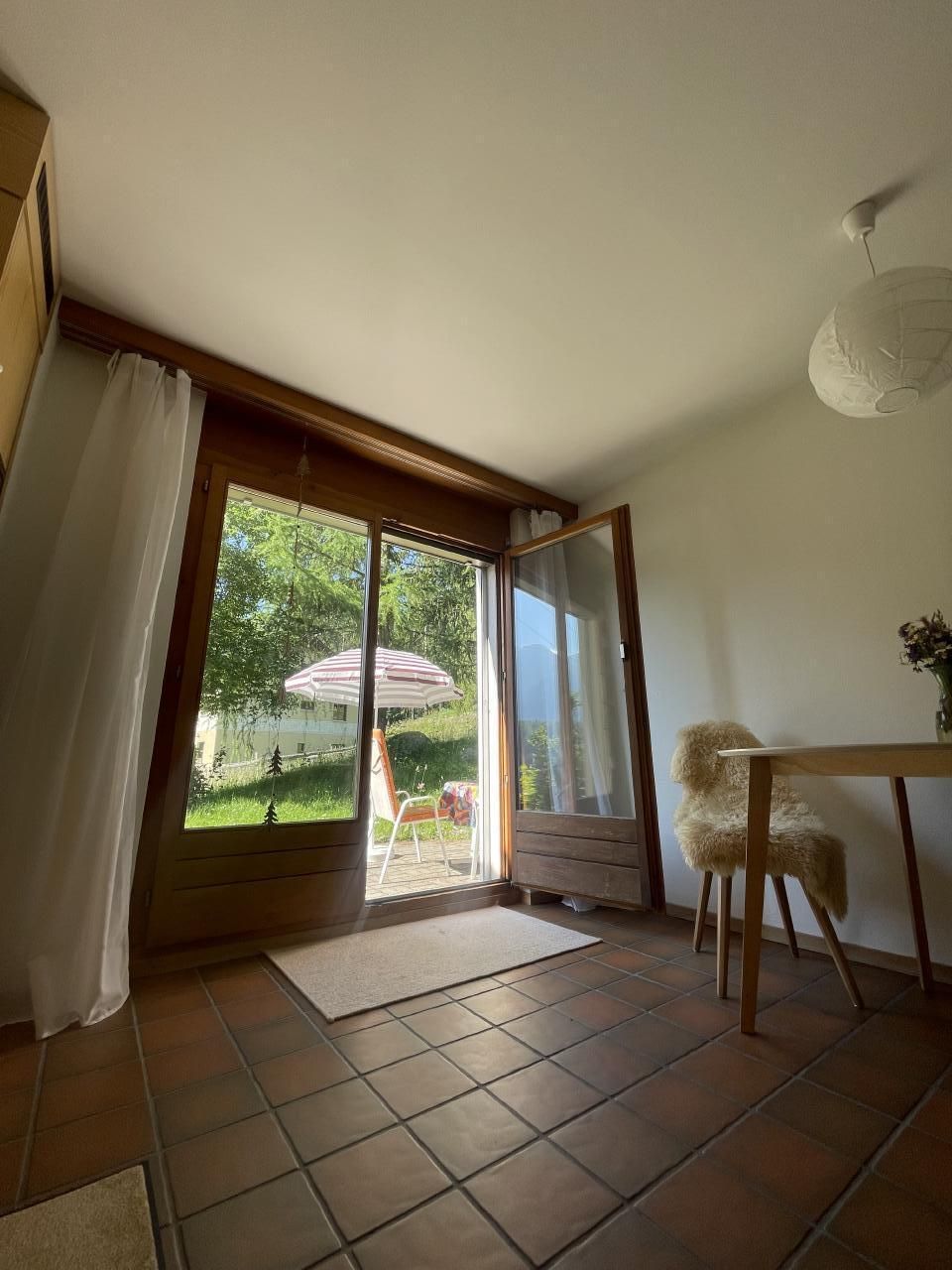 Direkt am Waldrand gelegen, sehr ruhige, neu renovierte 2,5 Zimmer Wohnung mit sonniger Terrasse. Küche, Esszimmer und Wohnzimmer sind offen. Bei Belegung mit mehr als 2 Personen wird das Sofa zum Bett umgebaut. Badezimmer mit Tageslicht, Schlafzimmer mit Fensterläden zum Verdunkeln. Im Wohnzimmer befindet sich ein Schreibtisch, falls in den Ferien gearbeitet werden muss. Highspeed WiFi gratis in der gesamten Wohnung. Die Wohnung und warm Wasser wird CO2-neutral beheizt.