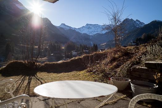 Idealer Ausganspunkt zum Skifahren, Langlaufen, Wandern oder auch einfach das Bergpanorama bei einem Glas Wein geniessen.