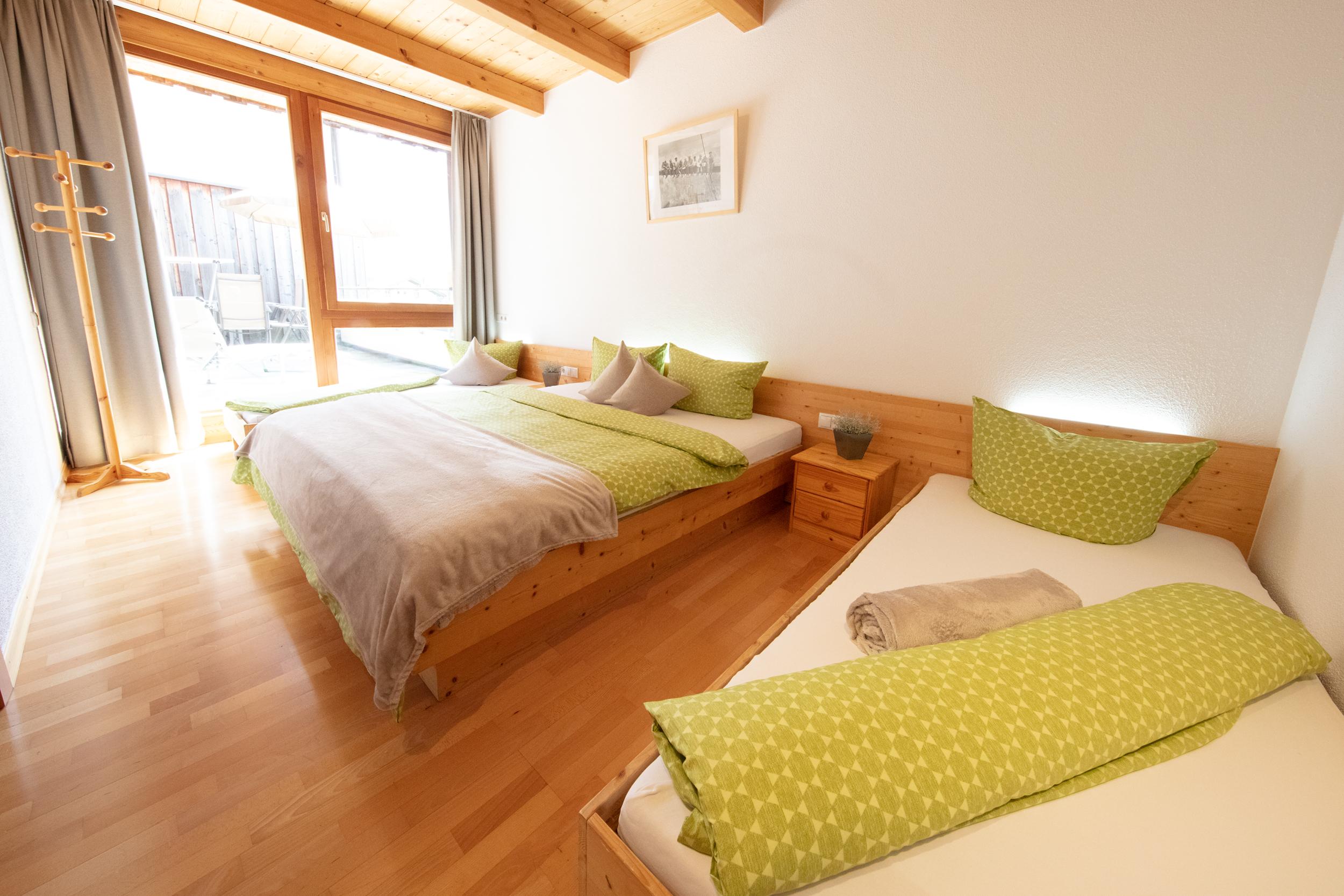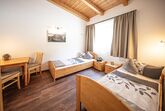 Das Appartement Sandro mit ca. 100 m² besticht durch seine großen Fensterfronten, die einen herrlichen Ausblick auf die Ötztaler Bergwelt gewähren. Die hohen Räume und der natürliche Baustoff Holz mit dem Dachstuhl auf Sicht schaffen eine heimelige und wohltuende Atmosphäre. Die Wohnung besteht aus 3 Schlafzimmern (1 x Vierbettzimmer, 1 Doppelzimmer mit Waschbecken und 1 Zweibettzimmer mit getrennten Betten) 1 Badezimmer mit Badewanne mit Duschmöglichkeit/WC und Waschmaschine, 1 weiteres Badezimmer mit Dusche mit Waschbecken und 1 WC separat. Die große, vollausgestattete Wohnküche (4-Platten Herd, Backrohr, Geschirrspüler, Kühlschrank, Bohnen-Kaffeemaschine, Wasserkocher, Toaster uvm.) verfügt über eine gemütliche Essecke, sowie eine große Sitzgruppe zum Relaxen.